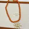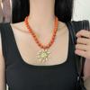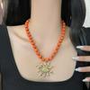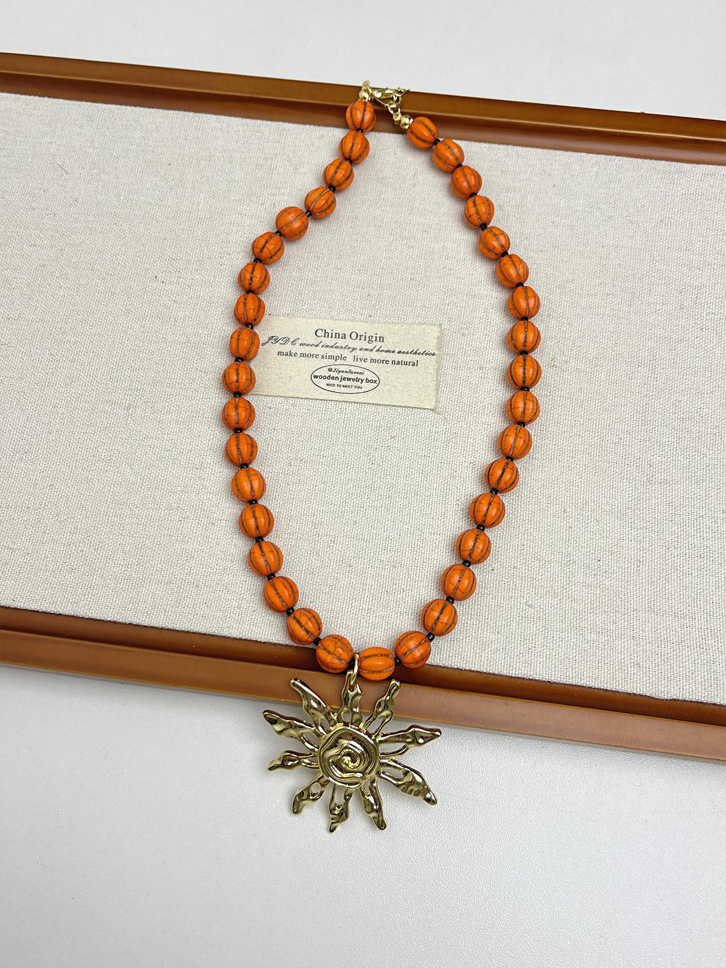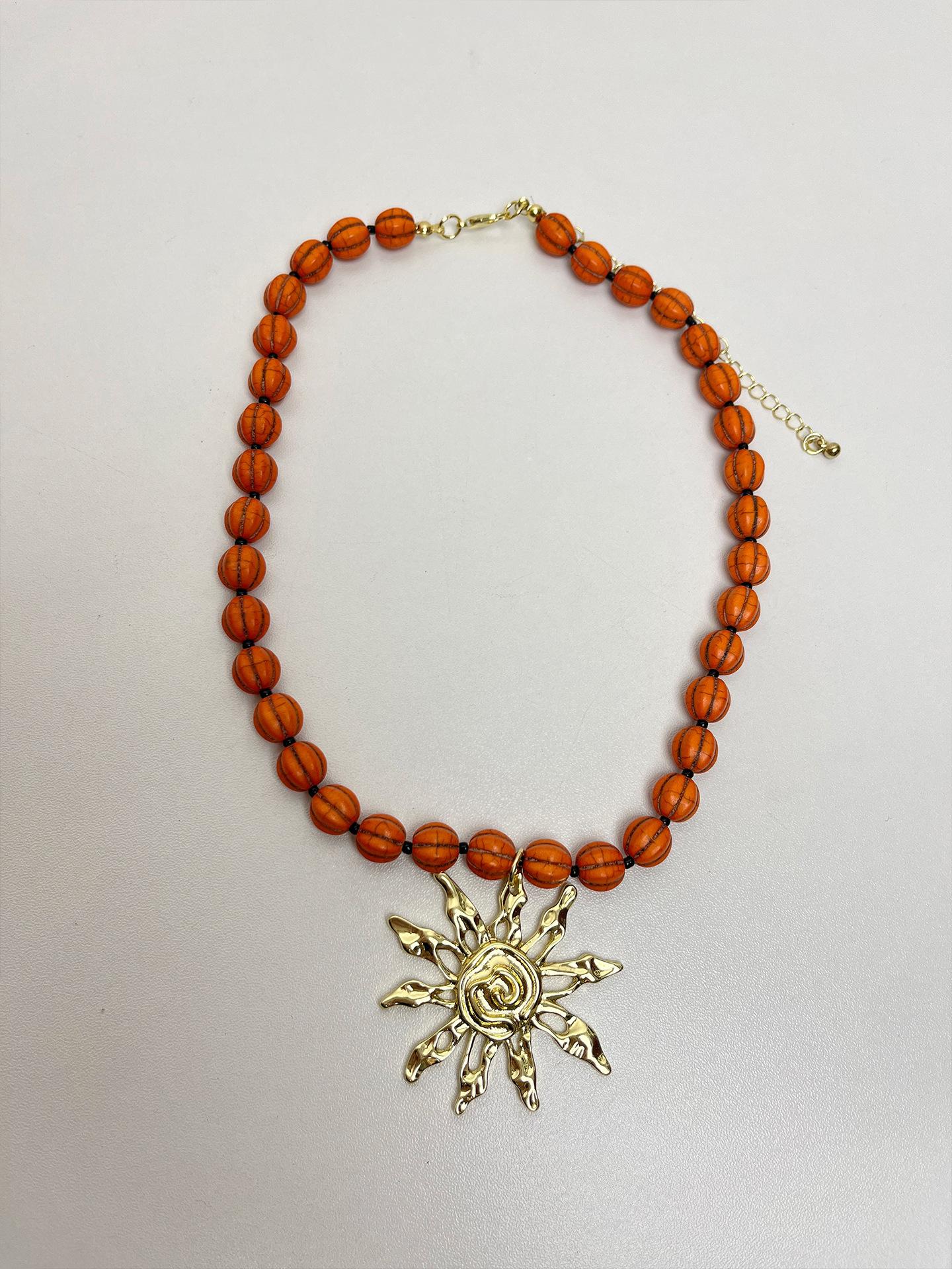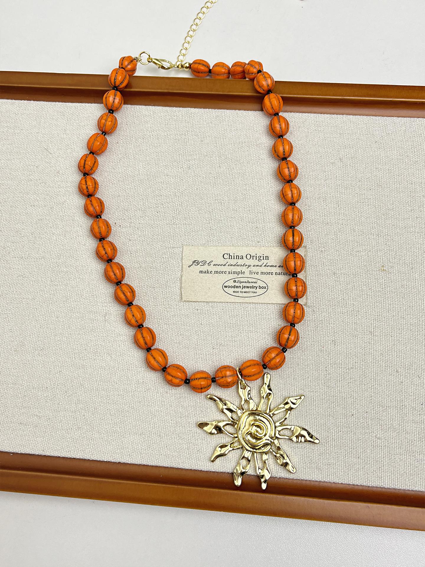 Collar con colgante de girasol dorado retro europeo y americano, diseño de nicho, cadena para clavícula con cuentas, temperamento individual, gargantilla para mujer