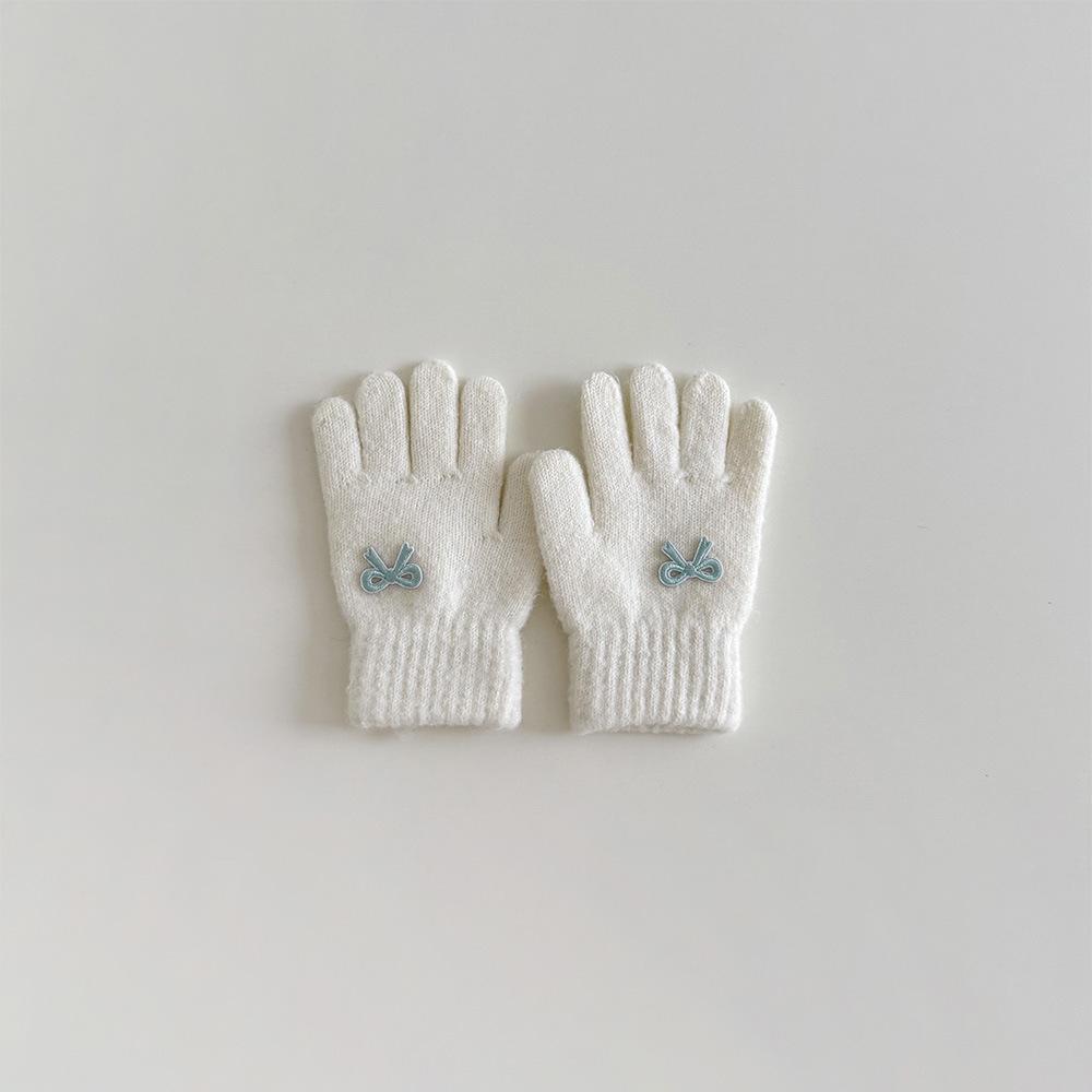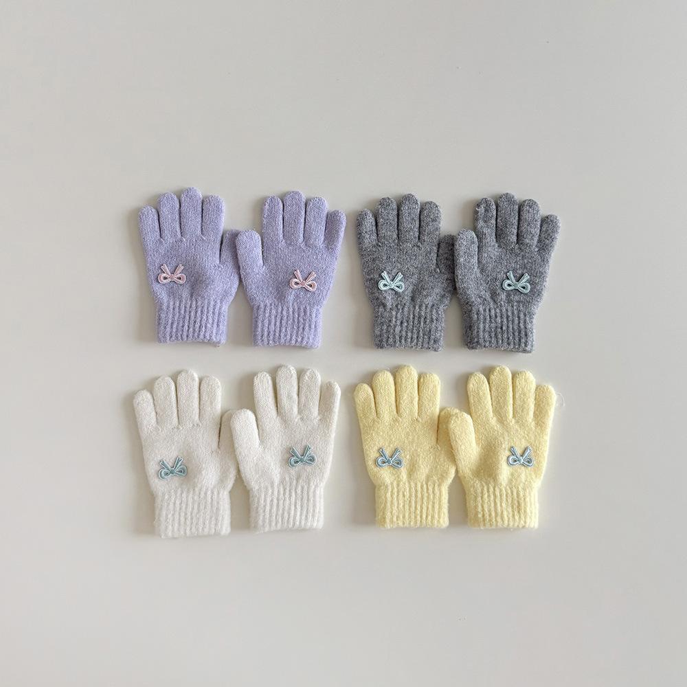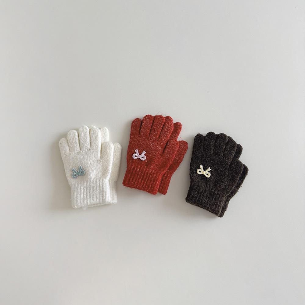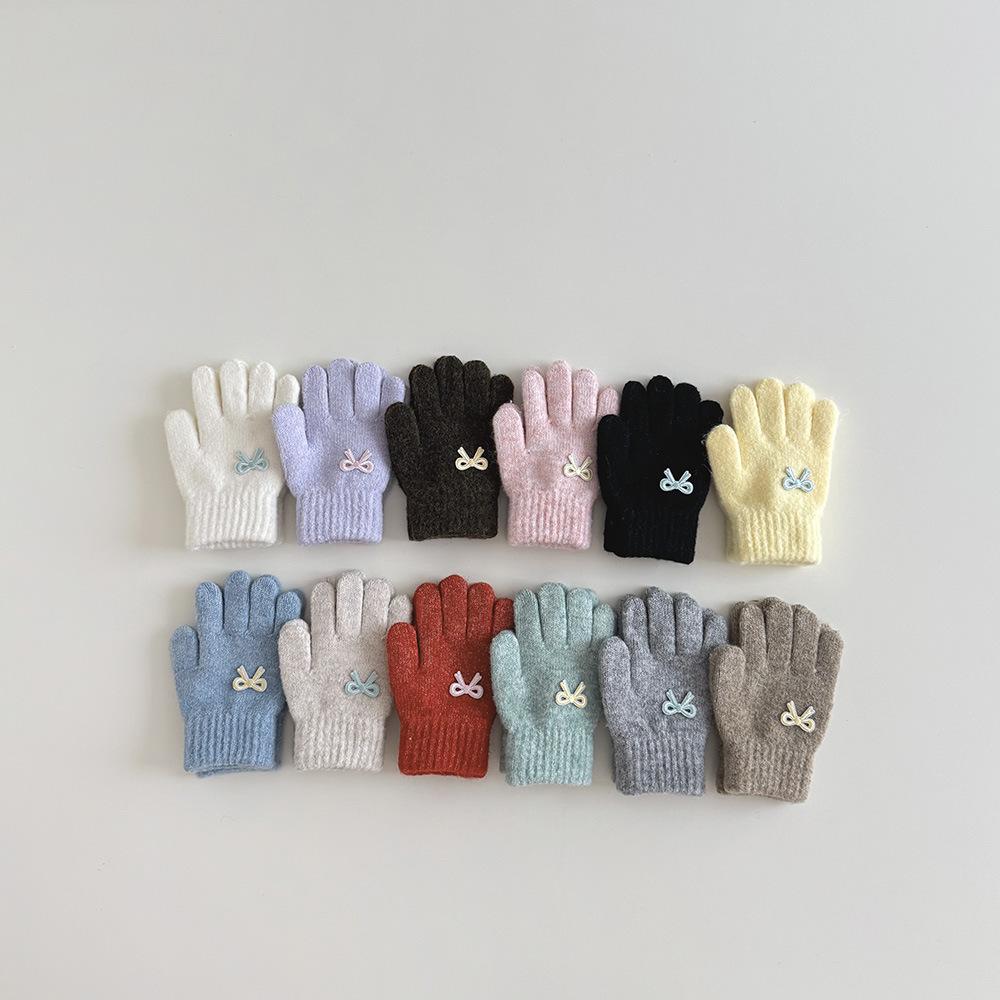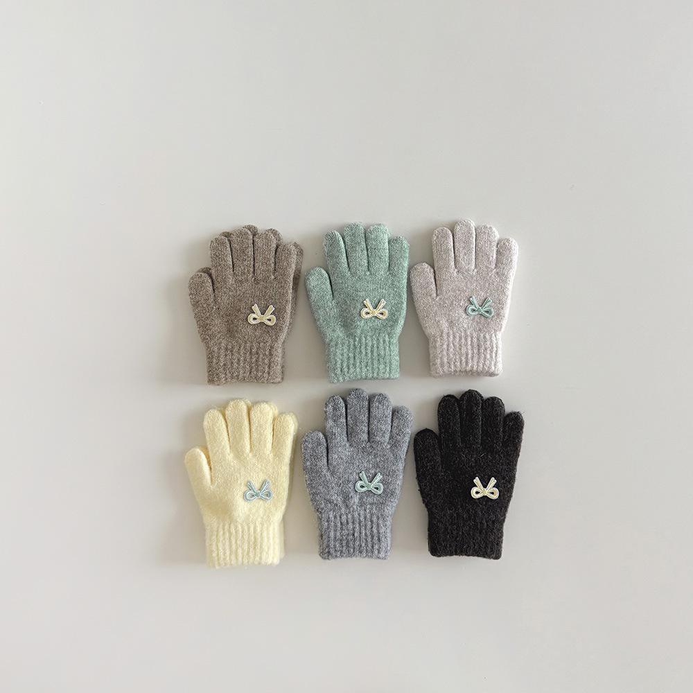 Guantes para bebé de un panel Otoño e Invierno Nuevos Guantes de cinco dedos con lazo Guantes de punto para niña para exteriores Cálidos a prueba de frío