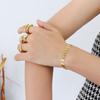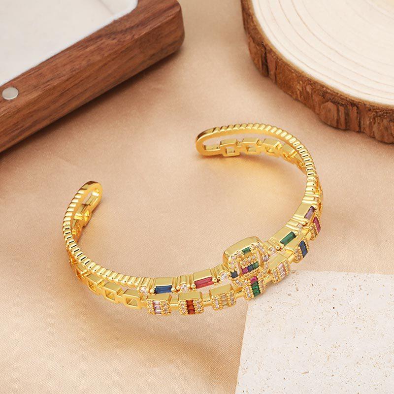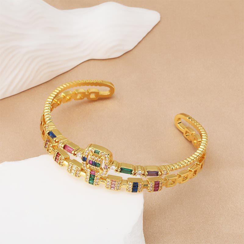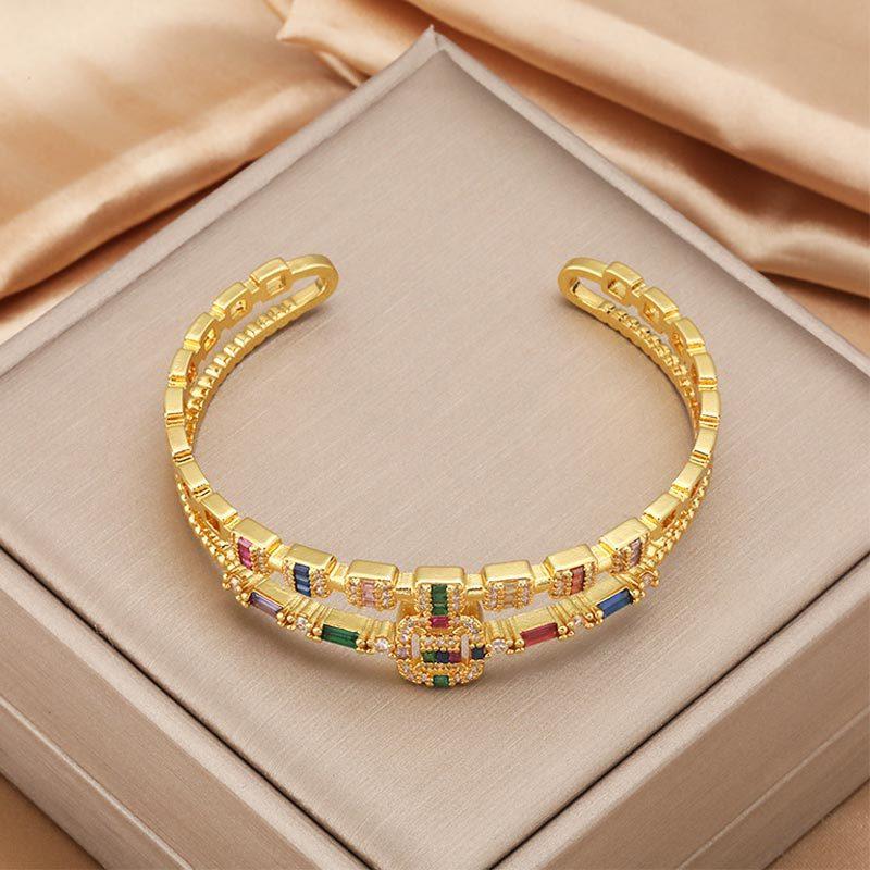 Distrito de Lu Moda Europea y Americana Lujo Ligero Geométrico Zircón Brazalete Abierto Femenino Nicho de Alta Gama Cobre Chapado Oro Real Pulsera Vintage