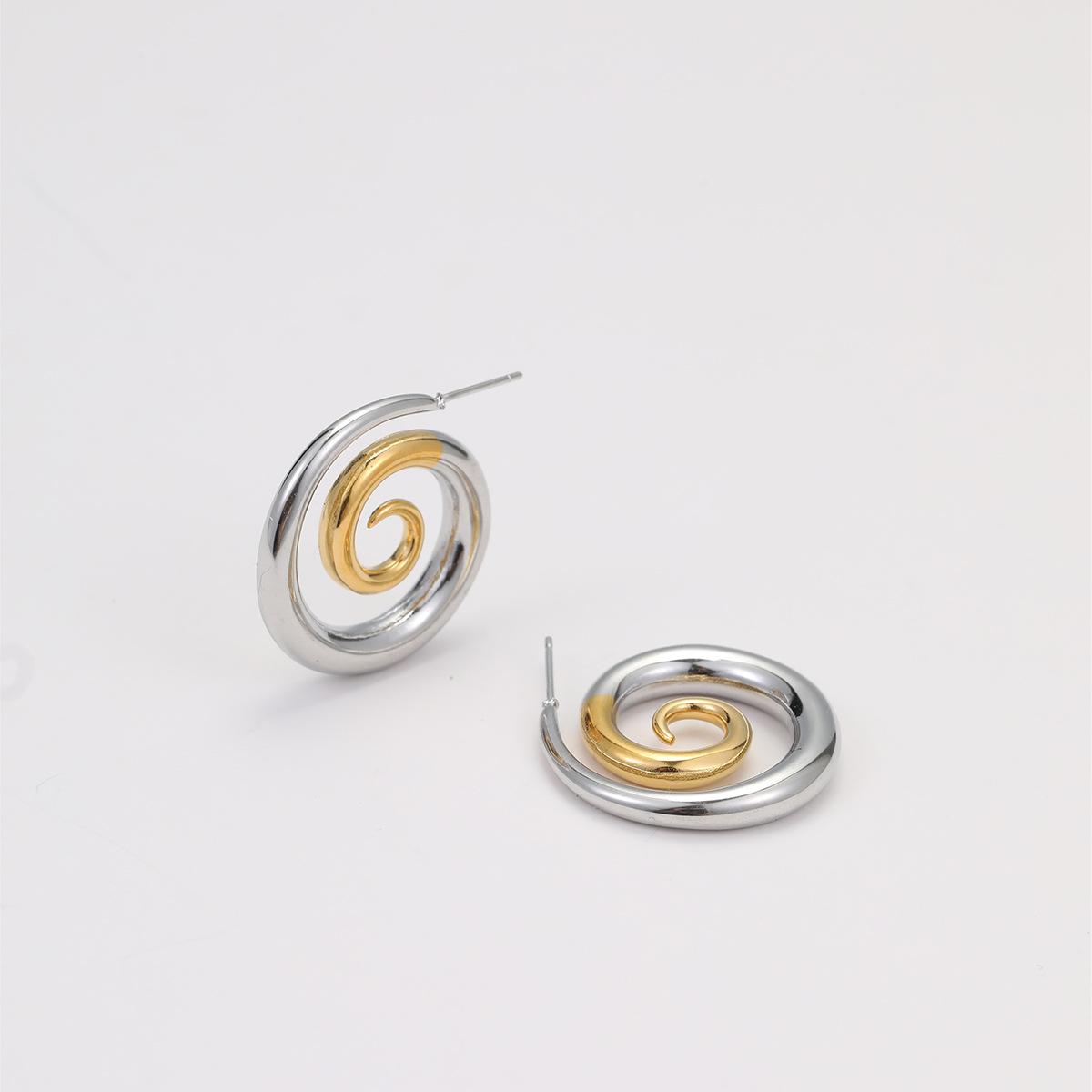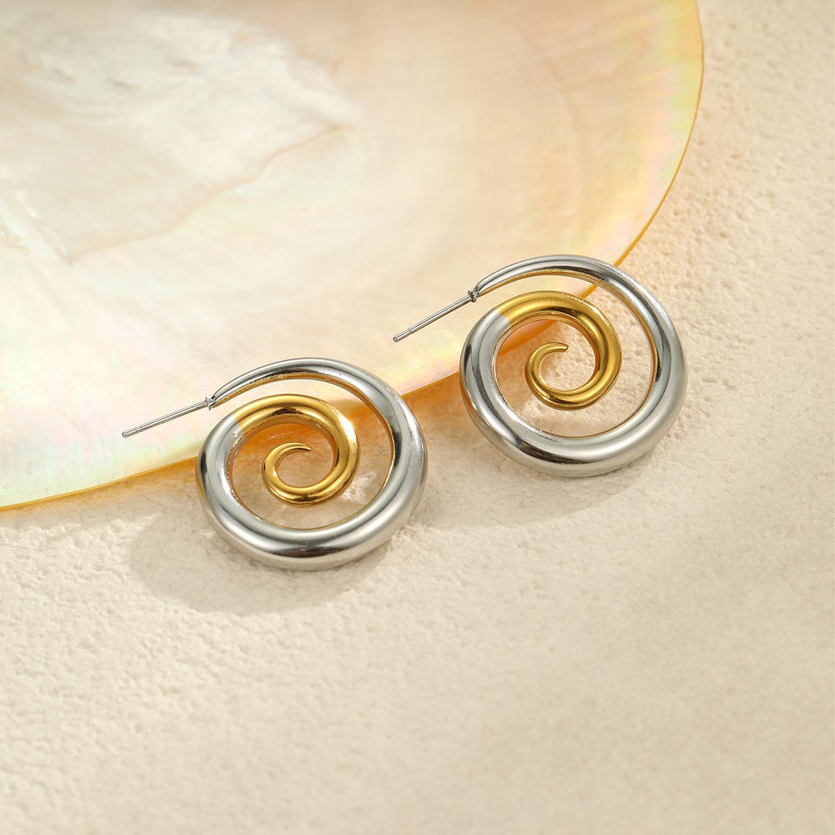 Pendientes europeos y americanos de moda nicho temperamento retro acero inoxidable chapado oro 18K huecos en espiral pendientes para mujer al por mayor