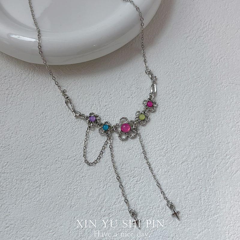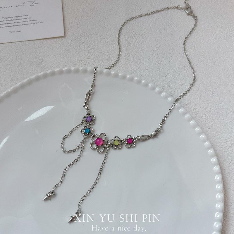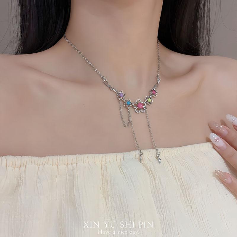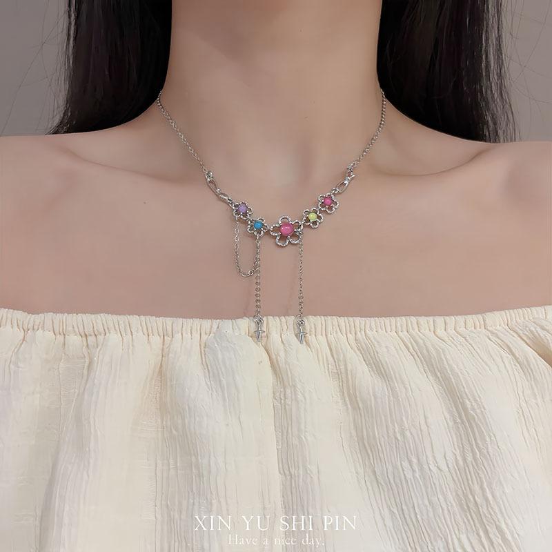 Collar Colorido con Recortes de Flores y Empalme de Perlas Nuevo Diseño Nicho de Verano para Mujer Cadena para Clavícula Collar Exquisito Versátil