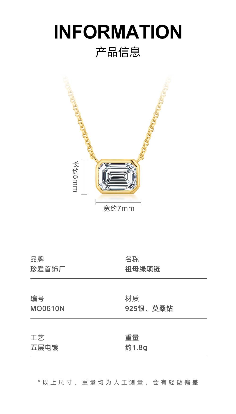 Colgante de plata esterlina 925 esmeralda moissanita collar cadena clavícula temperamento versátil diseño cuadrado nicho mujeres simple