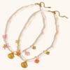 Ribbon pendant necklace shell necklace-gold powder, Ribbon pendant necklace shell necklace-gold red