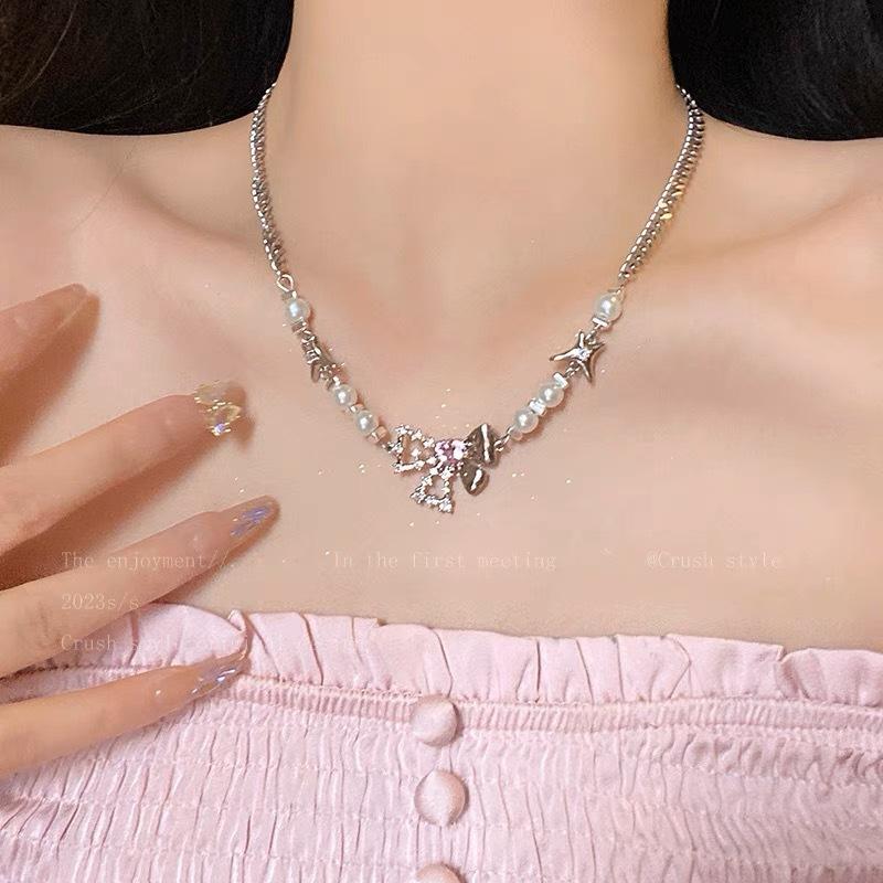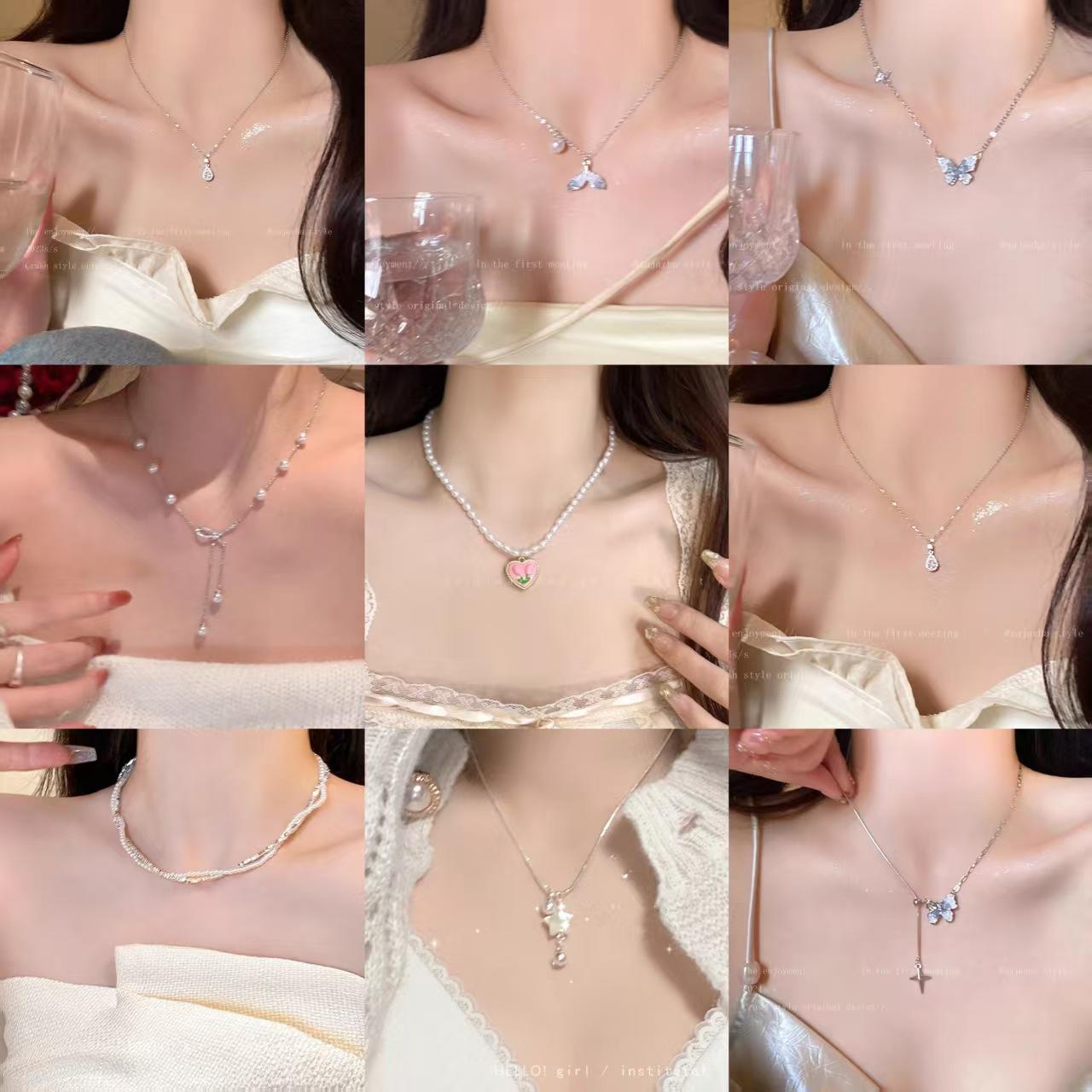 Collar de temperamento perla borla mariposa Corea del Sur moda nicho alta gama Joker temperamento cadena clavícula mujeres al por mayor