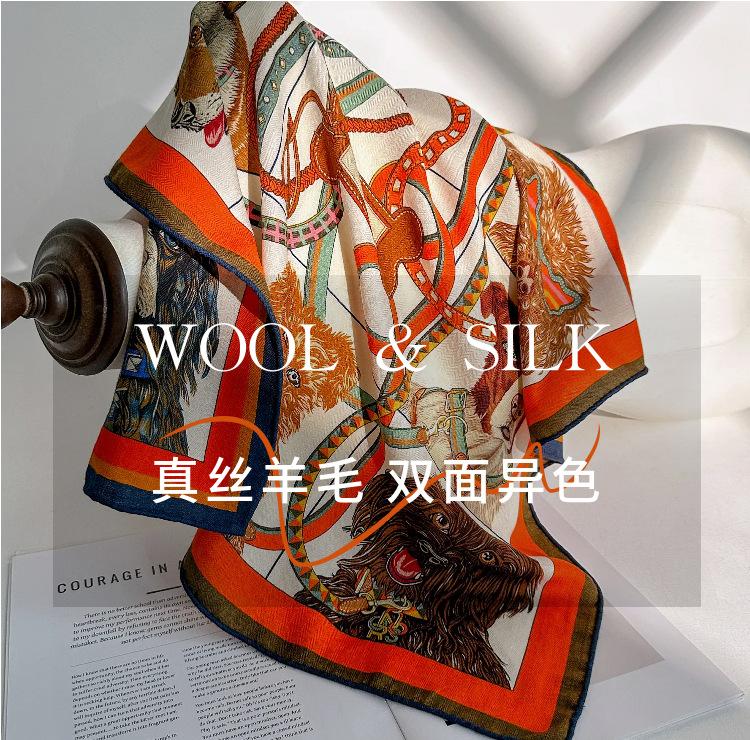 Bufanda Cuadrada Cálida de Doble Cara Nueva para Mujer Otoño/Invierno 2025 Bufanda de Seda Lana Bufanda de Seda Lana Versátil y a la Moda de Alta Gama