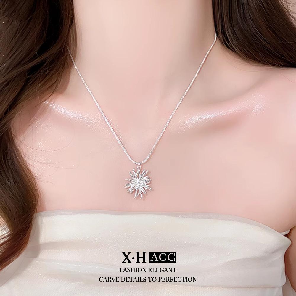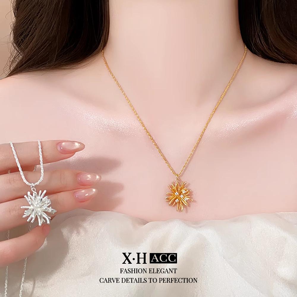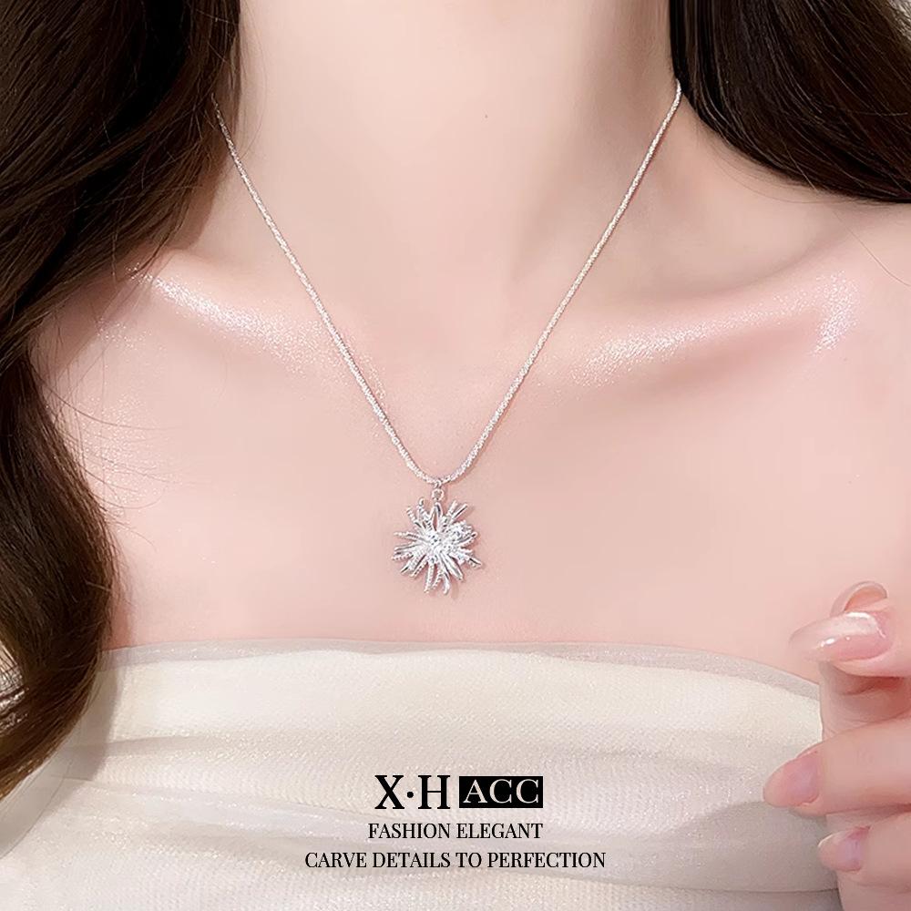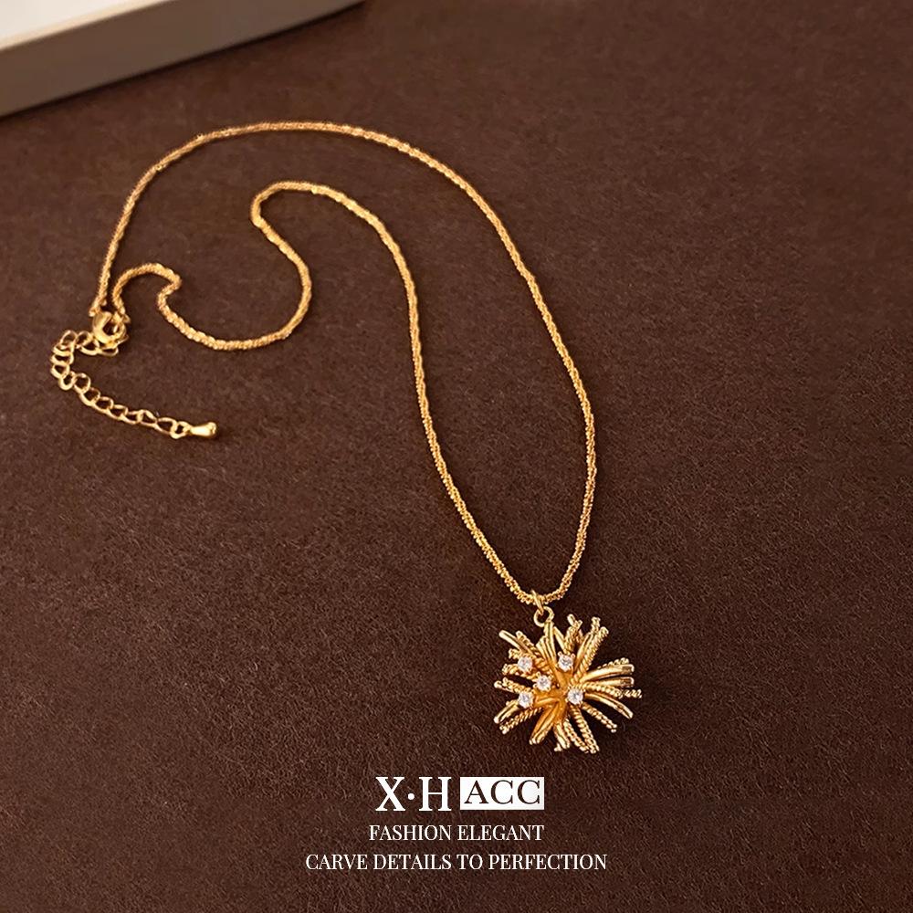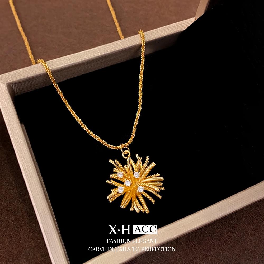 Collar de Fuegos Artificiales de Zircón Electrochapado en Oro Real Lujo Ligero Francés Romántico Colgante de Alta Gama Exquisita Moda Versátil Cadena para Clavícula