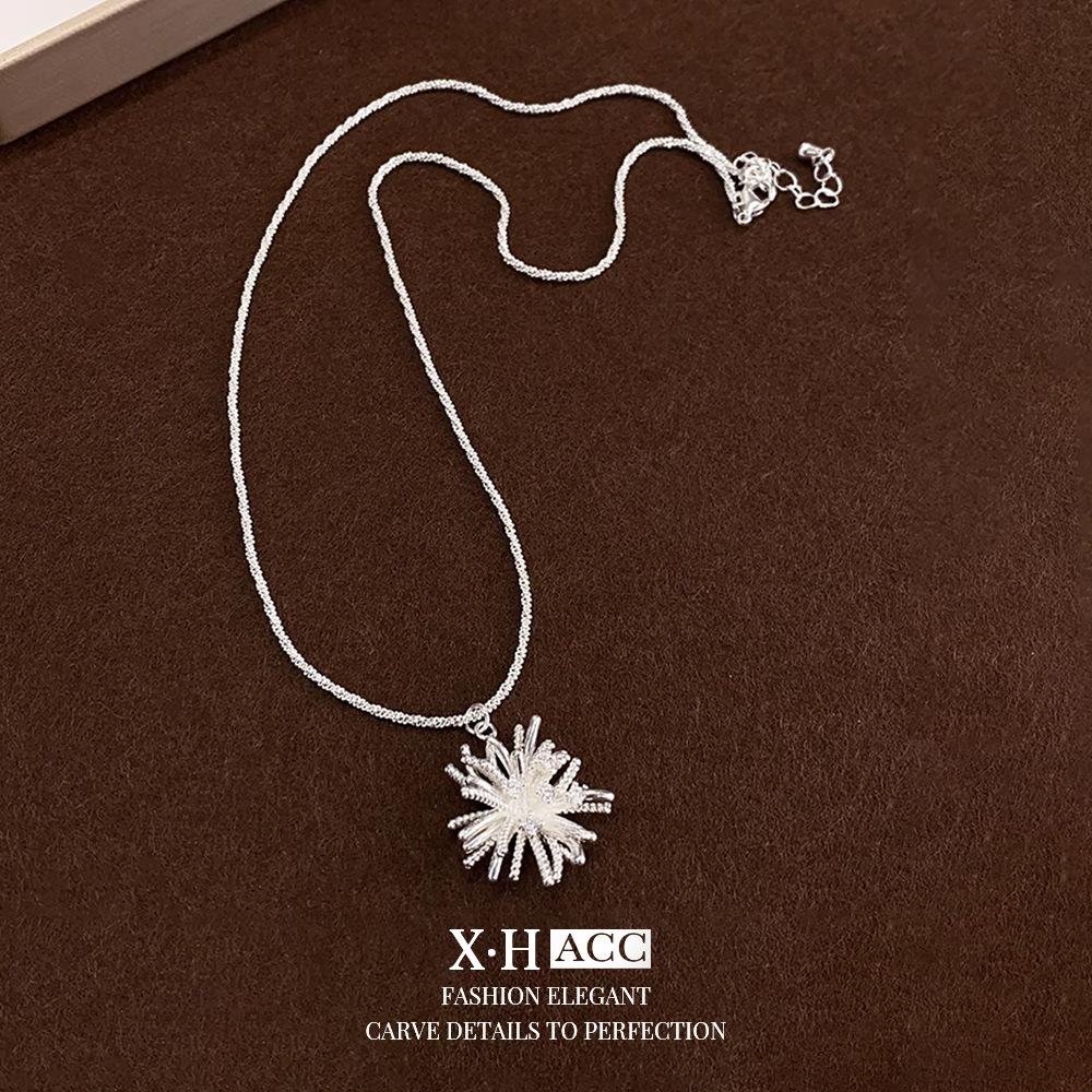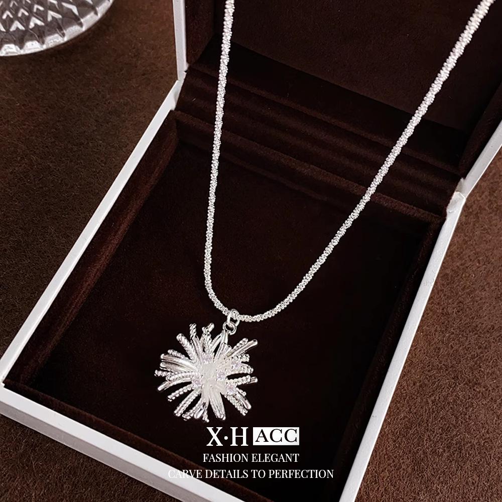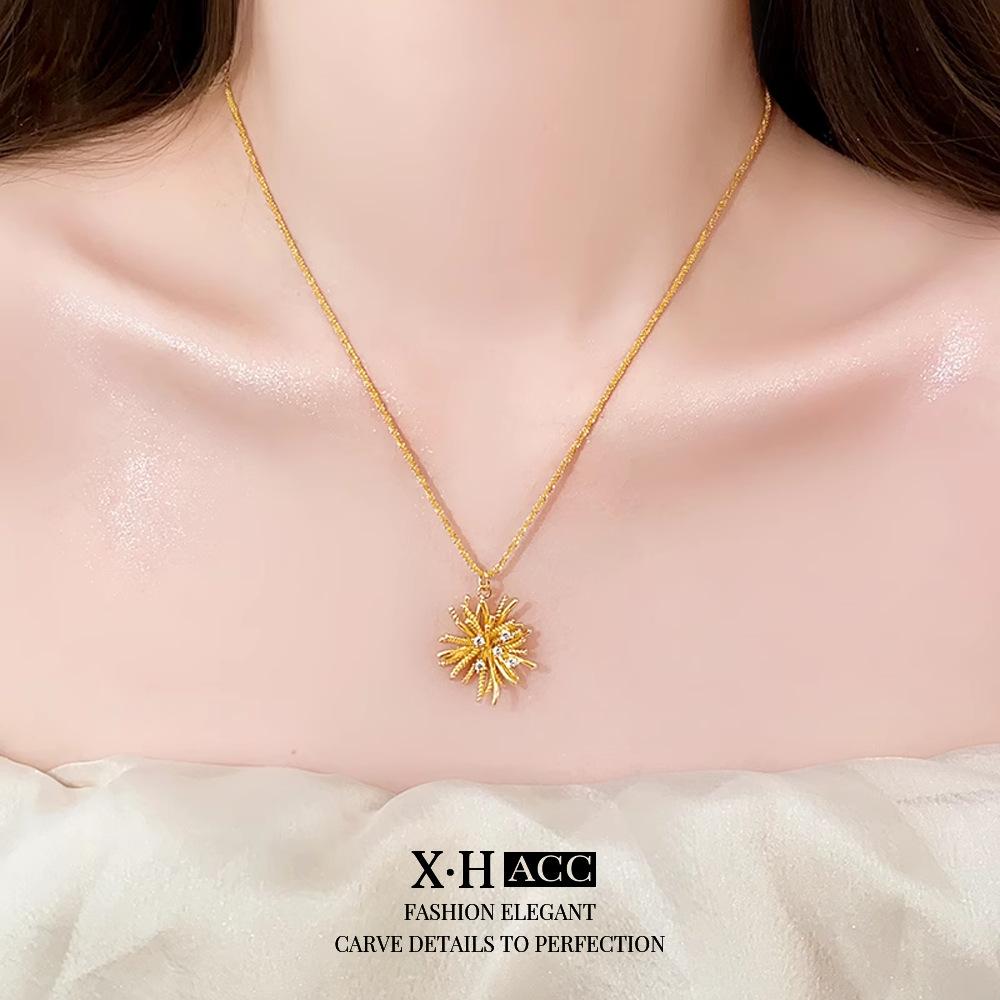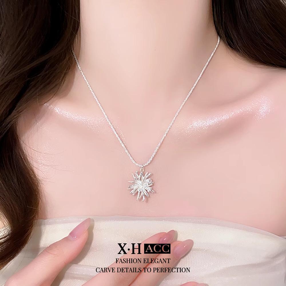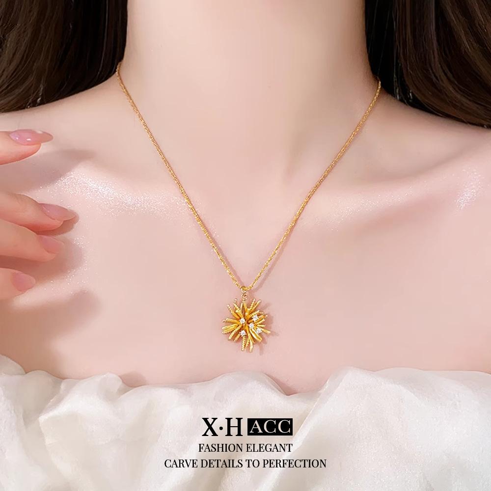 Collar de Fuegos Artificiales de Zircón Electrochapado en Oro Real Lujo Ligero Francés Romántico Colgante de Alta Gama Exquisita Moda Versátil Cadena para Clavícula