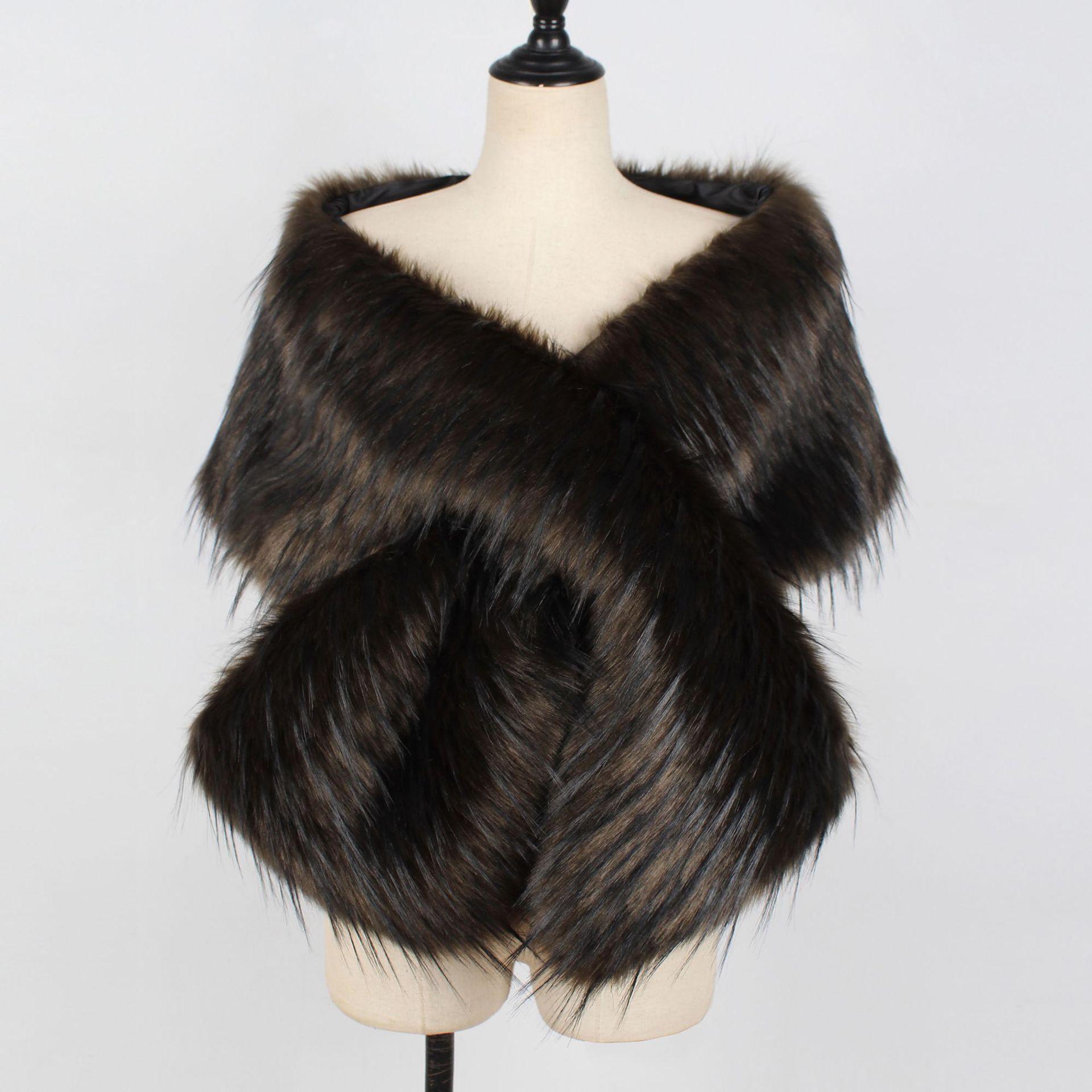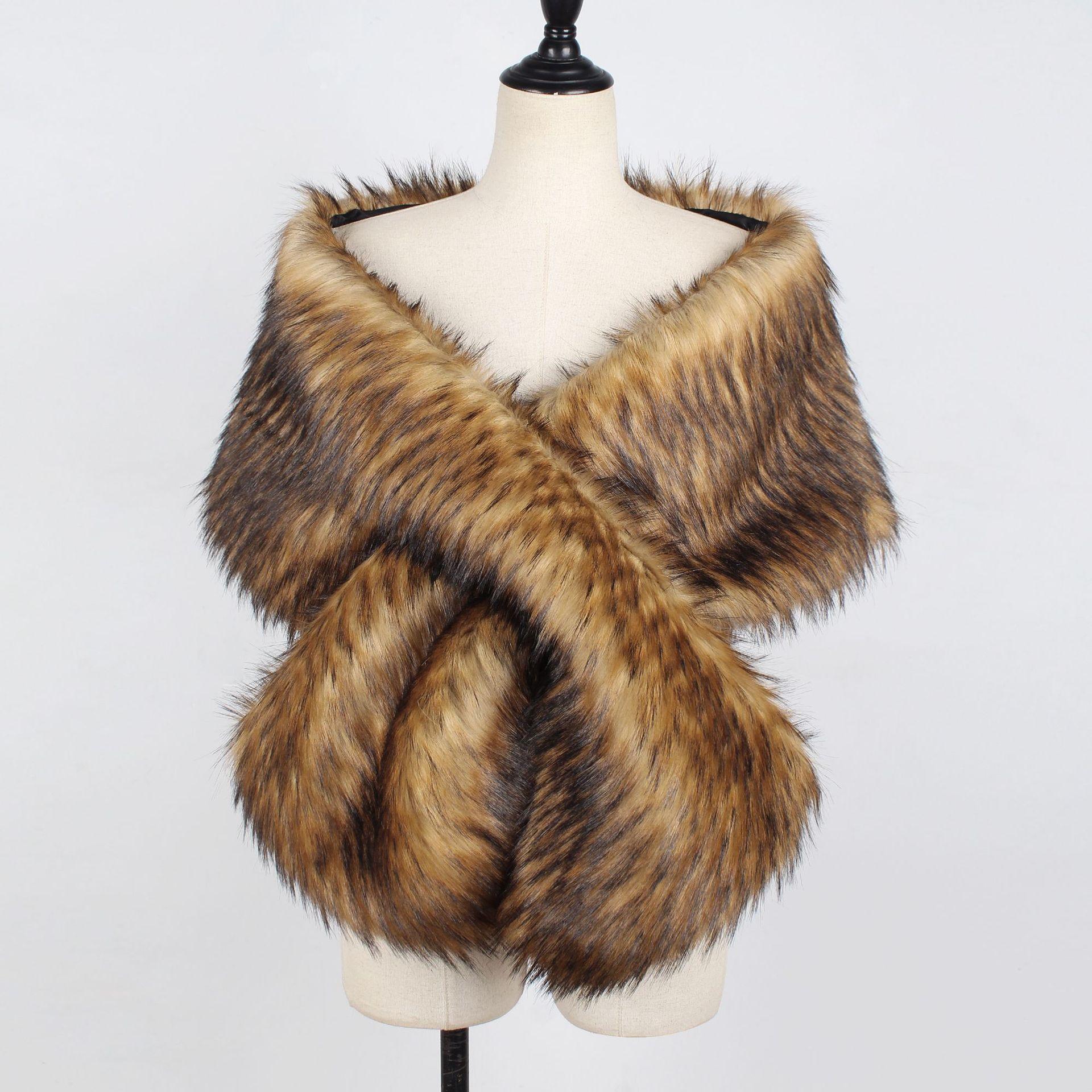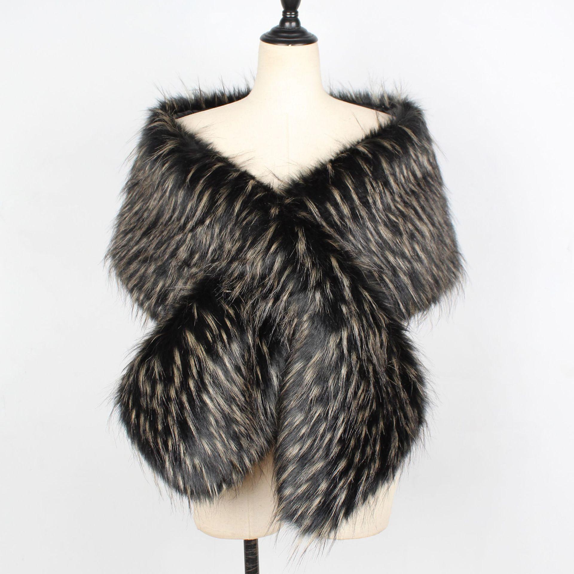 P0195 Chal Bufanda de Piel Sintética en Stock Bufanda Multicolor Vestido de Novia Piel Sintética de Mapache Cruzada