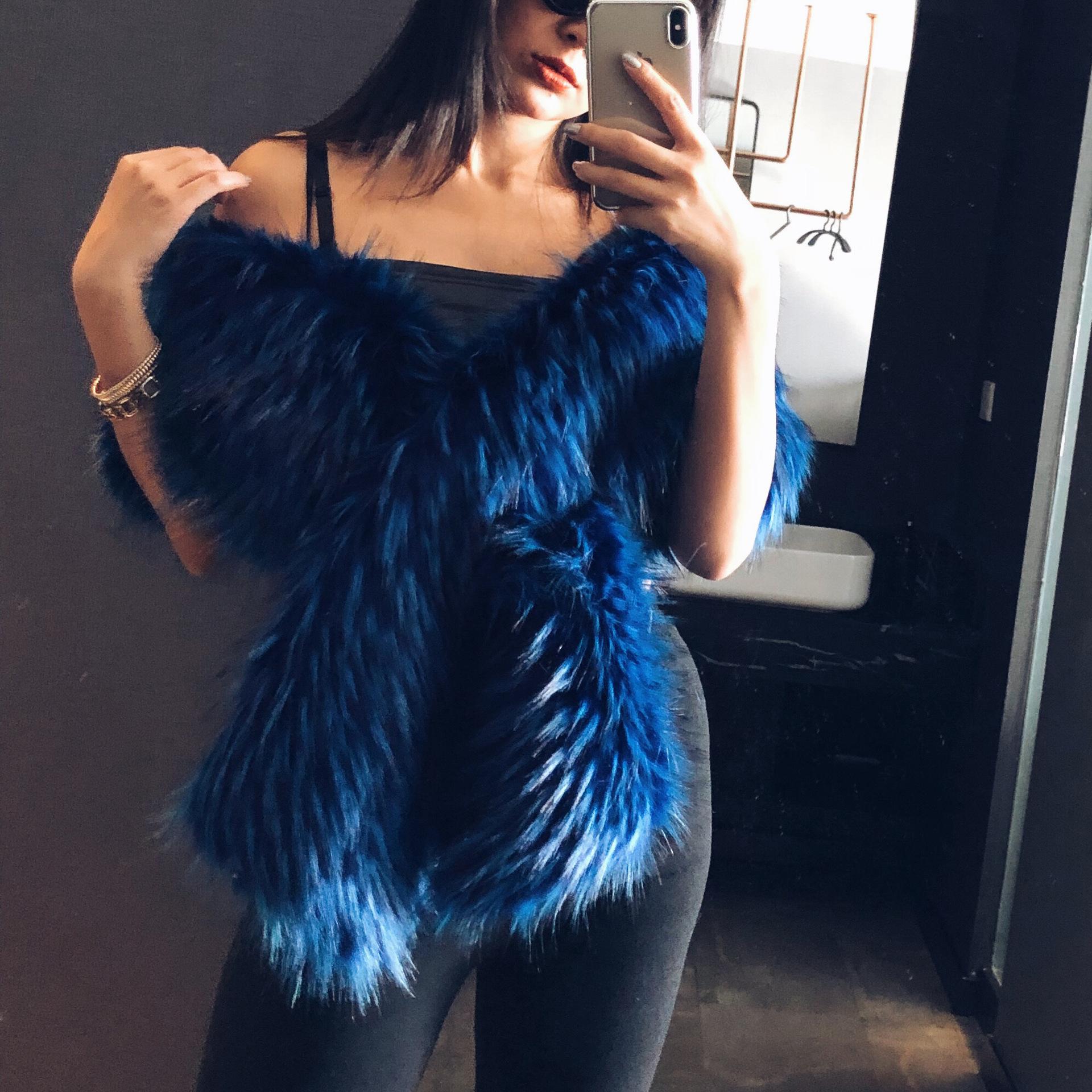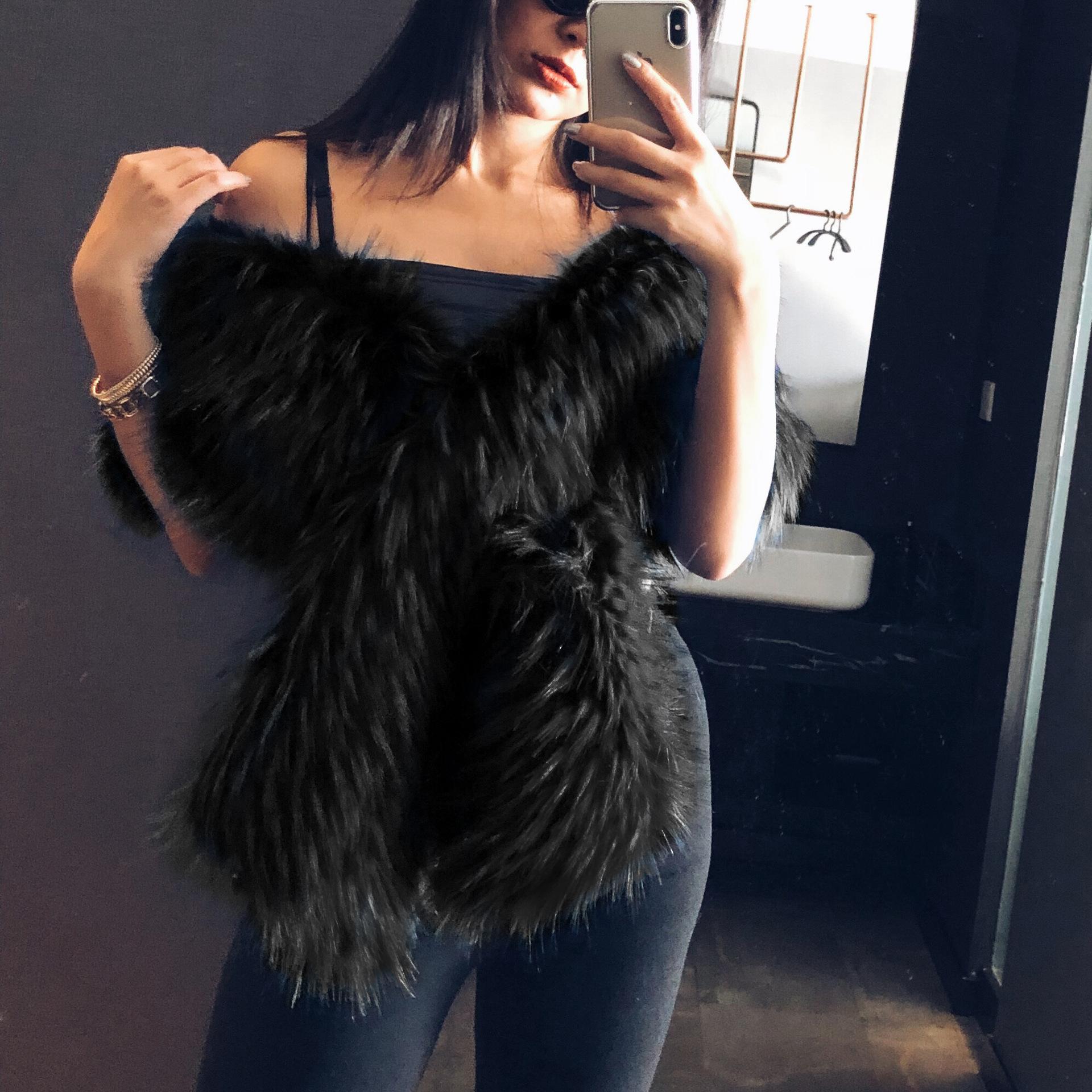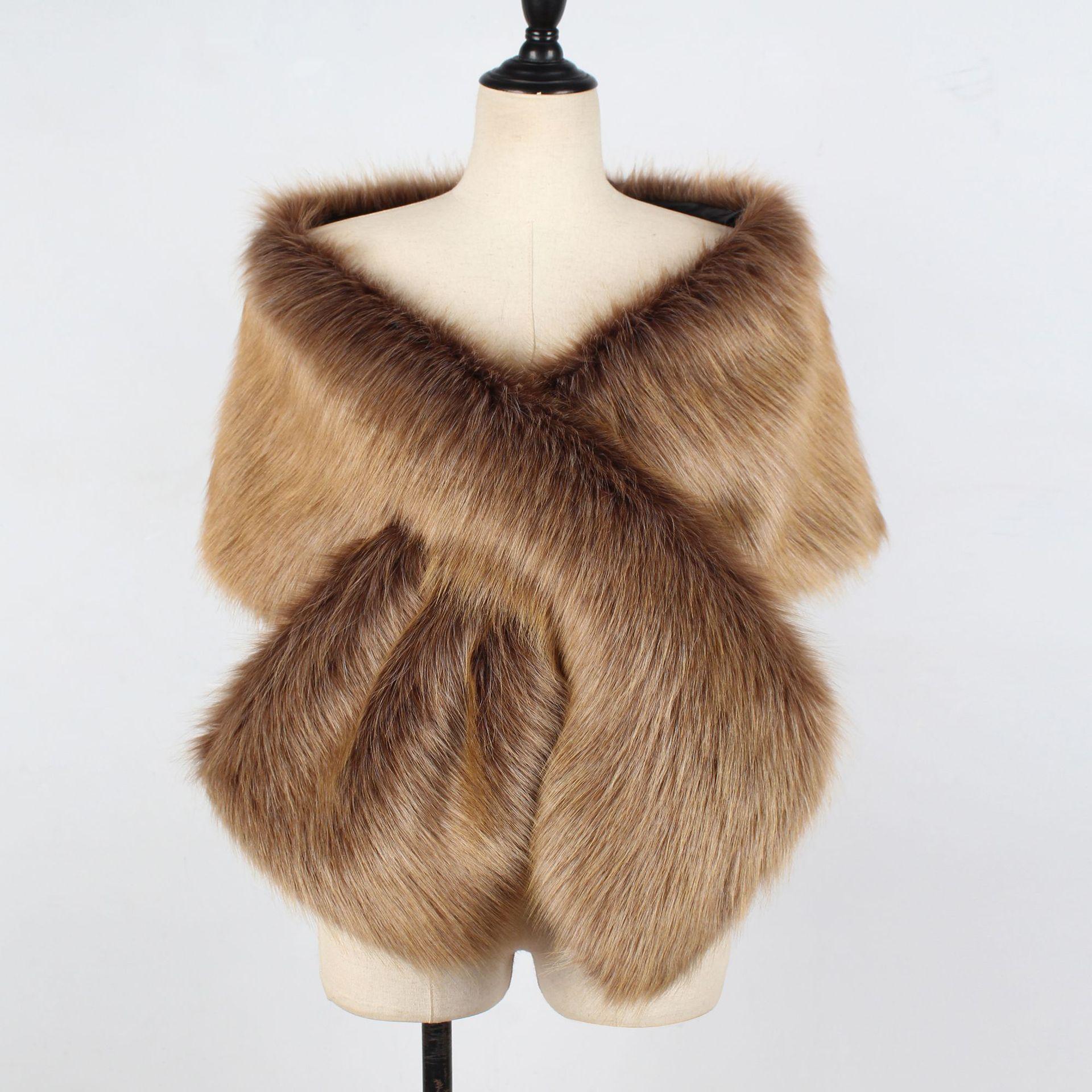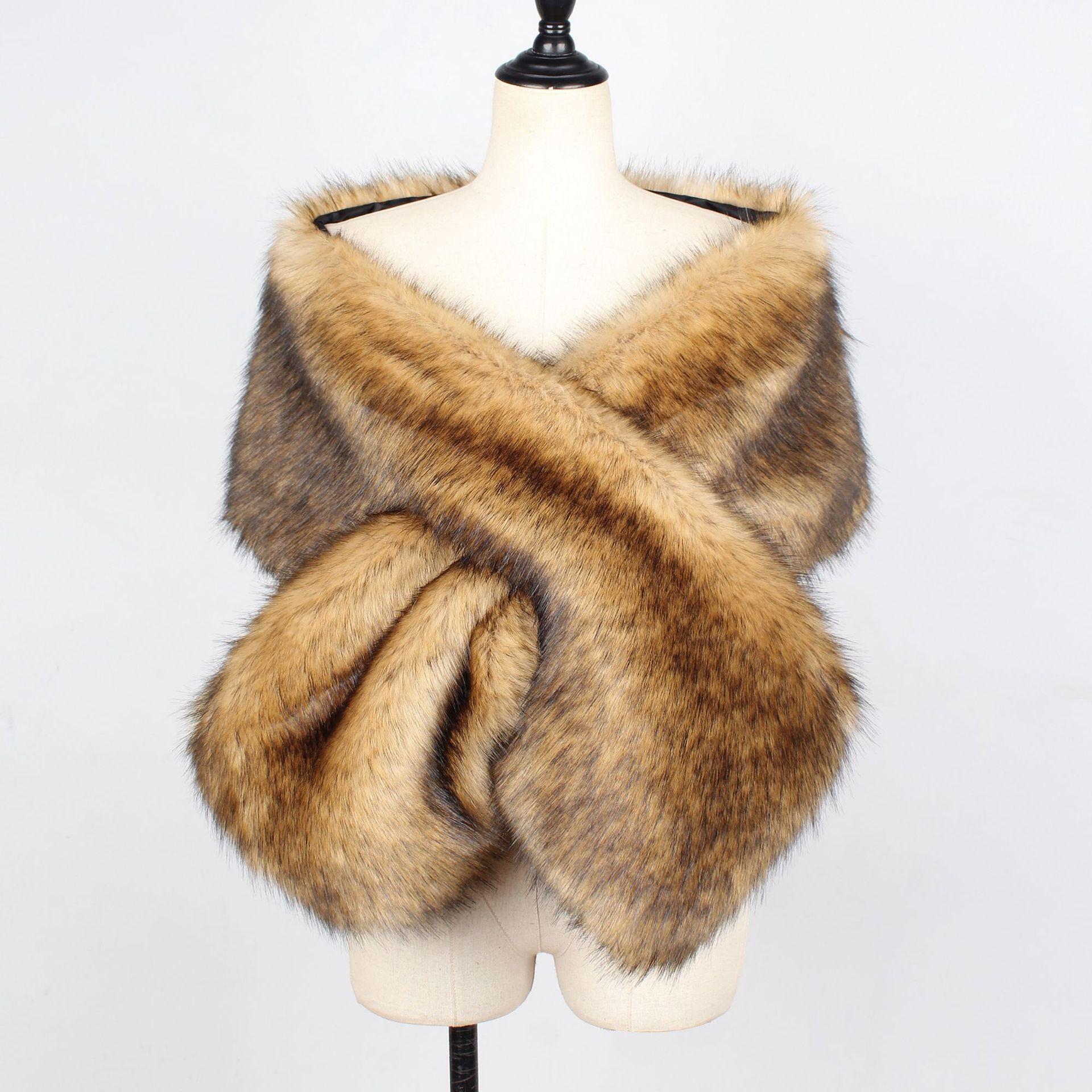 P0195 Chal Bufanda de Piel Sintética en Stock Bufanda Multicolor Vestido de Novia Piel Sintética de Mapache Cruzada