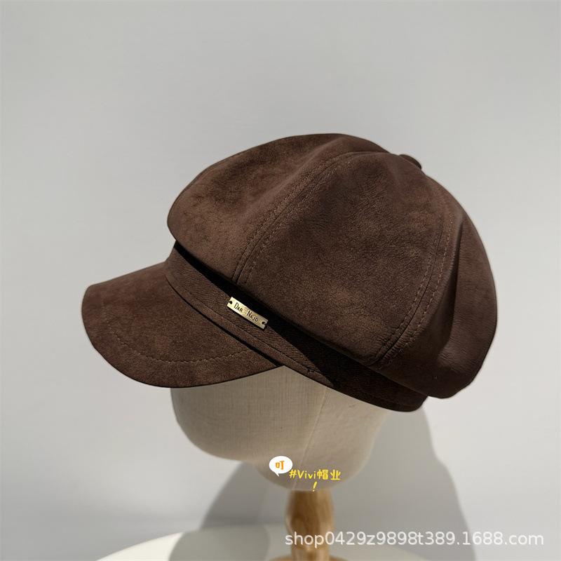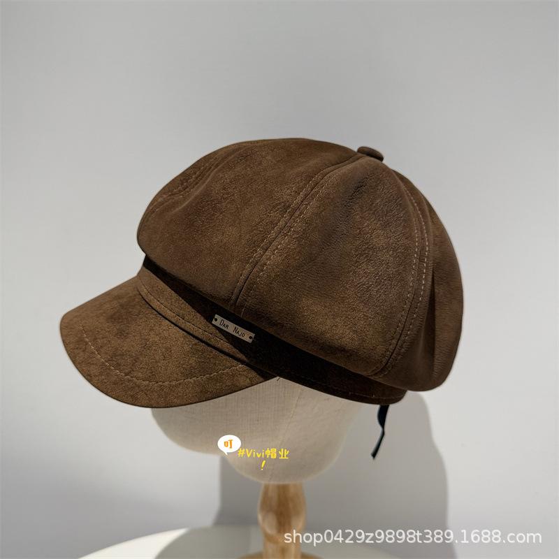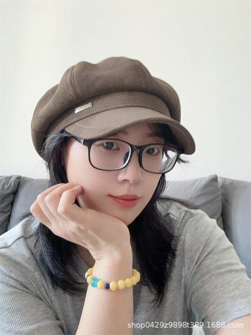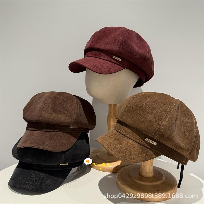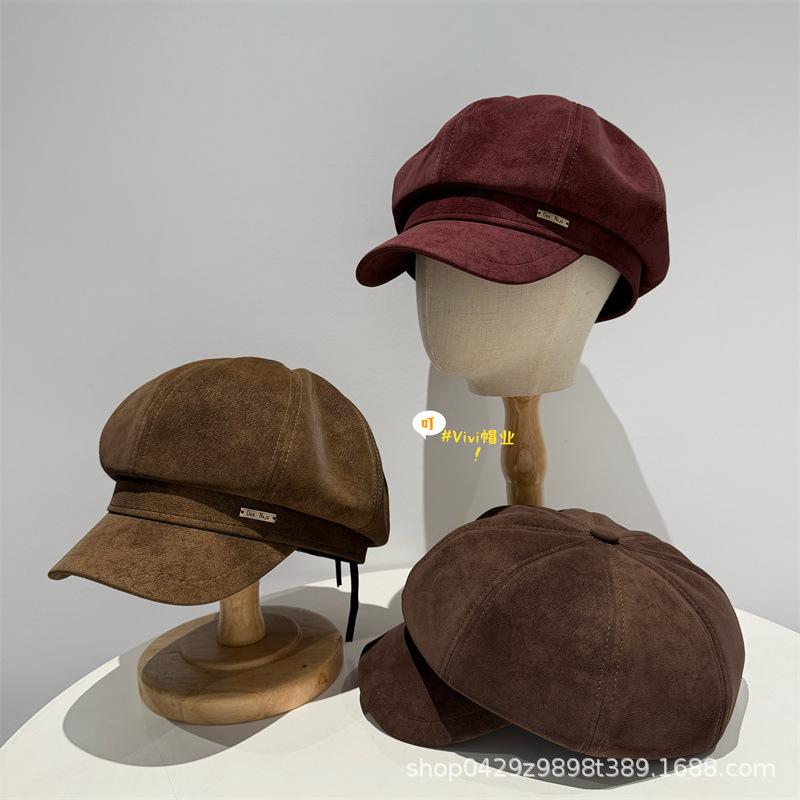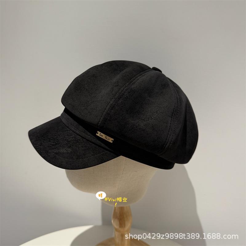 Sombrero Octogonal Retro Negro Japonés Versión Coreana 2025 Nuevo Otoño e Invierno Moda Sombrero de Pintor Versátil Sombrero de Repartidor