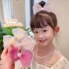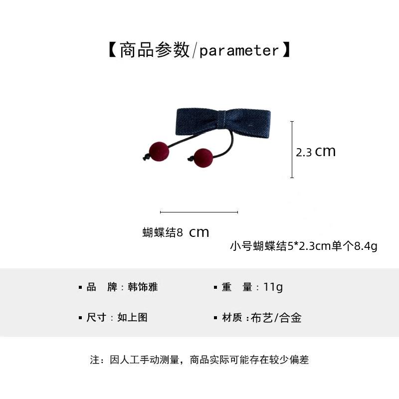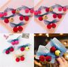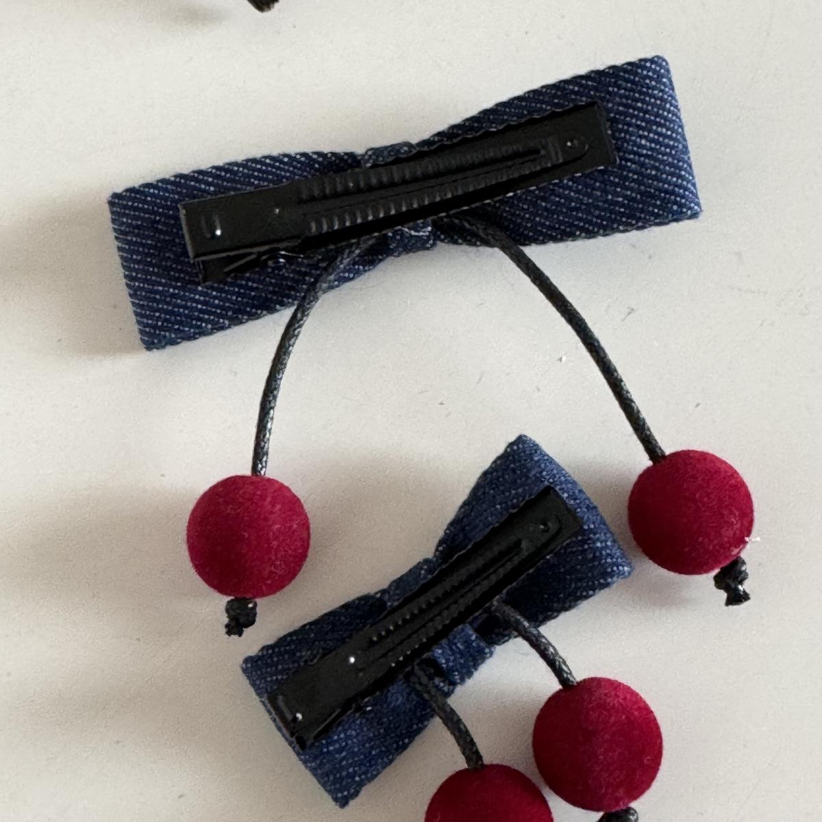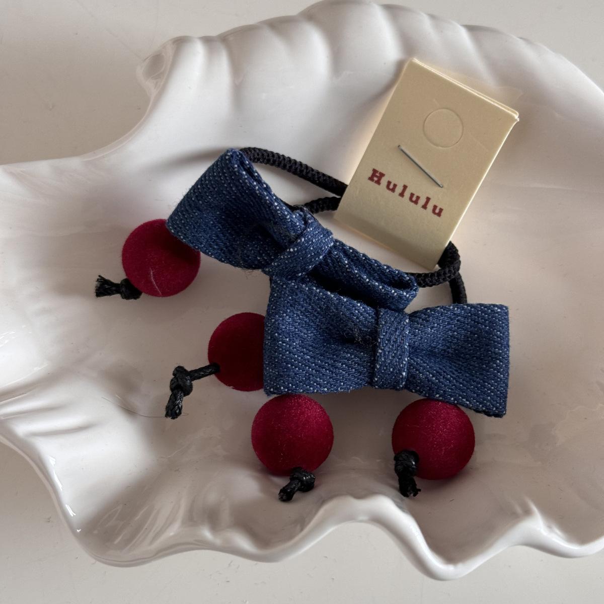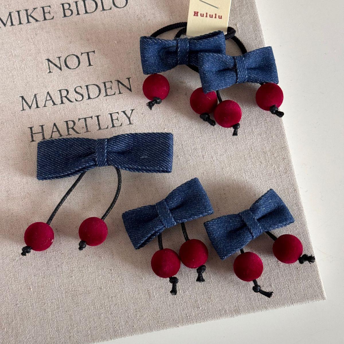Tela de mezclilla azul Lazo de cereza con bola roja Horquilla para el cabello de niños Lindo anillo para el cabello de niñas Otoño e invierno Adorno para la cabeza Horquilla