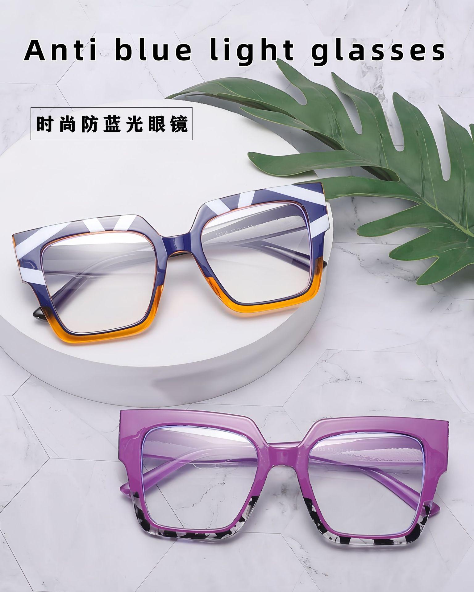 Gafas Cuadradas de Nuevo Estilo Europeo y Americano Anti-luz Azul para Mujer, Lente Llana de Contraste para Mujer, Gafas Planas para Mujer, Marco de Miopía de Moda Ins