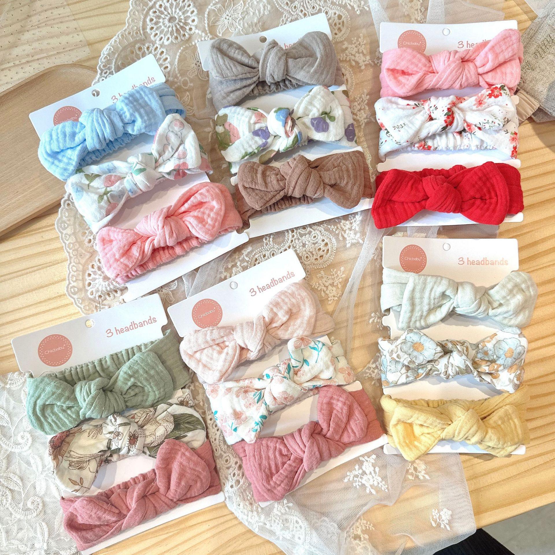 Ins Transfronterizo Nuevo Producto Banda para el Cabello de Gasa Diadema de Orejas de Conejo para Niños Adorable Gorro de Algodón Floral para Bebé