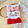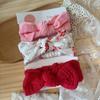 Red care bear gauze set three pieces, Light pink and blue gauze three-piece suit, Clear green floral gauze thr...