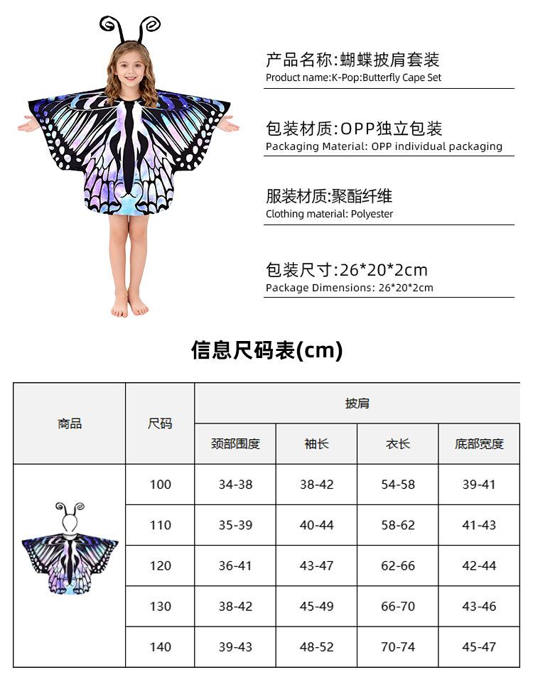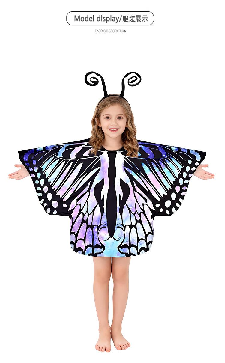 Capa de Mariposa Transfronteriza Capa de Halloween Decoración de Mariposa Pequeña para Niños Bufanda de Seda Chal Disfraz de Festival