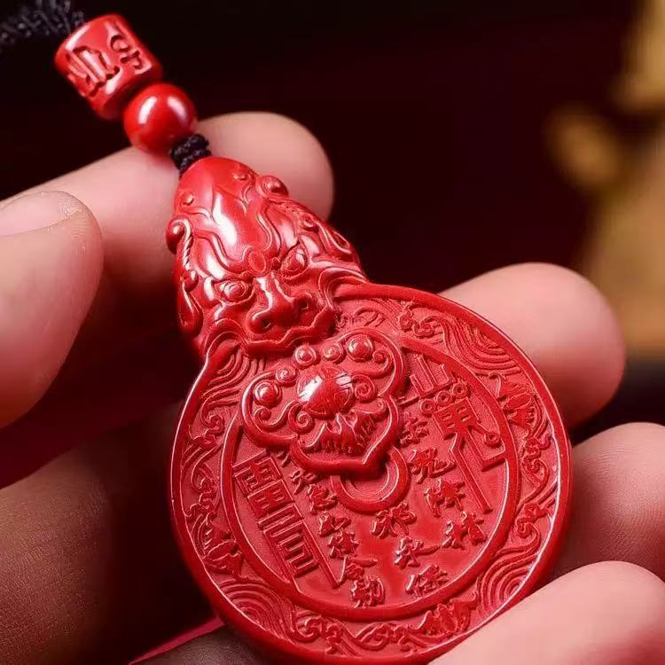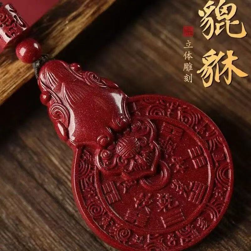 Cinnabar Natural en Bruto Pixiu Flor Fantasma de Montaña Colgante de Dinero Alto Contenido Arena Oro Púrpura Arena Roja Imperial Año Benming Venta al por Mayor