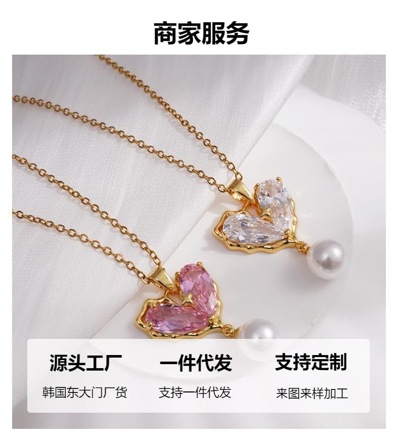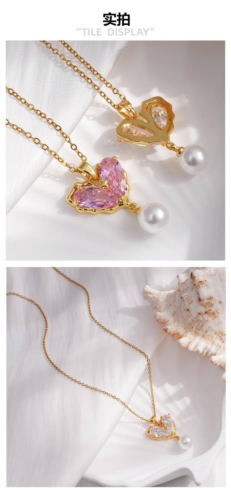 N32058PK#Pink Zircon Heart Tassel Pearl Necklace, N32058WH#White Zircon Heart Tassel Pearl Necklace