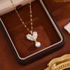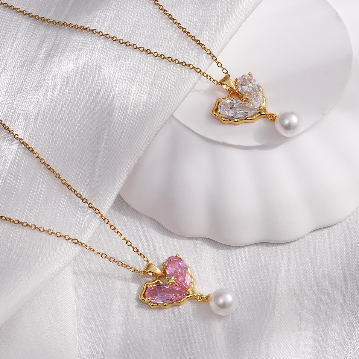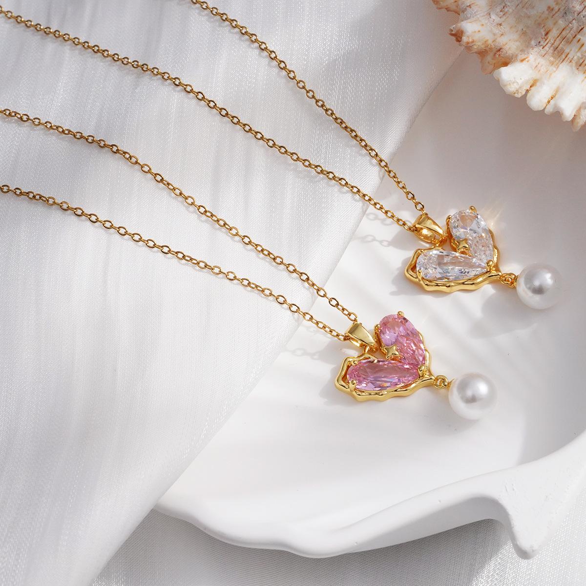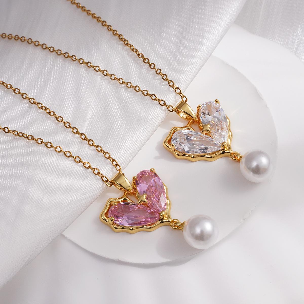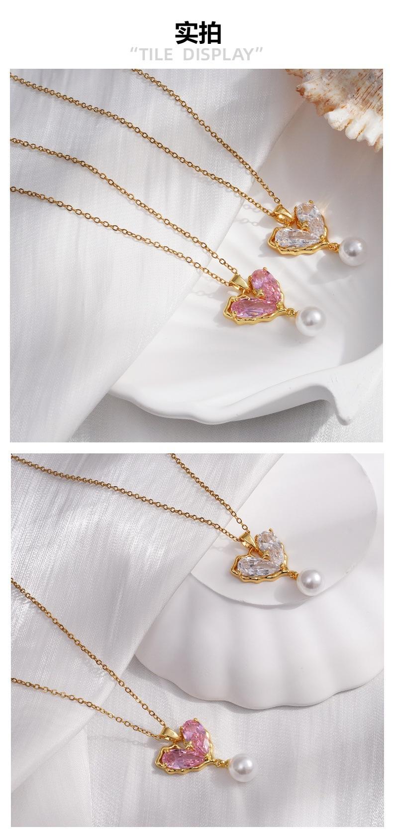 Collar con colgante de corazón de perla de circonio incrustado para mujer, cadena de clavícula de acero de titanio que no se desvanece, colgante de cobre, joyería de moda de alta gama