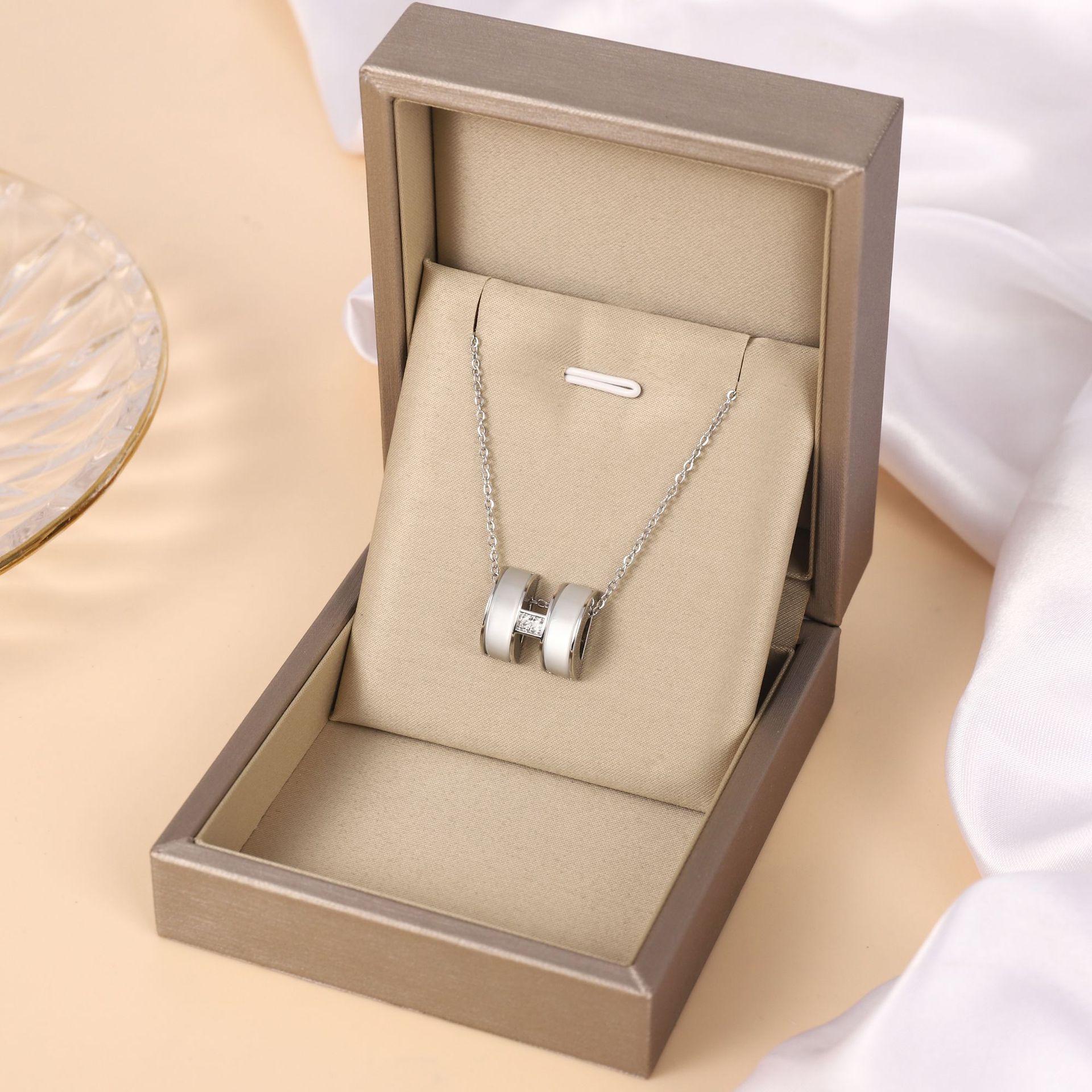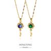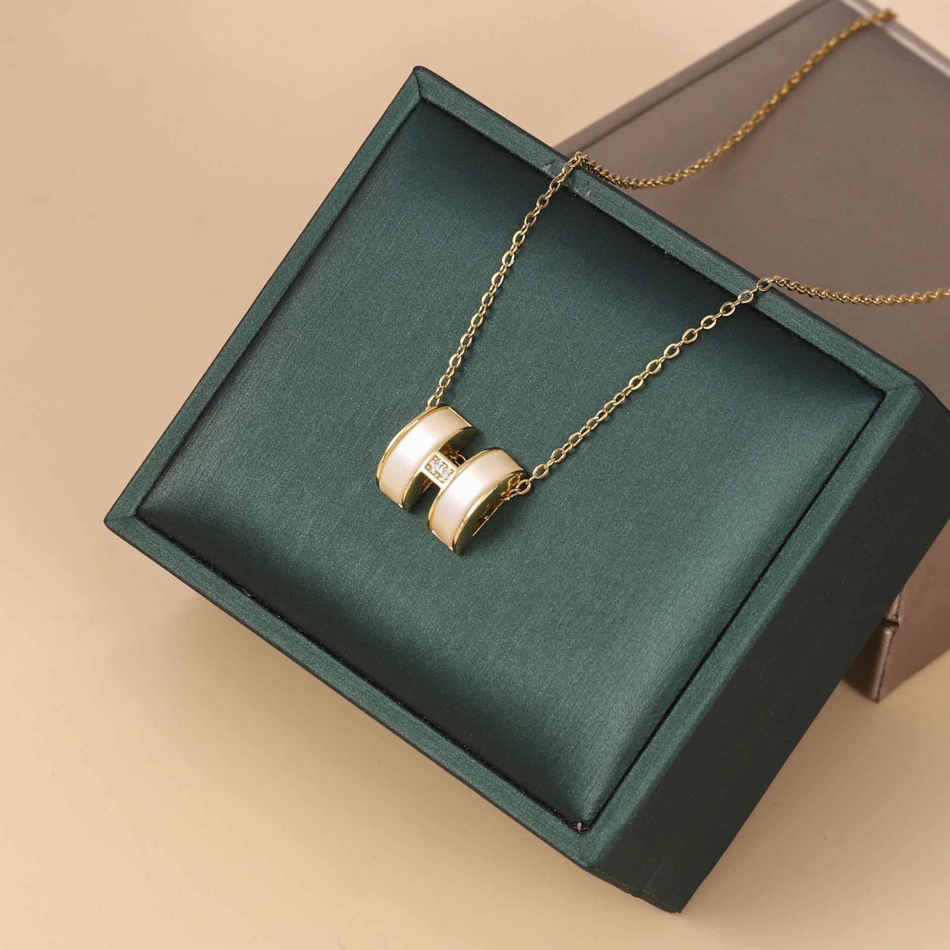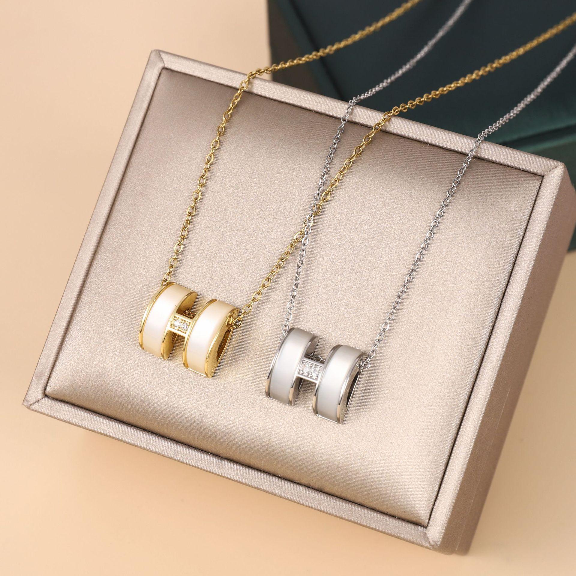 Collar de Acero de Titanio con Colgante de Letra de Piedra Ojo de Gato de Estilo Coreano de Alta Gama para Mujer, Nicho, Lujo Ligero, Alta Gama, Celebridad de Internet, Cadena para Clavícula, Joyería