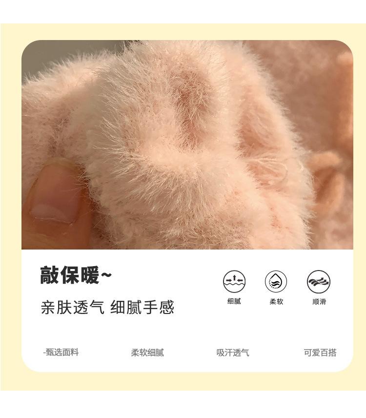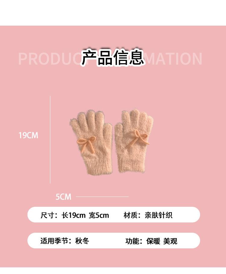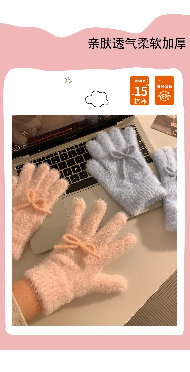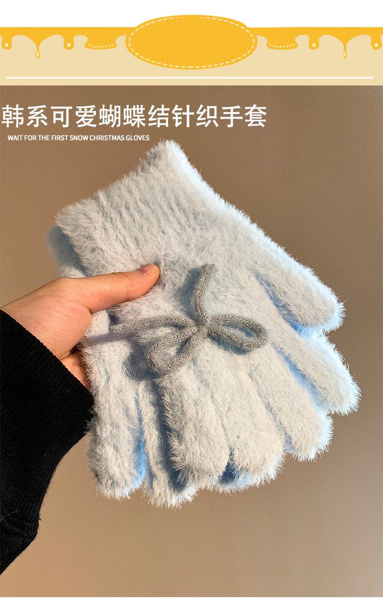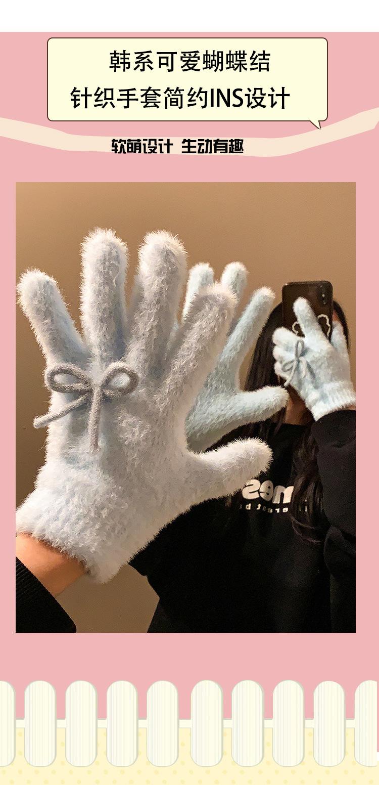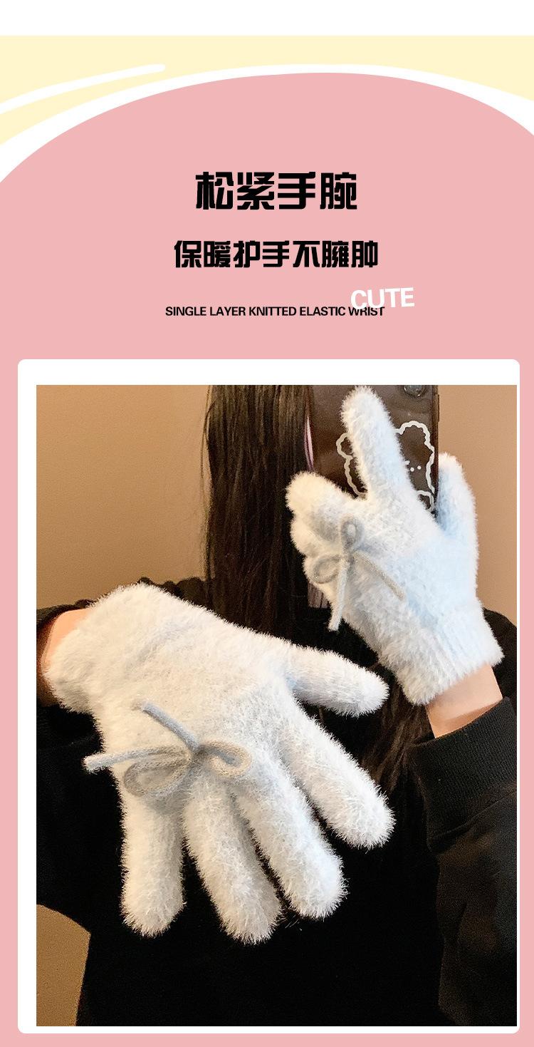 Guantes de Punto Peludos sin Dedos con Lazo Azul Lindo Estilo Coreano para Mujer Otoño Invierno Cálidos a Prueba de Frío Plus Terciopelo