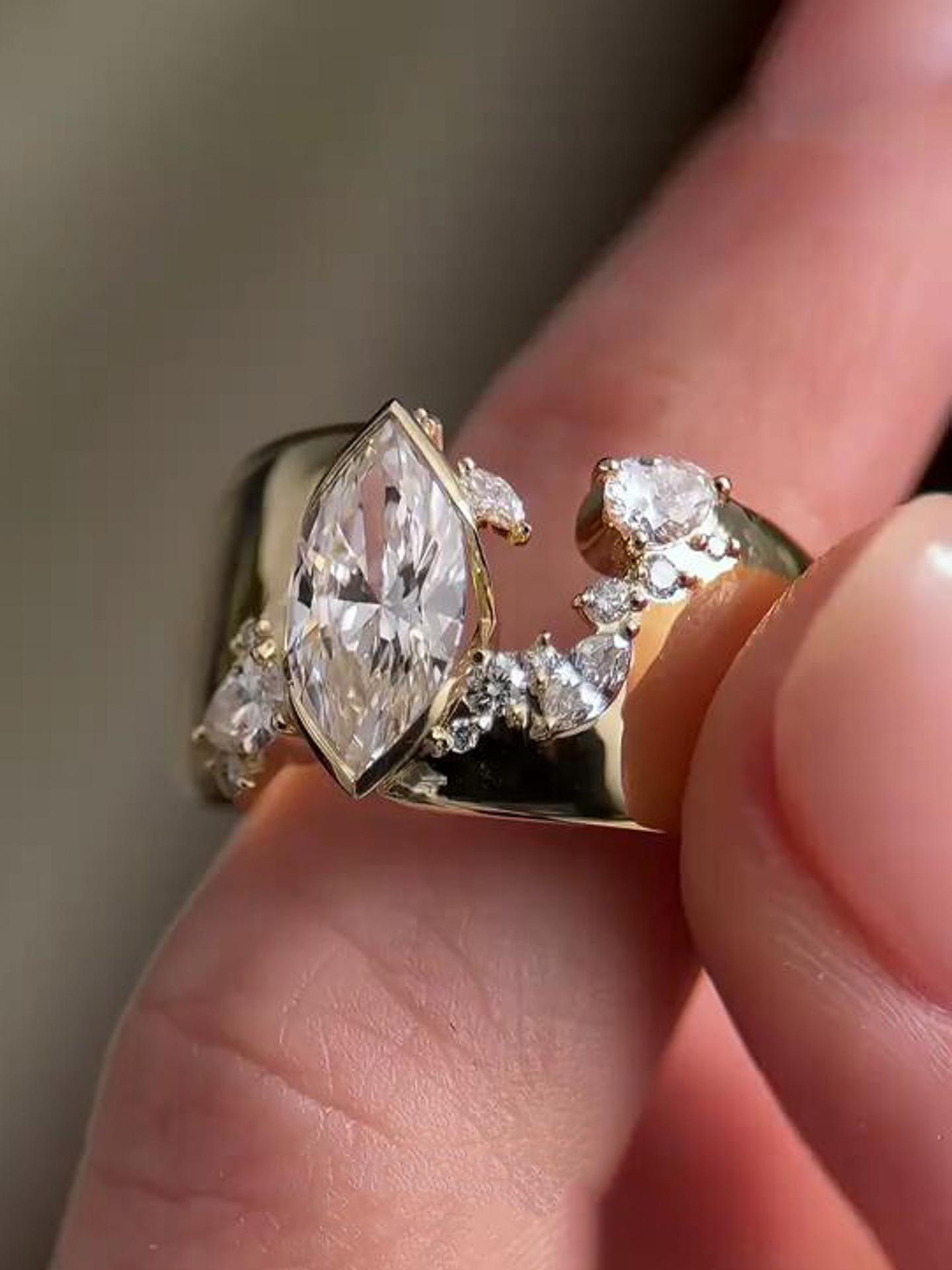 Librito Rojo Estilo Caliente Vintage Anillo de Diamantes de Banda Ancha con Brecha de Banda Nicho Diseño Único Anillo Estilo de Moda Envío Directo