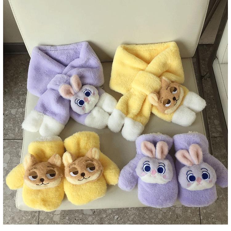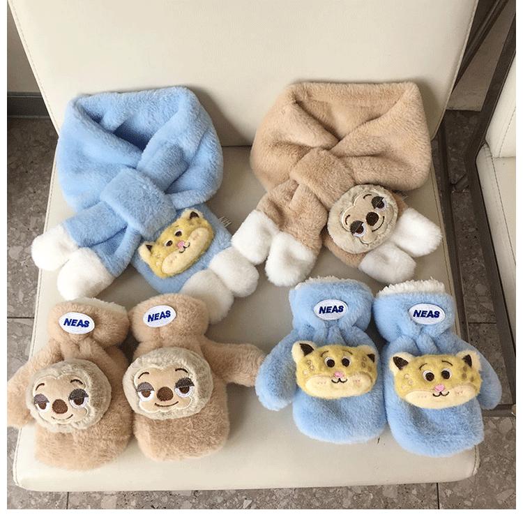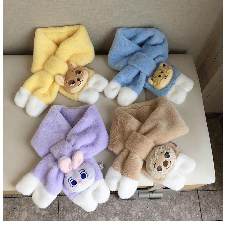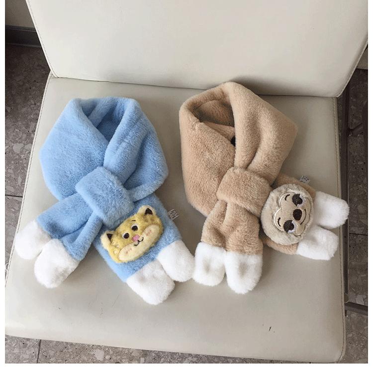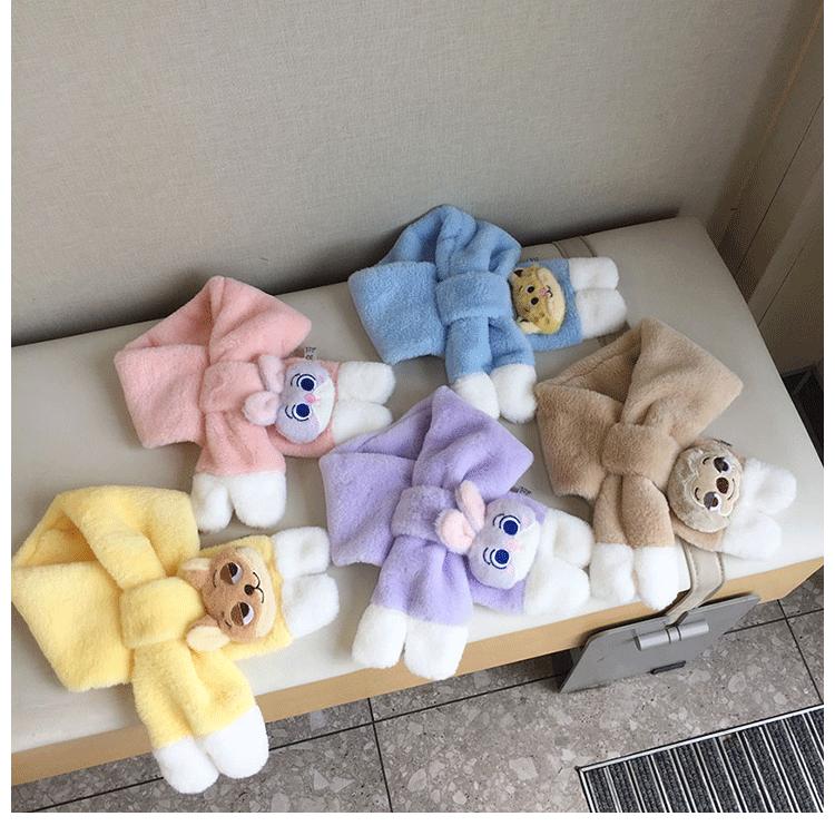 Bufanda de Felpa para Niños Invierno Niños y Niñas Niños Dudu Conejo Agradable a la Piel Engrosada Cálida Calentador de Cuello para Bebé Set Cruzado