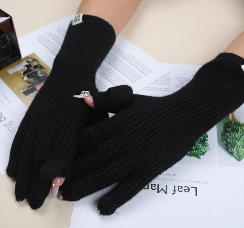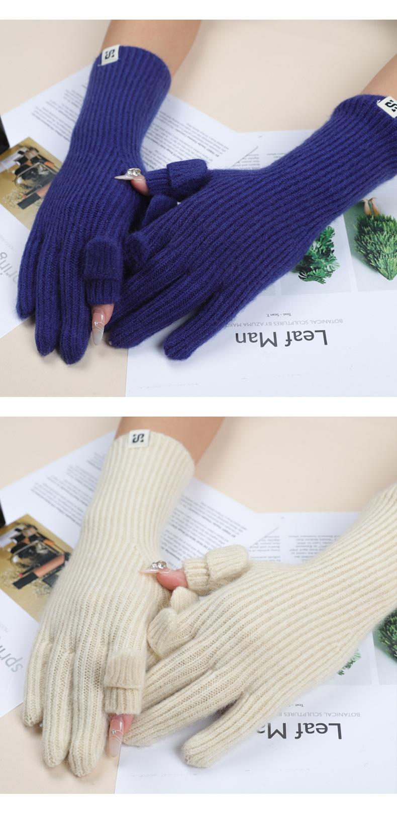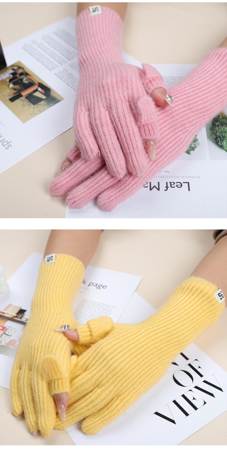 Guantes de Pantalla Táctil para Comercio Exterior Otoño e Invierno Cálidos Guantes sin Dedos Gruesos Cálidos de Lana Tejida Estilo Coreano Guantes para Estudiantes Venta al por Mayor