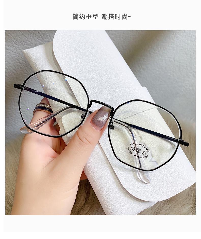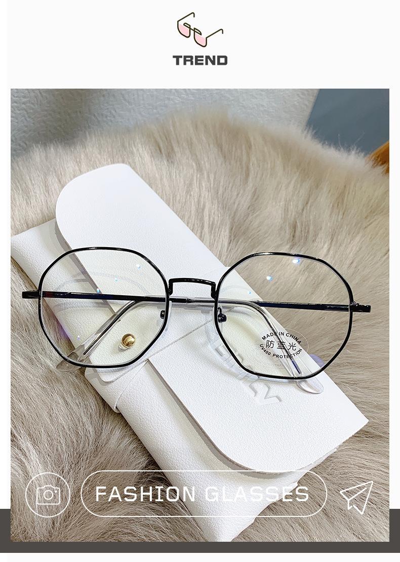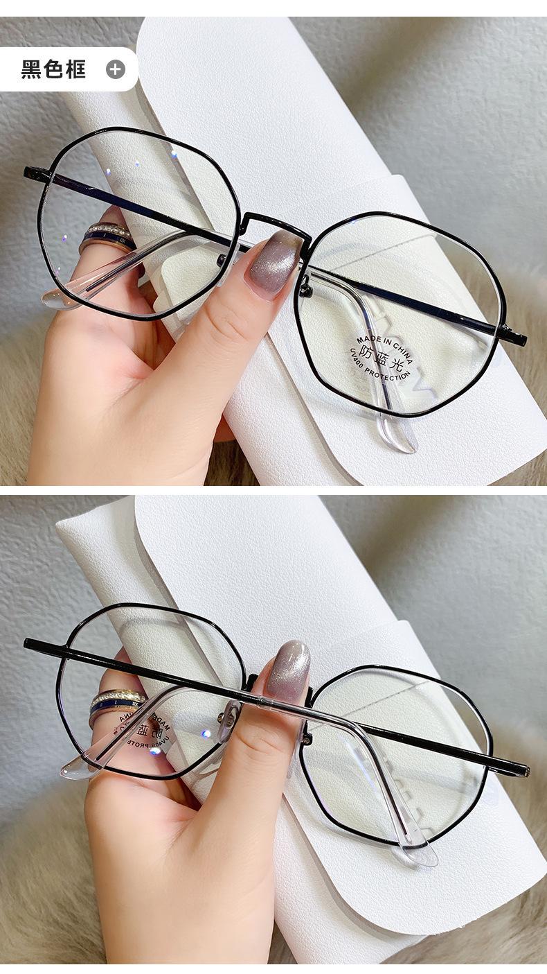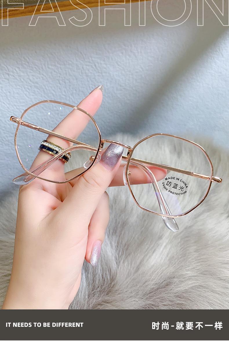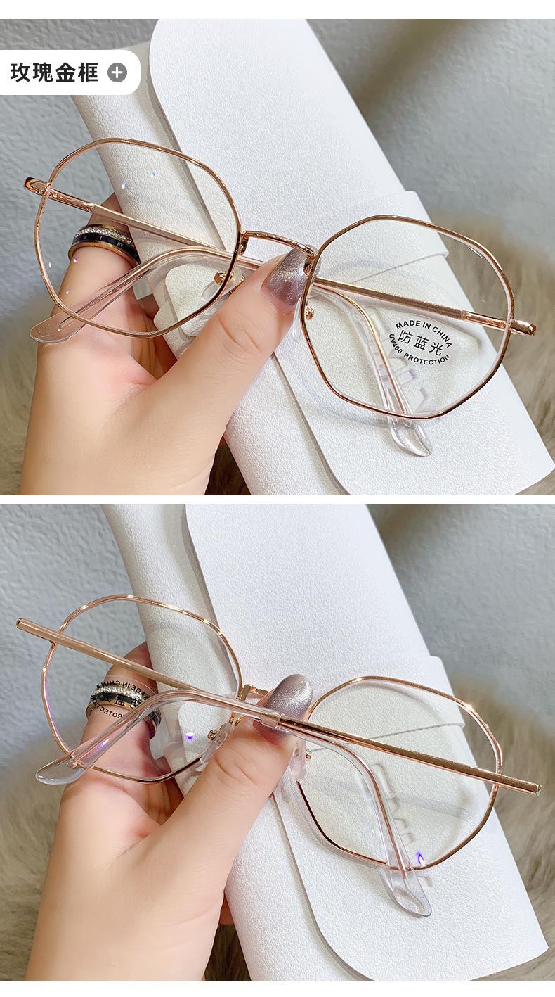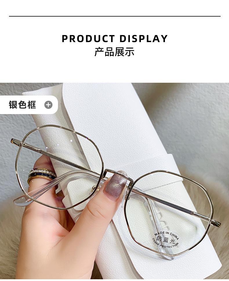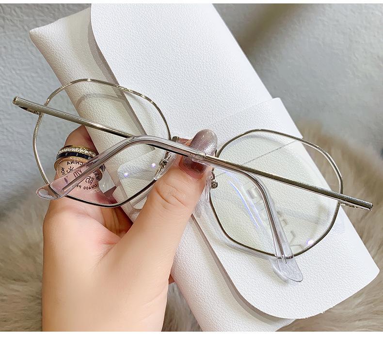 2023 Nuevos Lentes Planos de Luz Azul Estilo Coreano Moderno Montura de Metal Literaria Retro Poligonal Lentes Planos