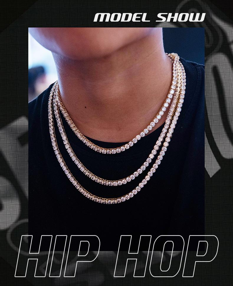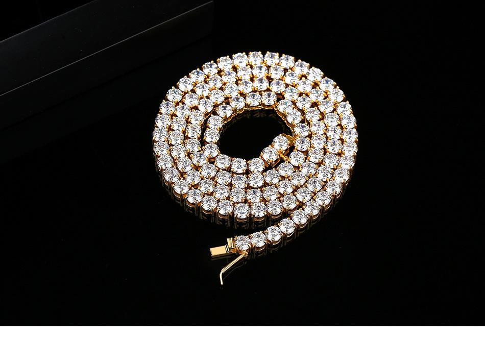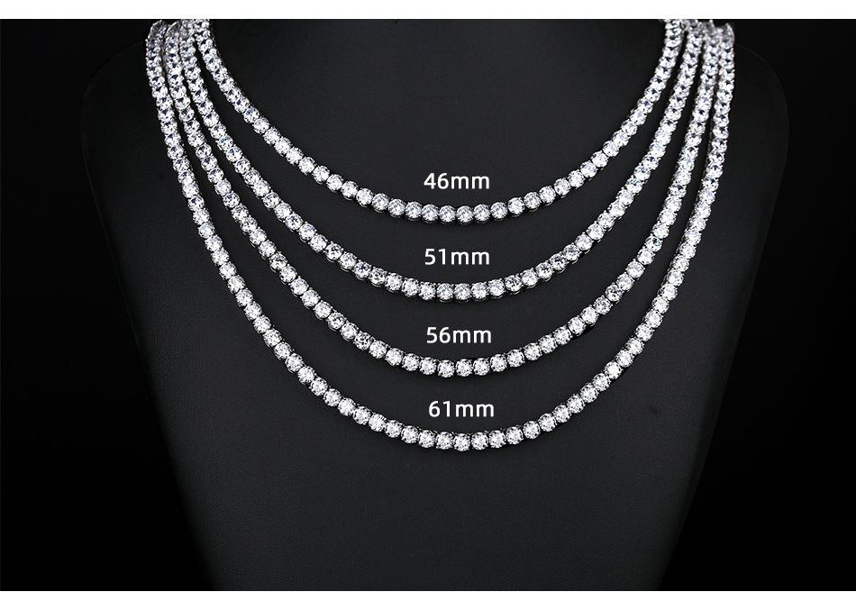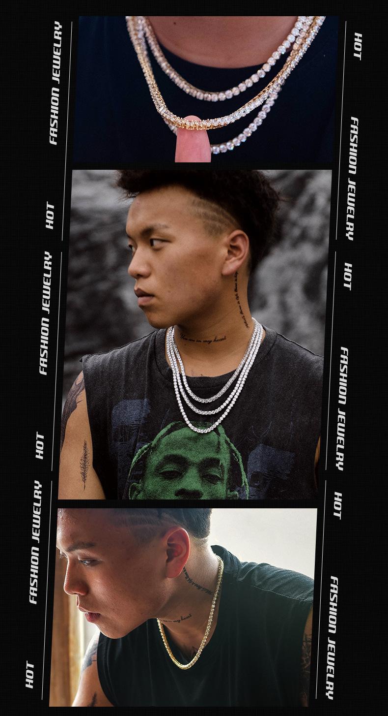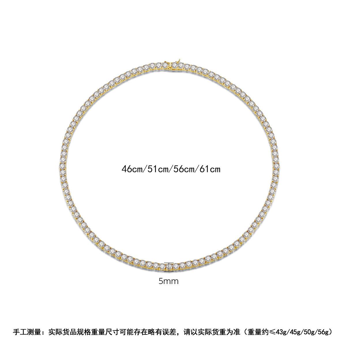 Jinse Collar de Tenis de Diamantes Completos de una Sola Fila de 5 mm para Pareja Collar Hip-Hop para Hombre y Mujer Moda Europea y Americana Cadena Elegante Versátil