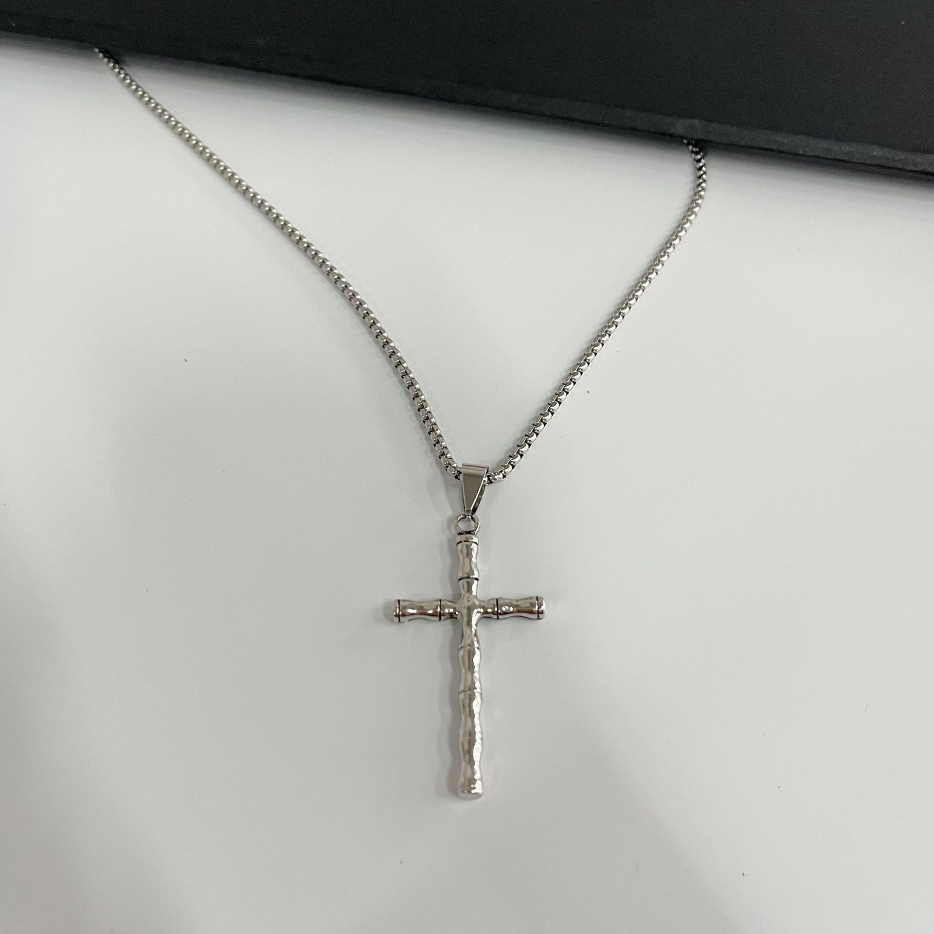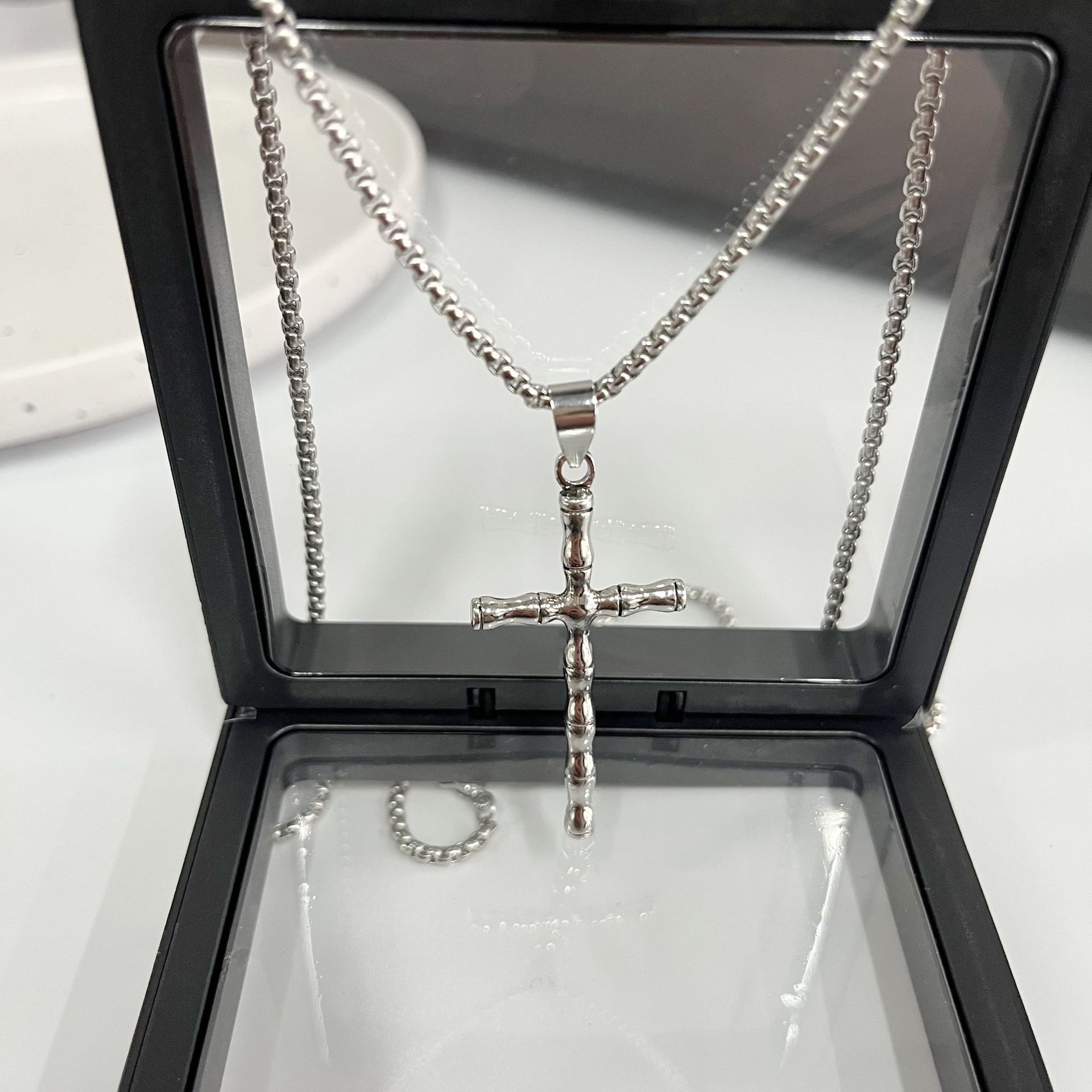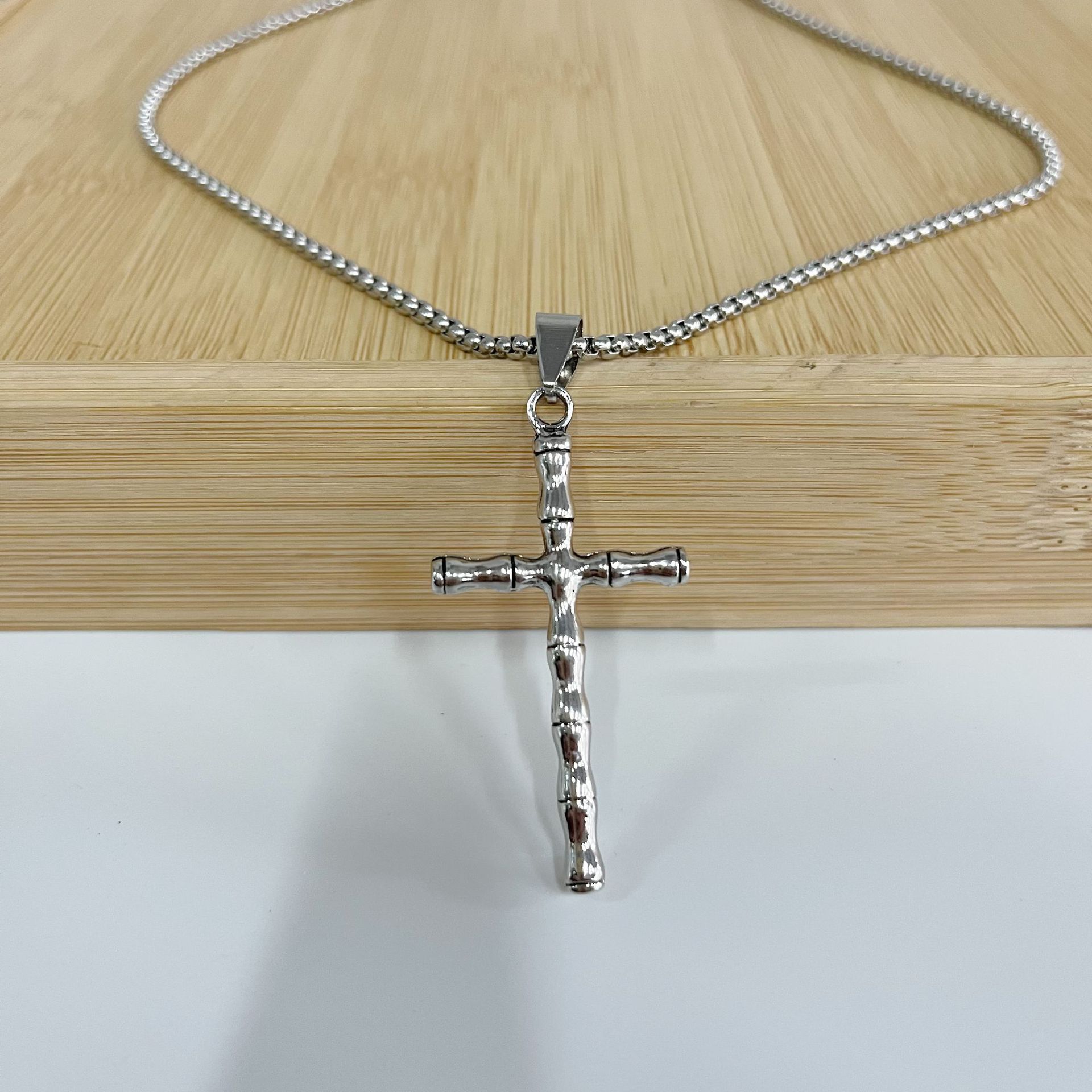 Estilo Europeo y Americano Acero de Titanio Cadena de Perlas Hip-Hop Collar Versátil para Hombre Cadena Larga para Suéter Colgante Cruz