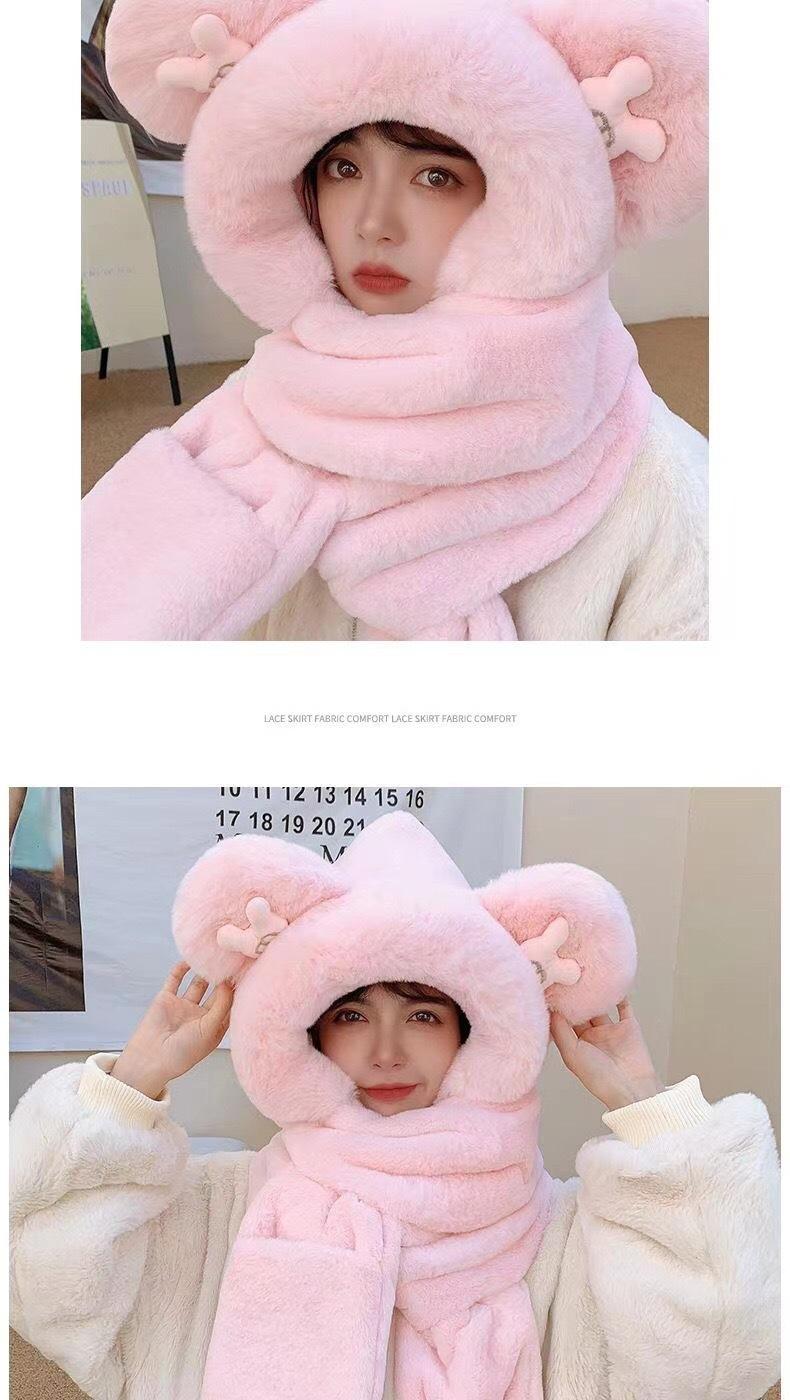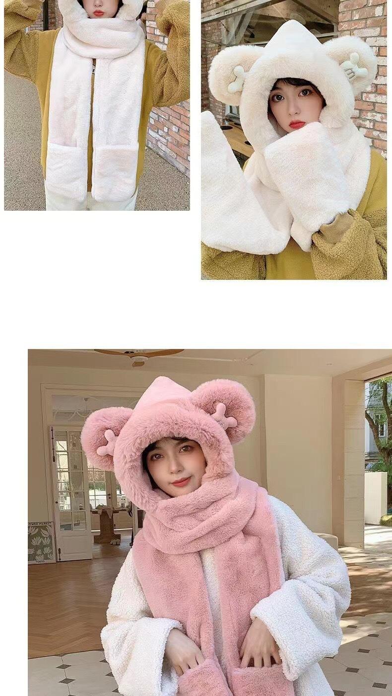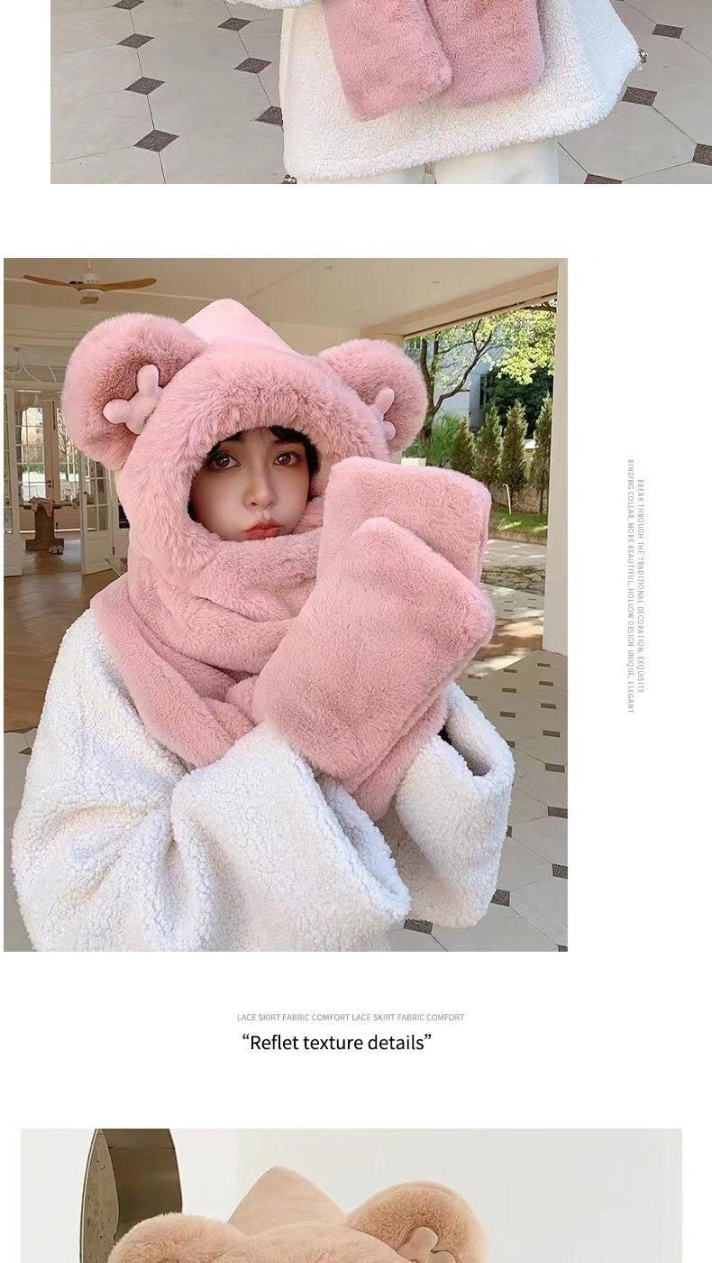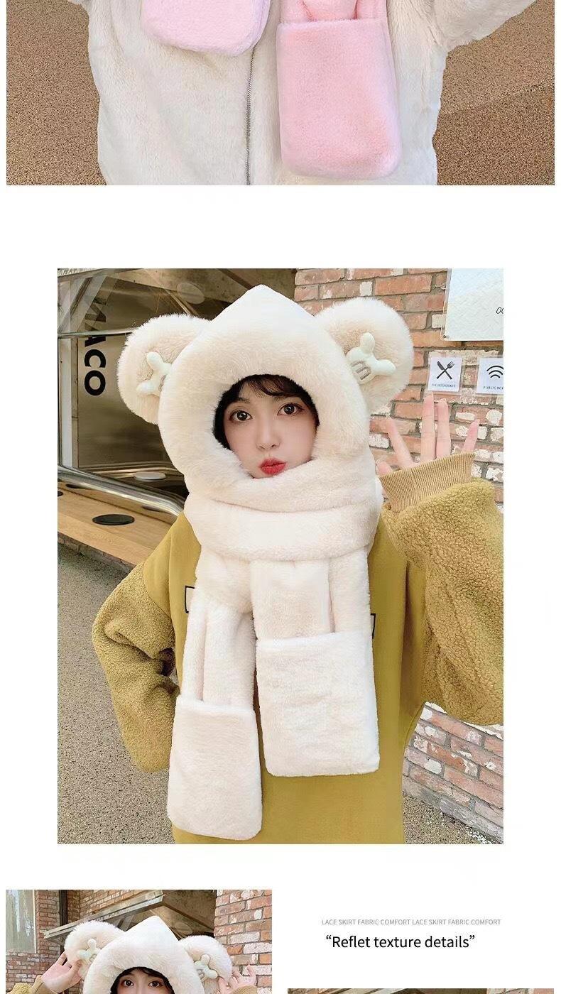 Conjunto de tres piezas de sombrero, bufanda y guantes de felpa, versátil para mujer, otoño e invierno, grueso y cálido, protección contra el frío para ciclismo, protección para las orejas, con capucha