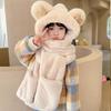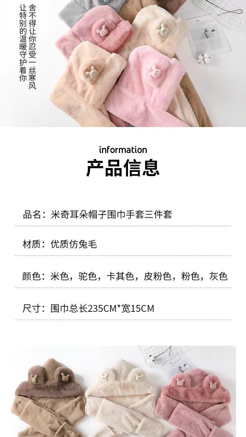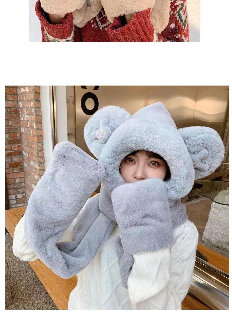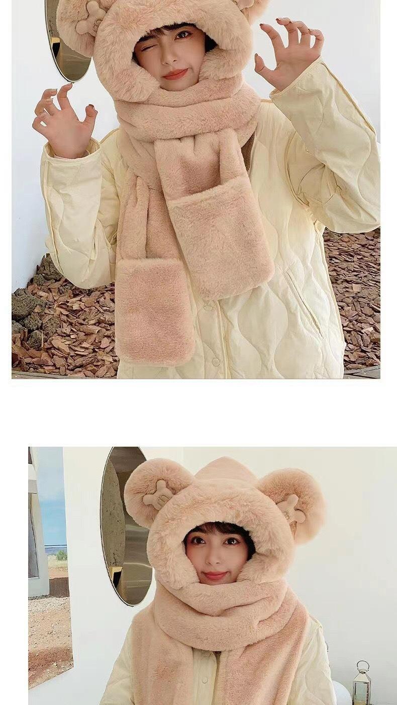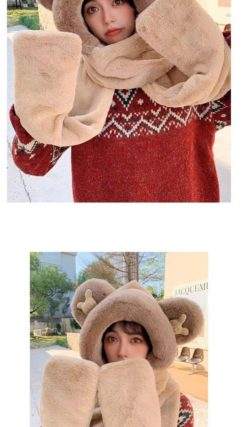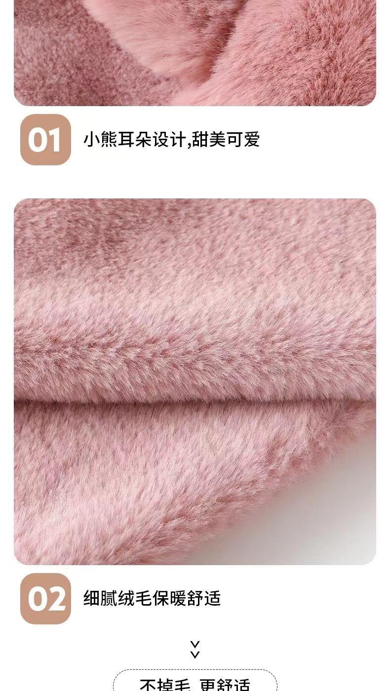 Conjunto de tres piezas de sombrero, bufanda y guantes de felpa, versátil para mujer, otoño e invierno, grueso y cálido, protección contra el frío para ciclismo, protección para las orejas, con capucha