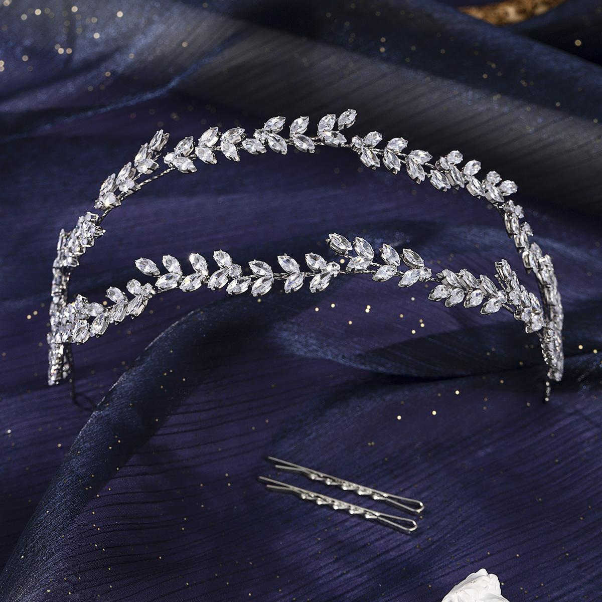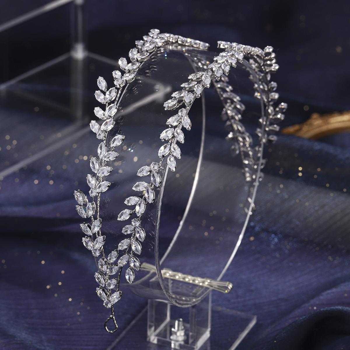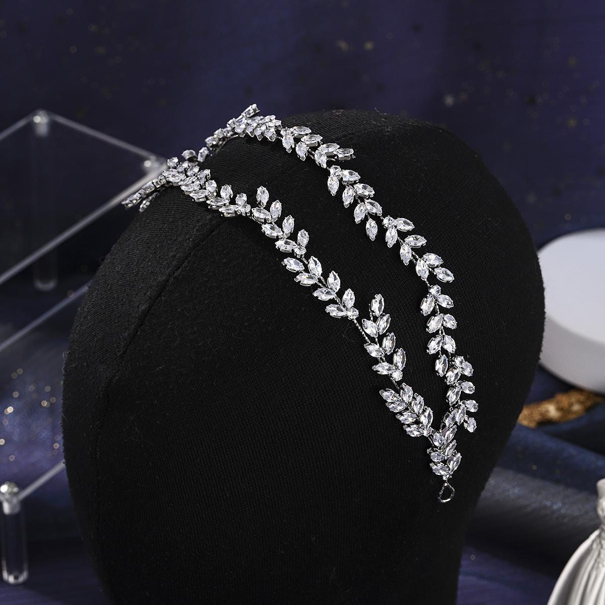 Lujosa Diadema de Laurel de Circonita para Fiesta de Banquete, Moda Brillante, Accesorio para el Cabello, Cobre con Incrustaciones de Circonita, Tocado para Novia, Vestido de Boda, Foto