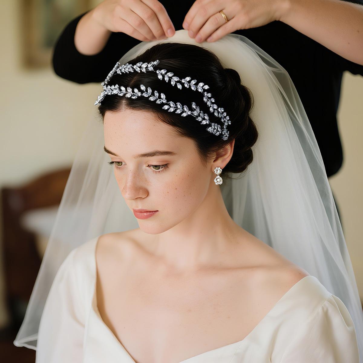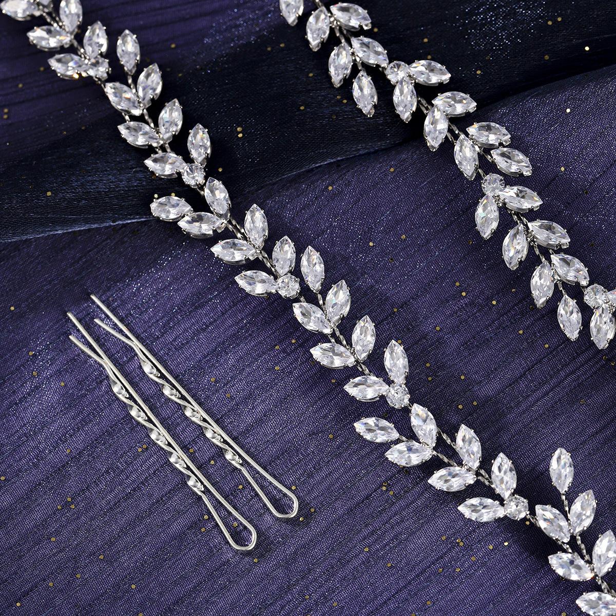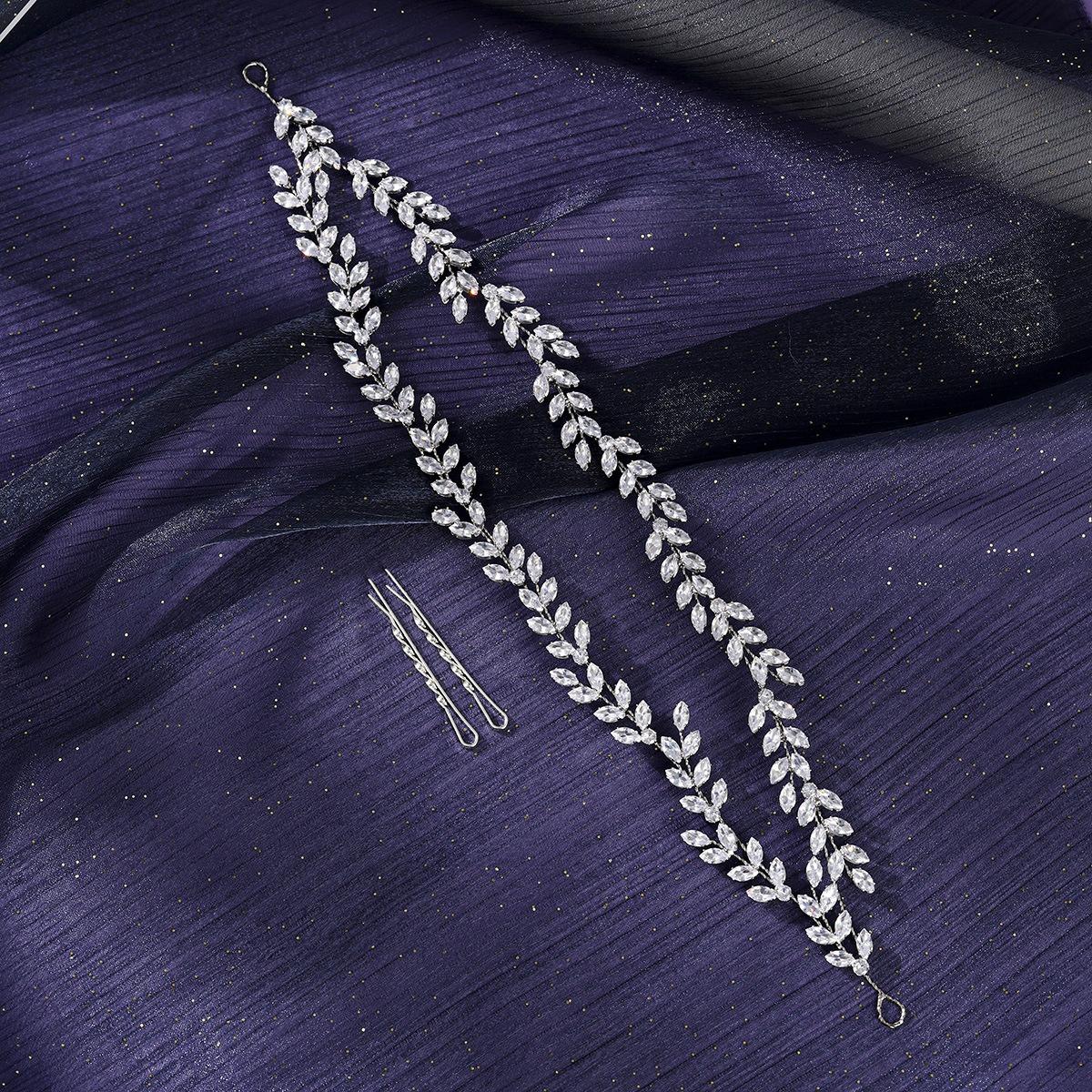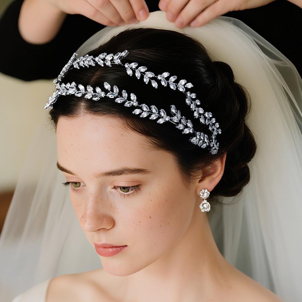 Lujosa Diadema de Laurel de Circonita para Fiesta de Banquete, Moda Brillante, Accesorio para el Cabello, Cobre con Incrustaciones de Circonita, Tocado para Novia, Vestido de Boda, Foto