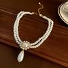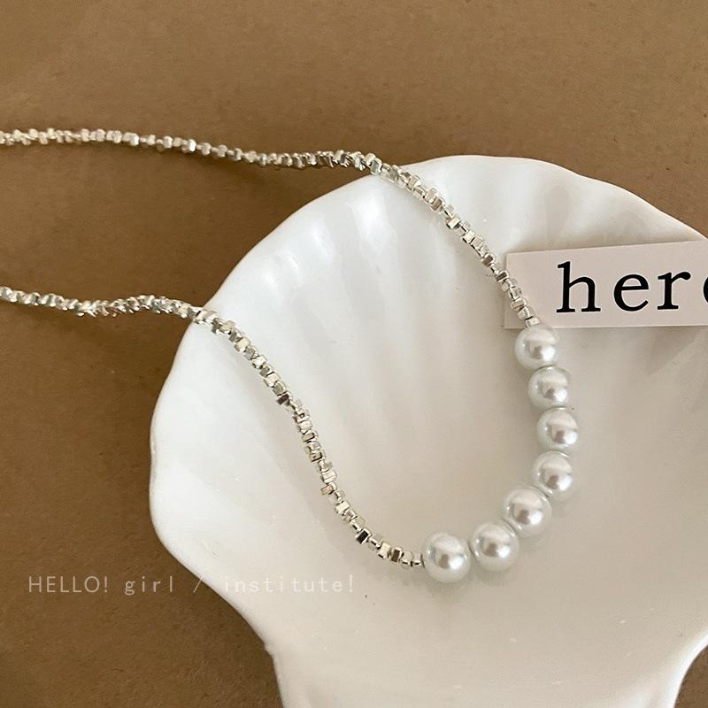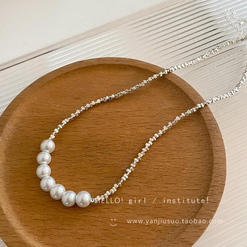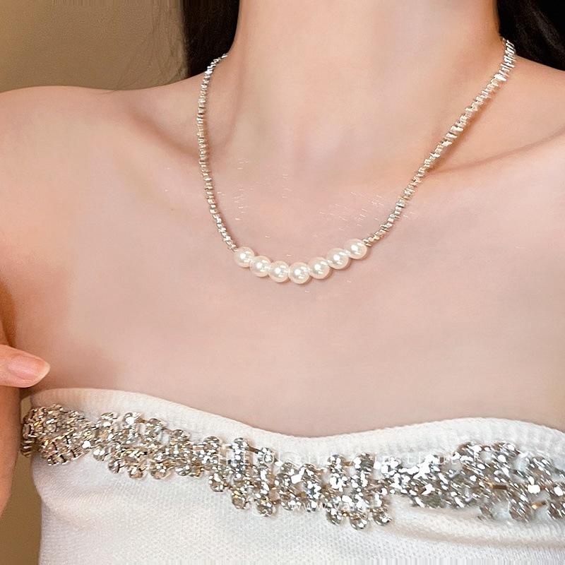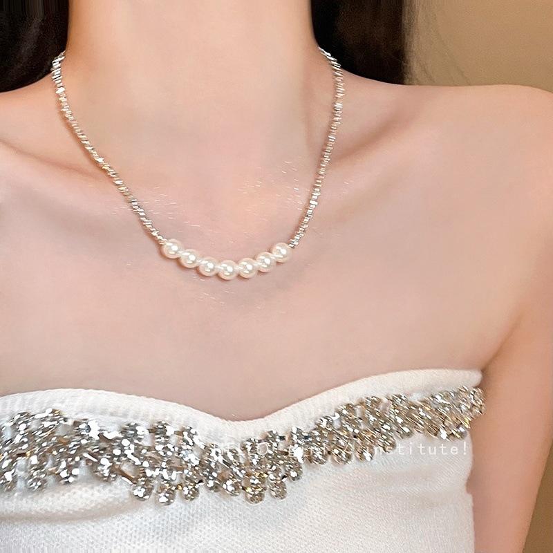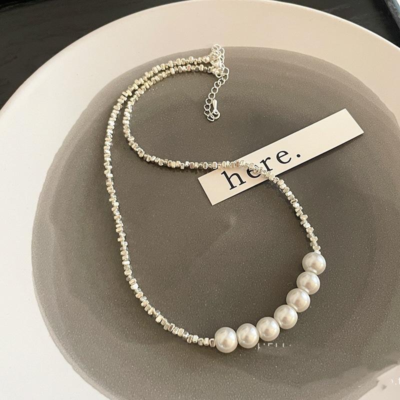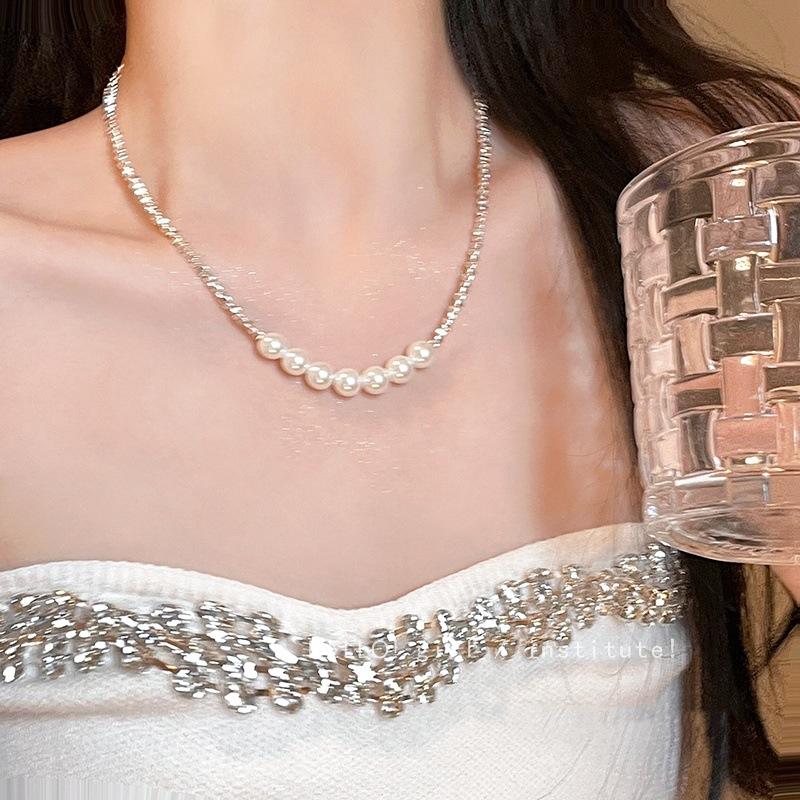 Collar de perlas con costuras de plata rota para mujer, nuevo collar gargantilla 2024, estilo francés retro, ligero, de lujo, cadena de clavícula, accesorios