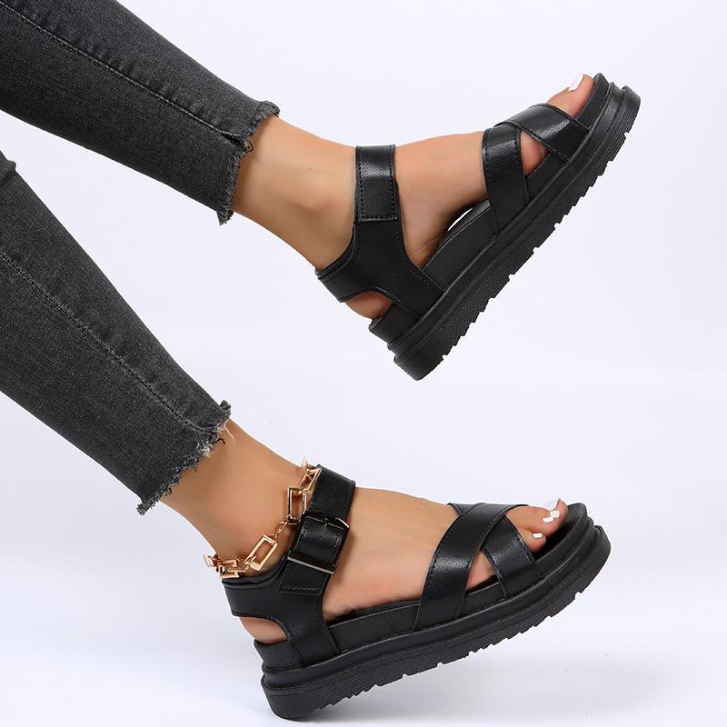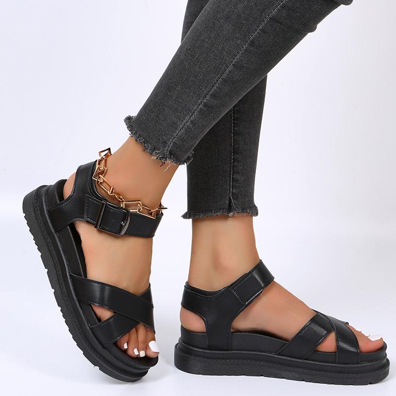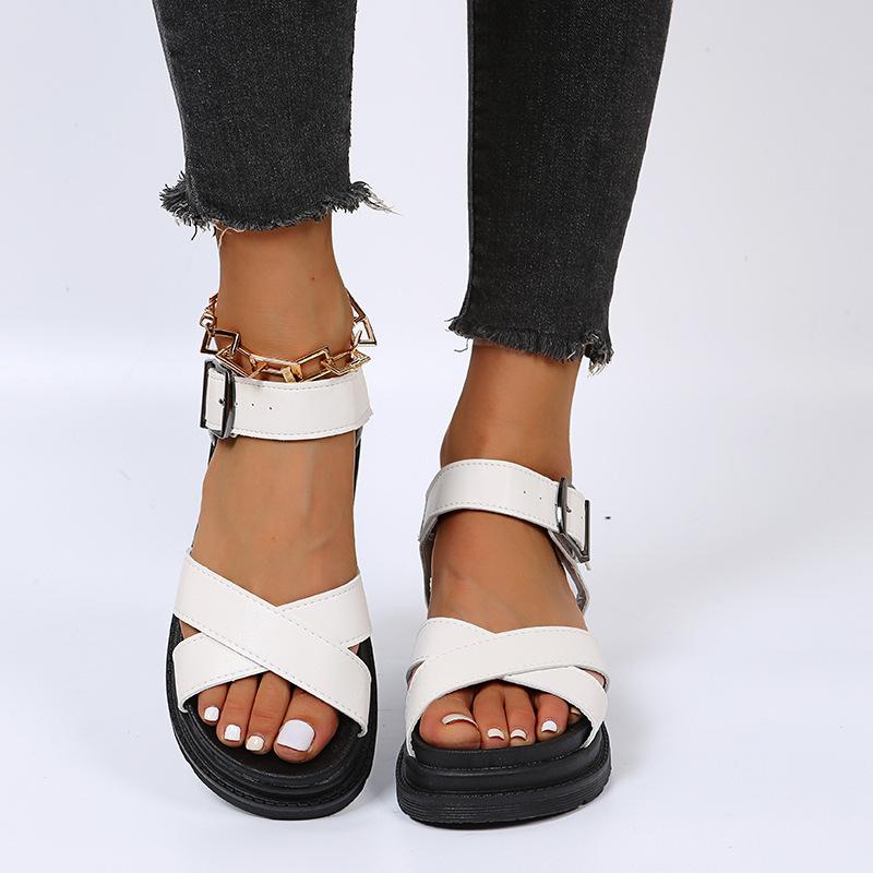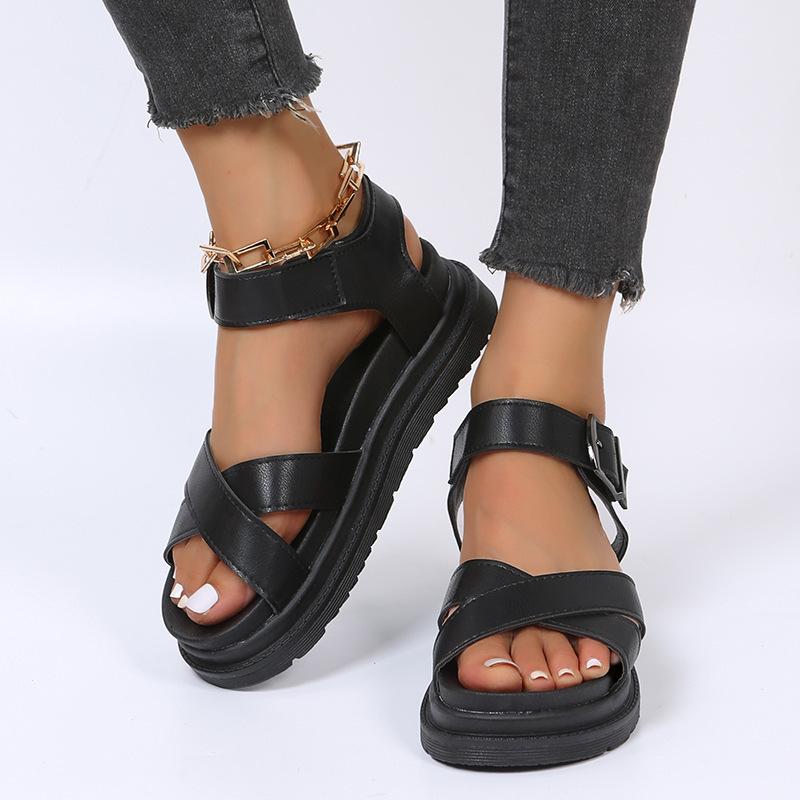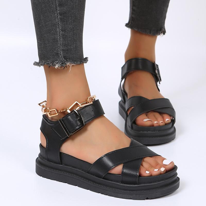 Comercio Exterior Transfronterizo Europeo y Americano 2022 Nuevas Sandalias Cruzadas de Plataforma Gruesa para Mujer para Usar al Aire Libre Tacón de Cuña Hebilla Zapatos de Playa Suministro Wish