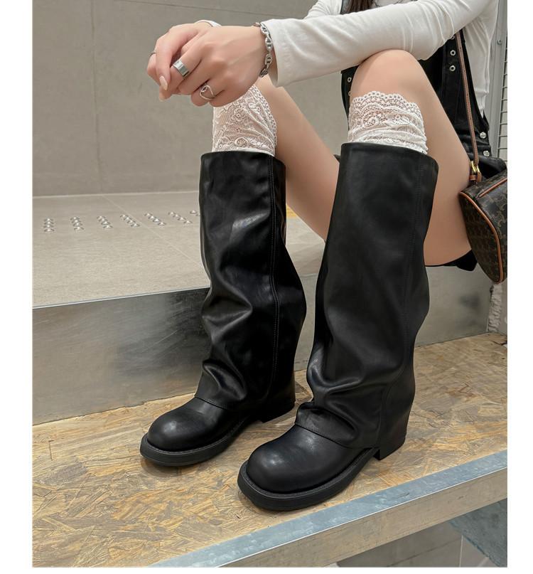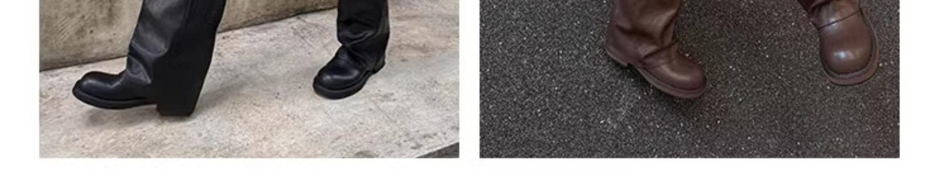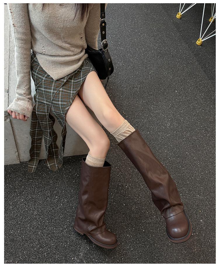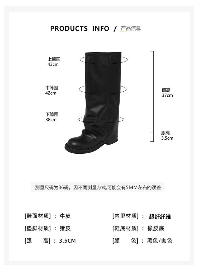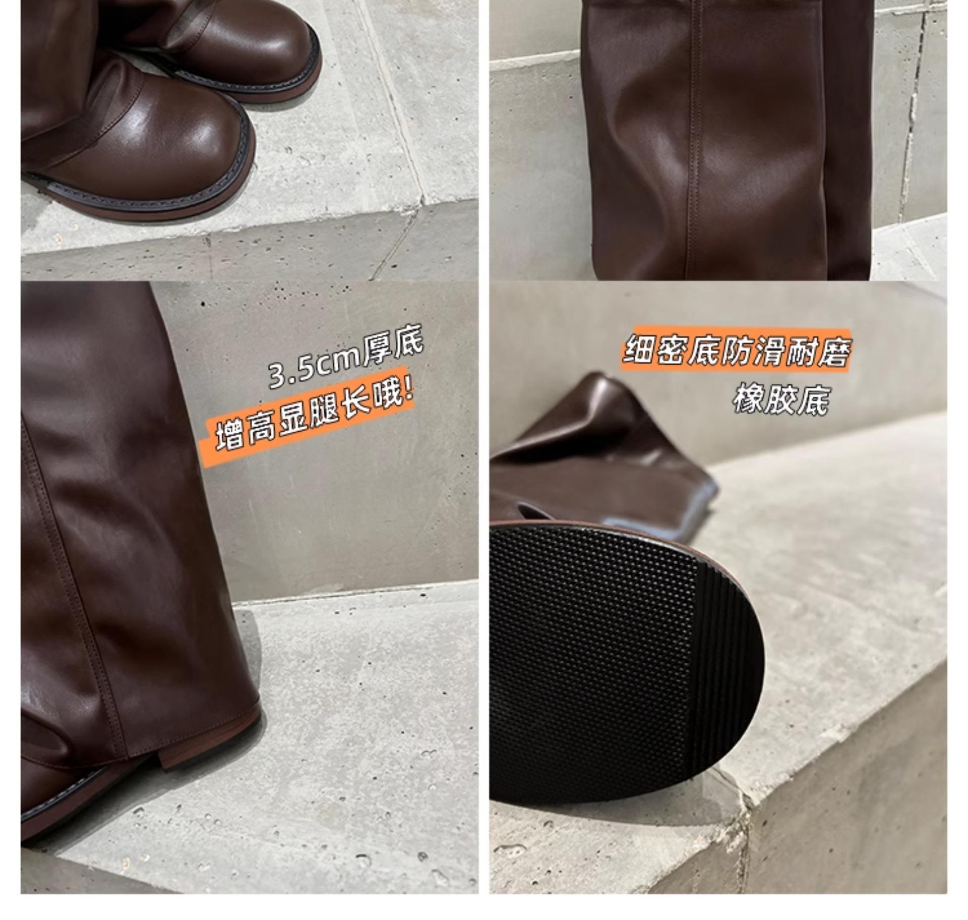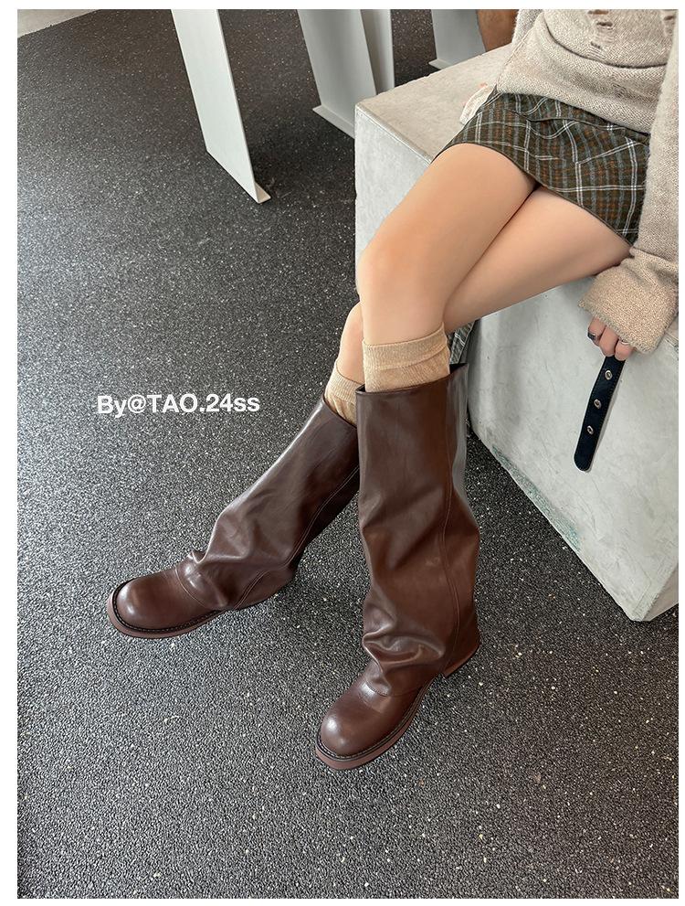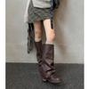 Versión piel de vaca retro suela gruesa caña alta cuero genuino botas largas talla grande pantorrilla ancha punta redonda tacón grueso botas pantalón botas western de mujer