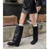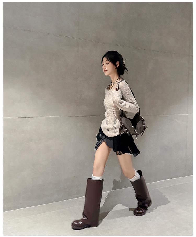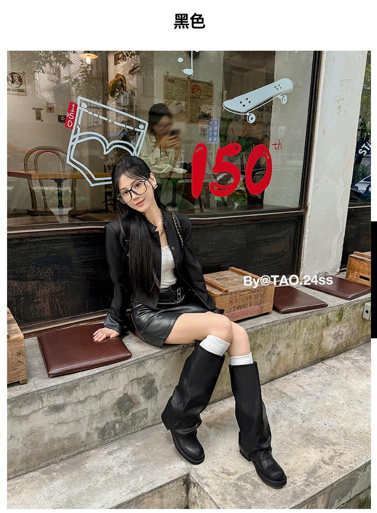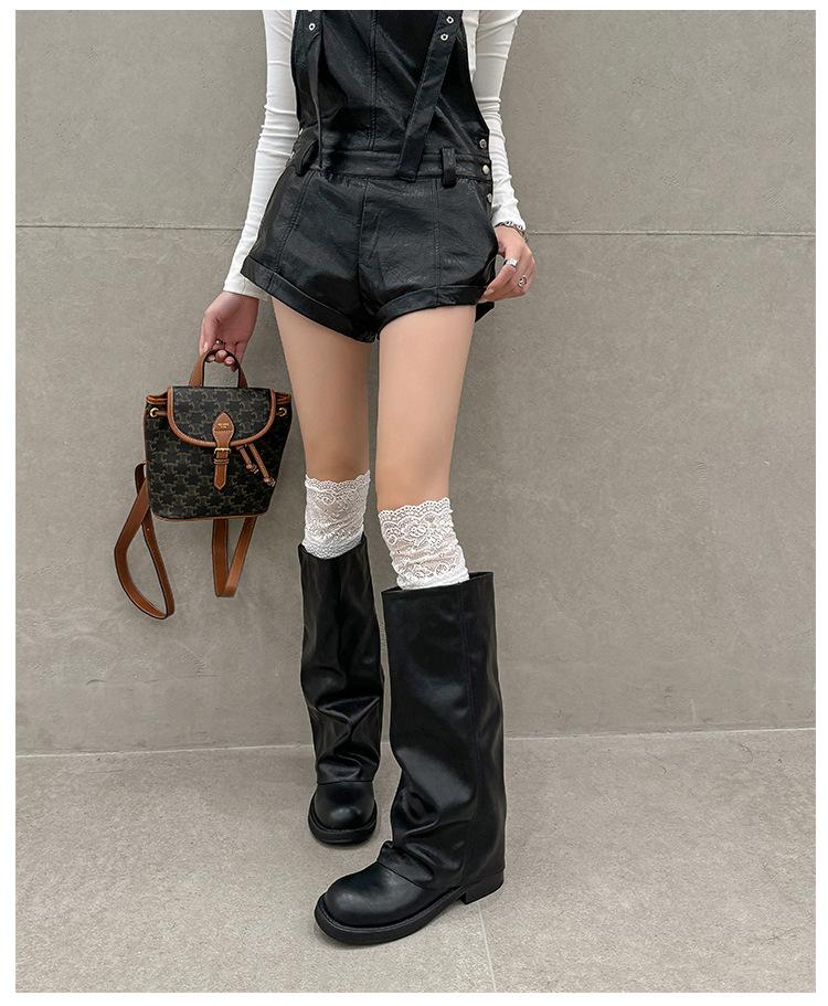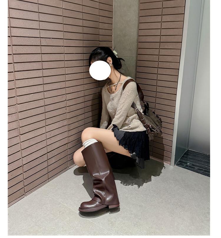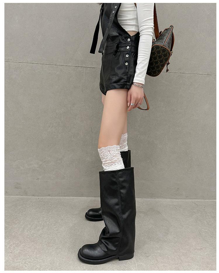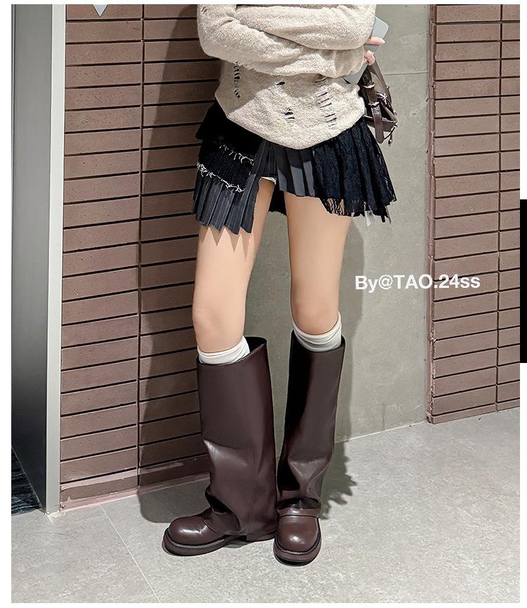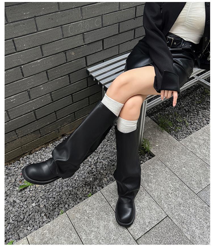 Versión piel de vaca retro suela gruesa caña alta cuero genuino botas largas talla grande pantorrilla ancha punta redonda tacón grueso botas pantalón botas western de mujer