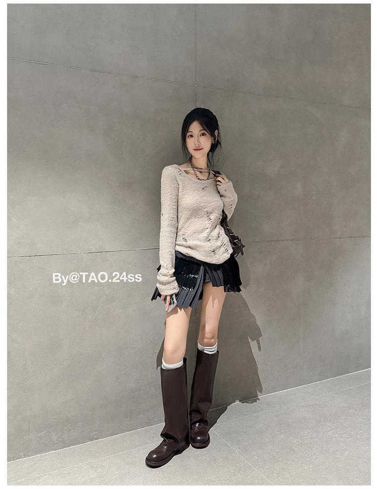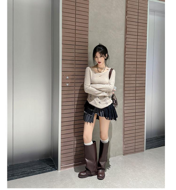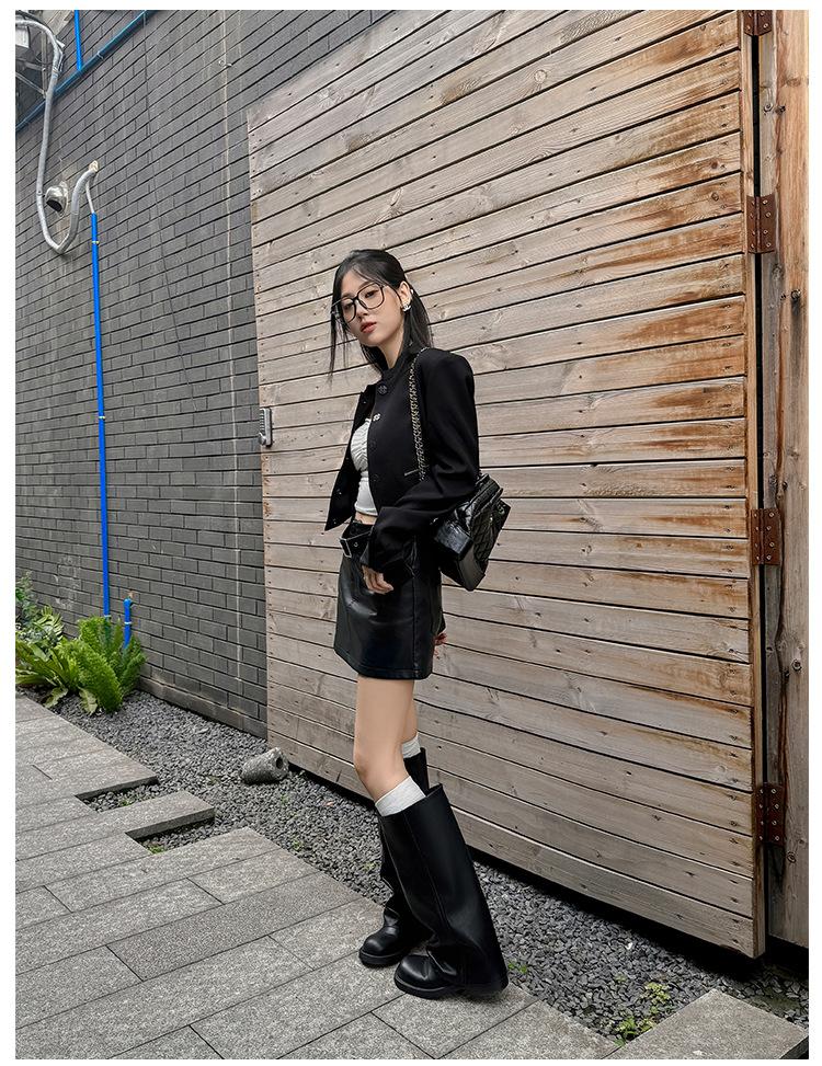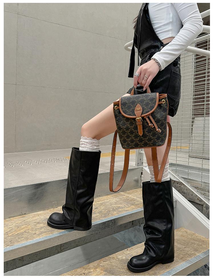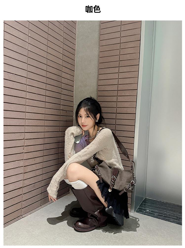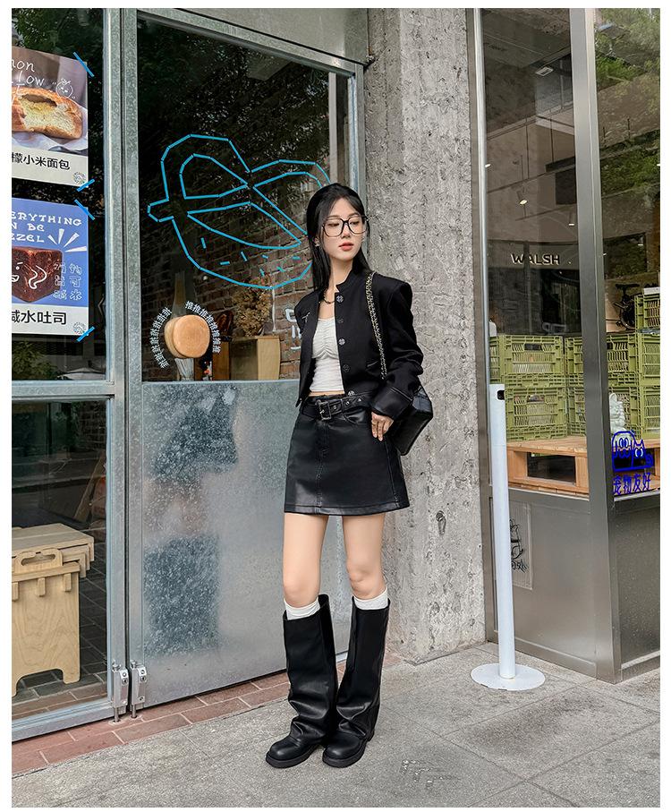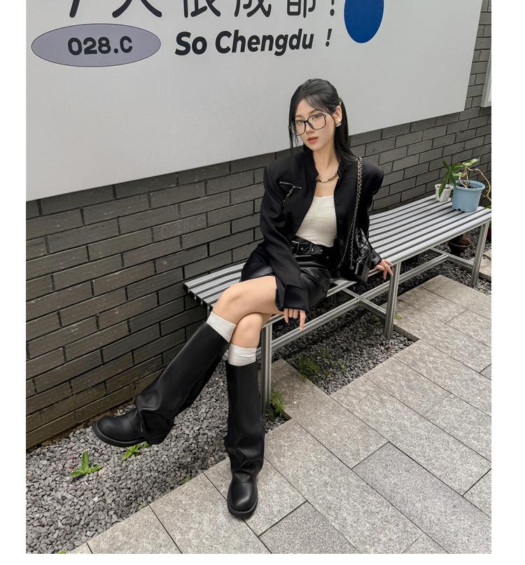 Versión piel de vaca retro suela gruesa caña alta cuero genuino botas largas talla grande pantorrilla ancha punta redonda tacón grueso botas pantalón botas western de mujer