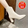 Botas negras mujer 2022 otoño pedrería puntiagudas tacones altos hebilla cuadrada botas elásticas talla grande botas cortas tacón bajo botas ajustadas