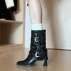 Botas Negras para Mujer Mujer 2025 Otoño Pedrería Punta Afilada Tacones Altos Hebilla Cuadrada Botines Elásticos Botines Tacón Bajo Delgado