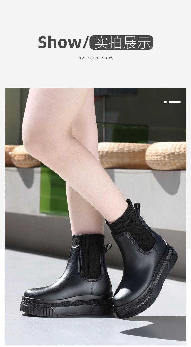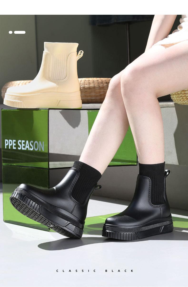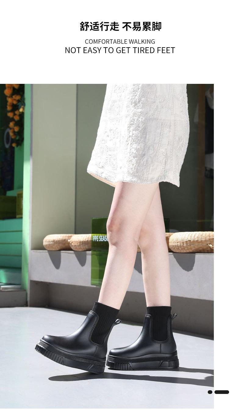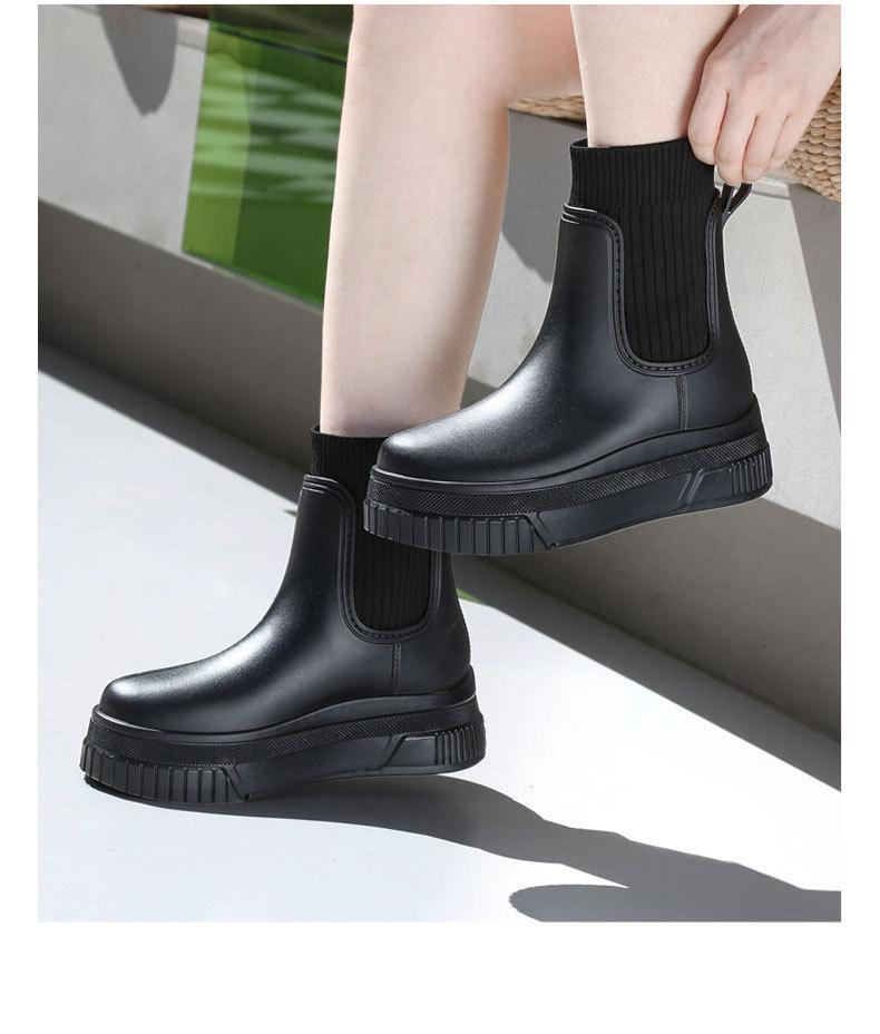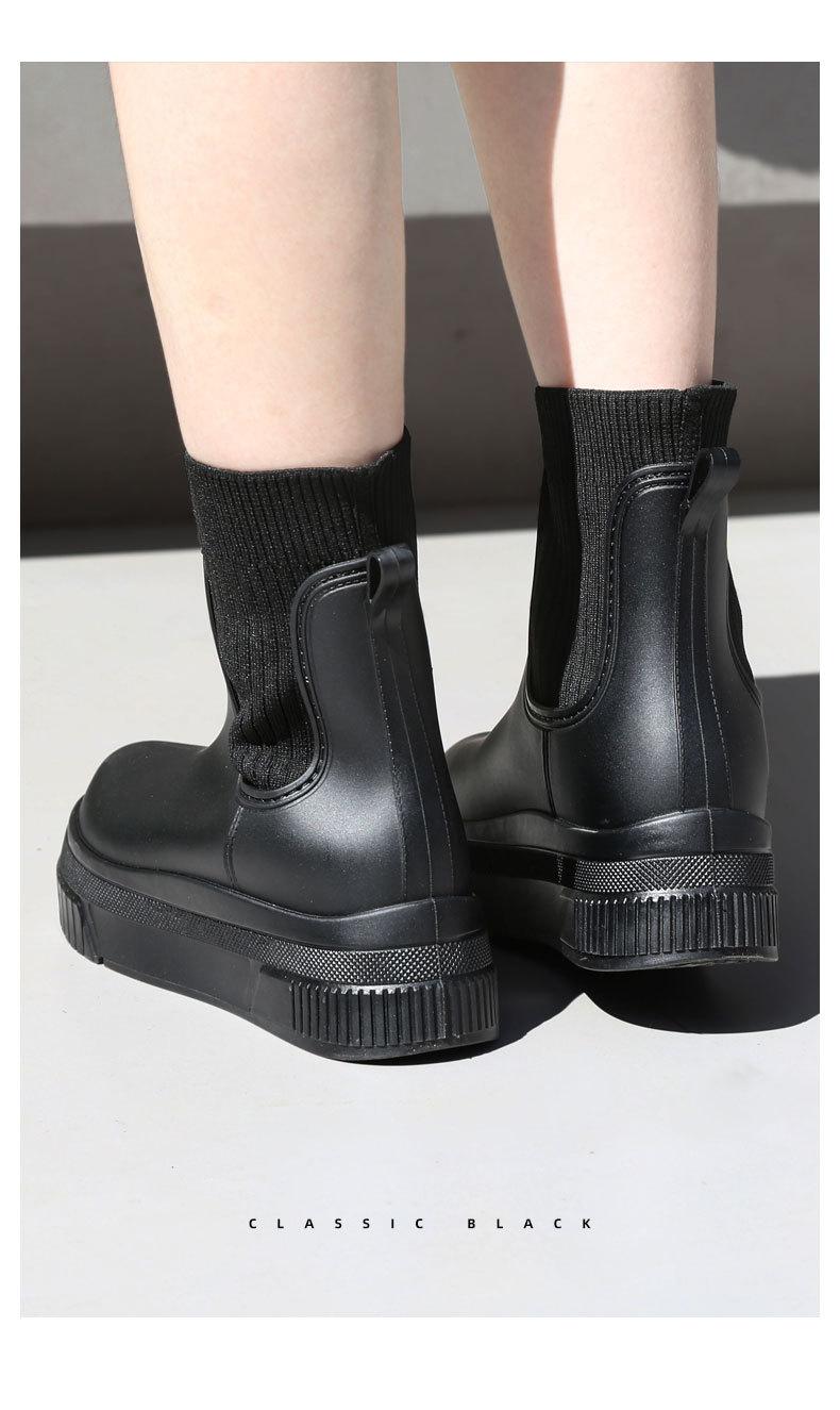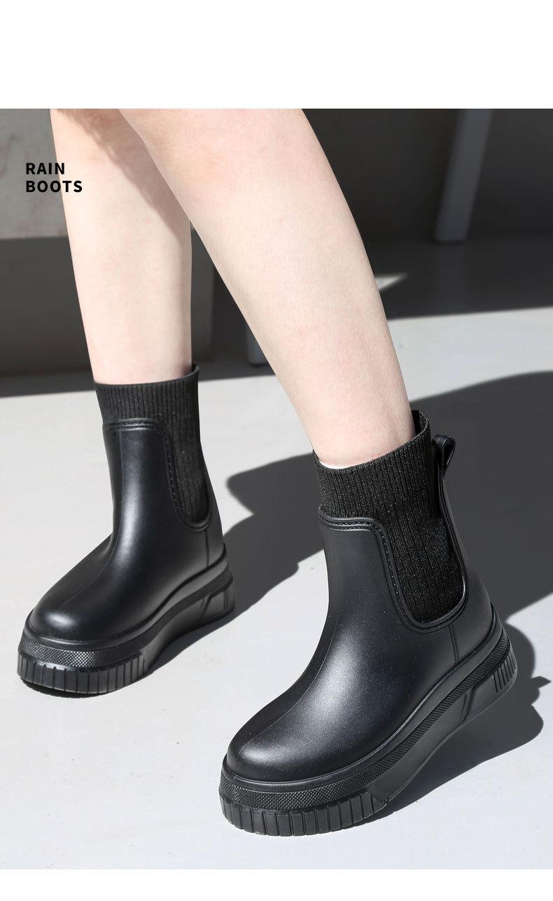 Botas de Lluvia Flyknit de Color Sólido Botas de Lluvia de Media Caña Chelsea Impermeables Antideslizantes Se Pueden Usar al Aire Libre Bajo la Lluvia Botas de Media Caña con Suela Gruesa