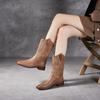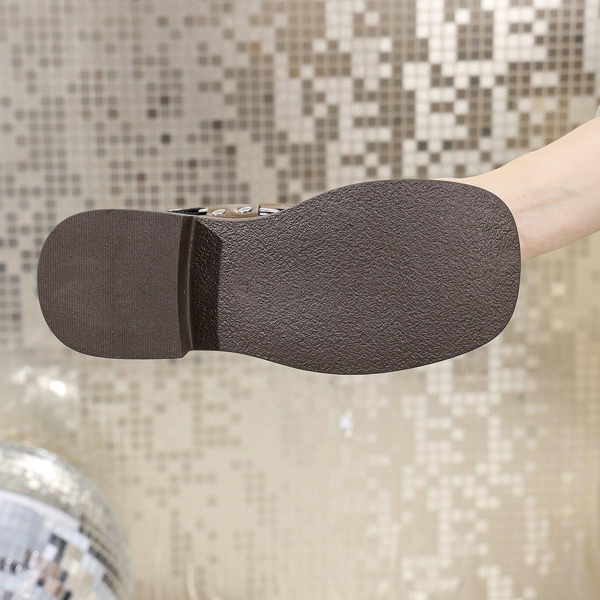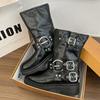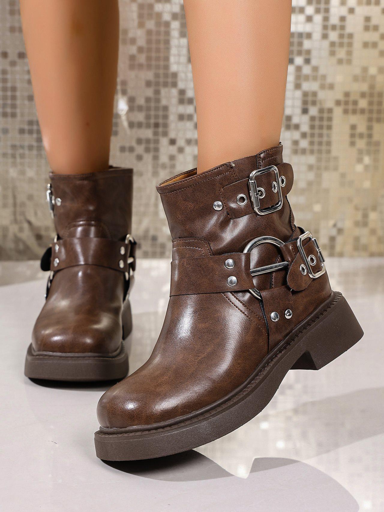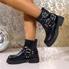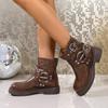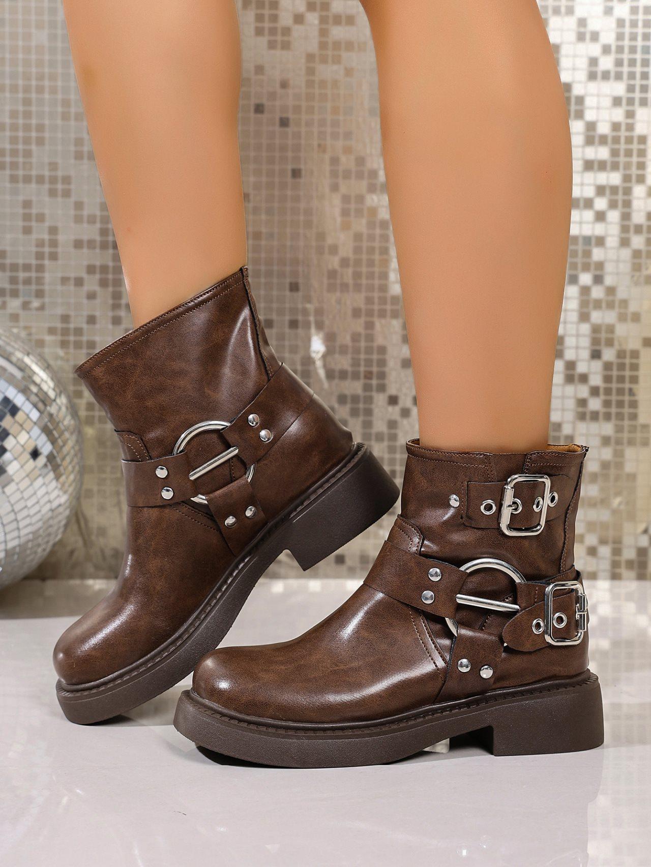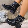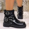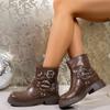 Botas Vaqueras Occidentales con Hebilla Retro para Mujer 2025 Nuevo Estilo Británico Versátiles Talla Grande Botas de Media Caña Botas Martin para Motociclista
