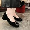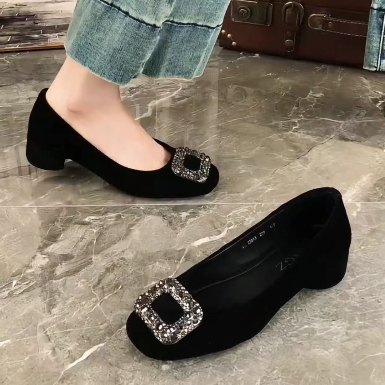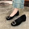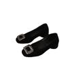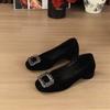 Zapatos Individuales de Otoño 2025 de Punta Redonda Escotados para Mujer Zapatos de Suela Suave Nuevo Adorno de Pedrería Hebilla Cuadrada Temperamento Francés Negro Zapatos de Trabajo