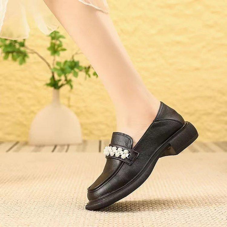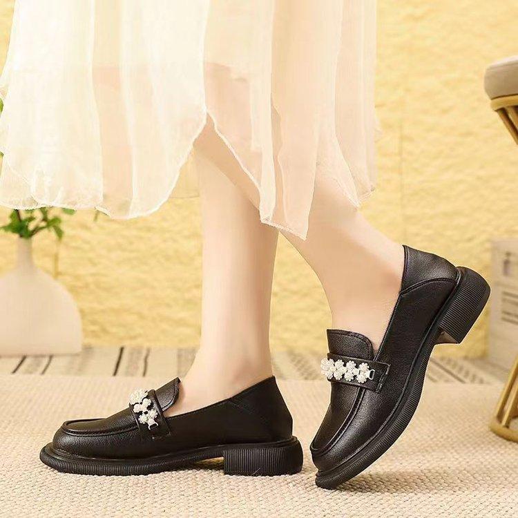 Mocasines negros de otoño 2025 para mujer, nuevos, de piel suave, con realce interior, estilo británico, planos, para trabajo, para ir al trabajo, zapatos individuales