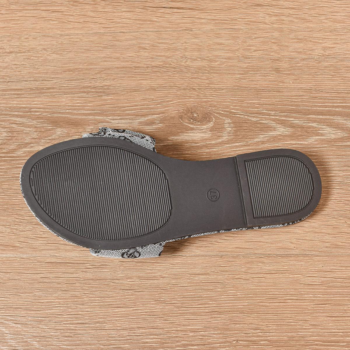 Zapatillas de Talla Grande para Comercio Exterior para Mujer 2025 Nuevo Lazo de Una Tira Plano Estampado Playa Sandalia Zapatillas de Mujer