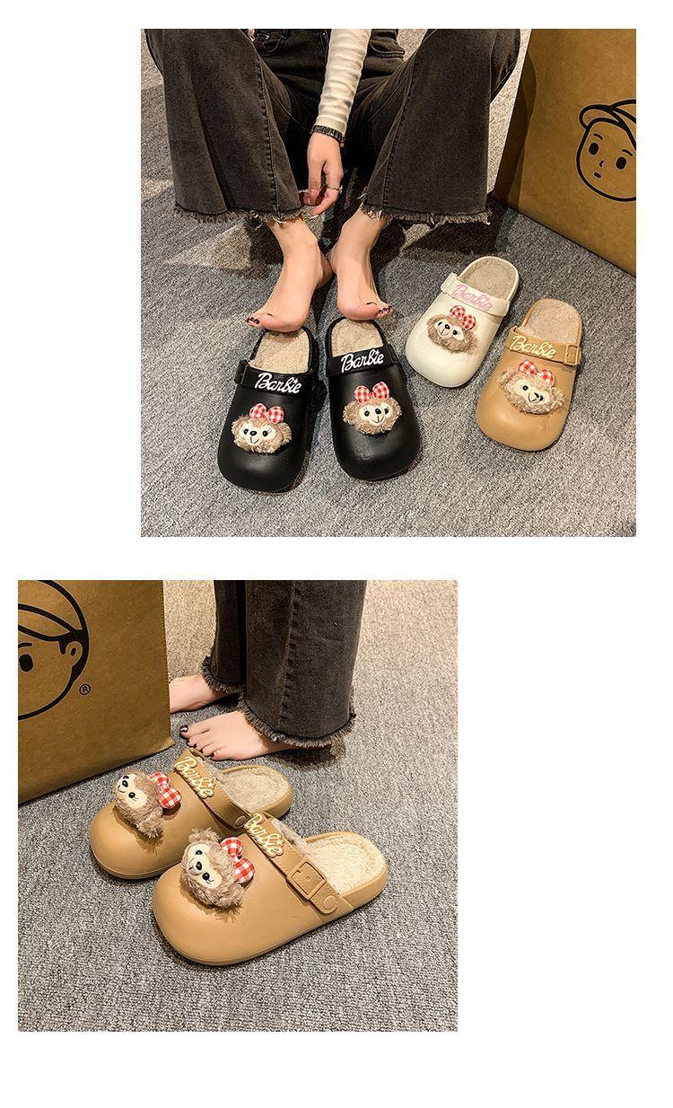 Pantuflas lindas de plataforma con forro polar de punta cerrada para mujer, cómodas, no cansan los pies, uso casual para exteriores, pantuflas peludas 2025 Otoño/Invierno Nuevo