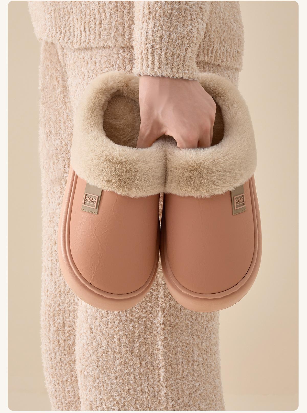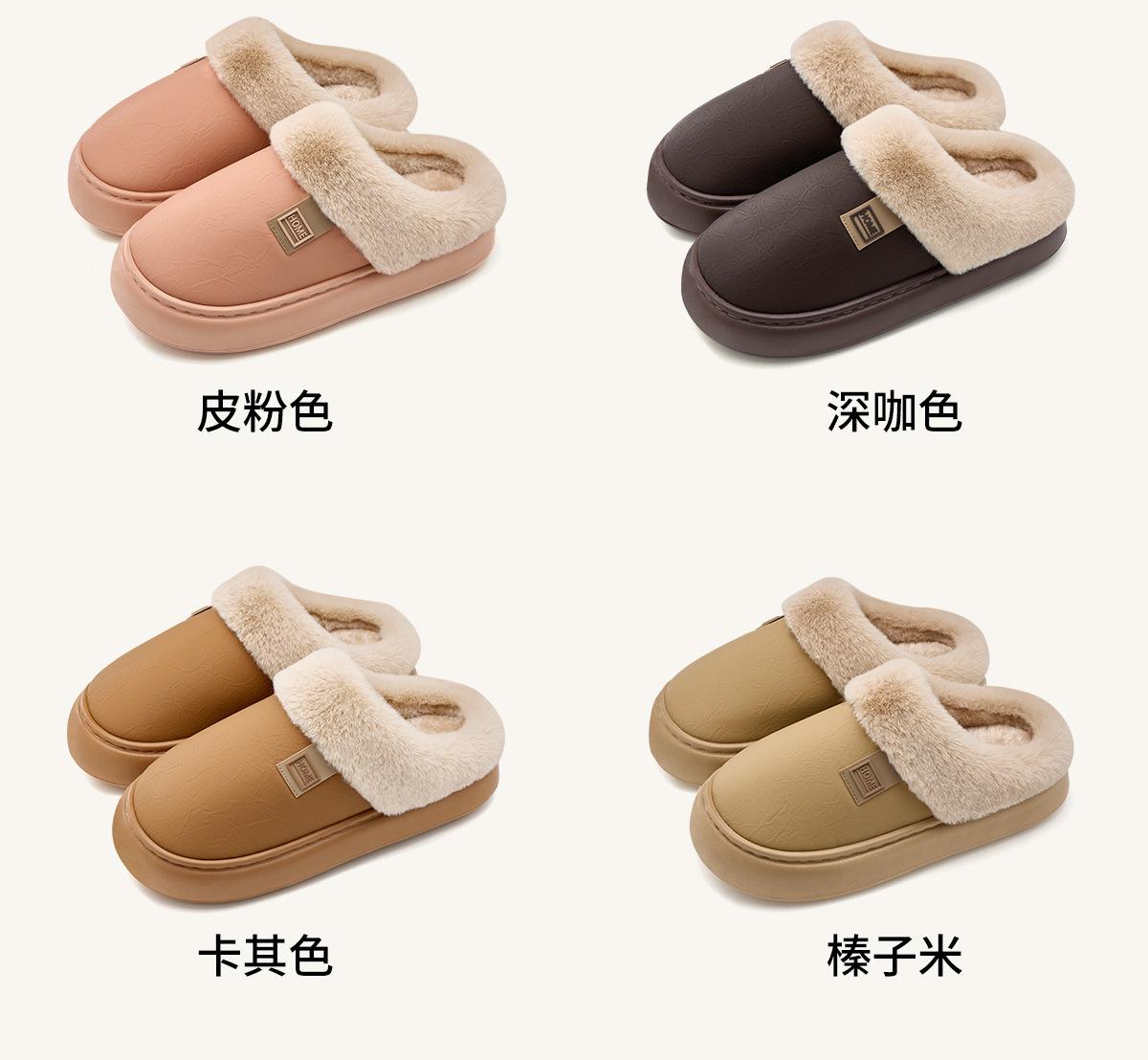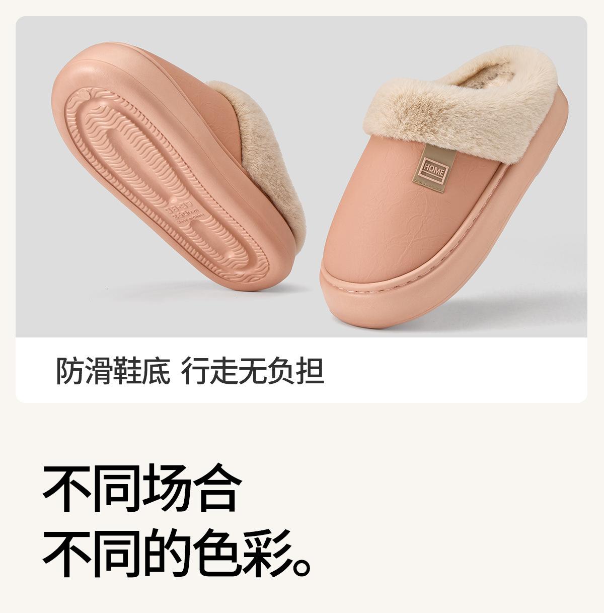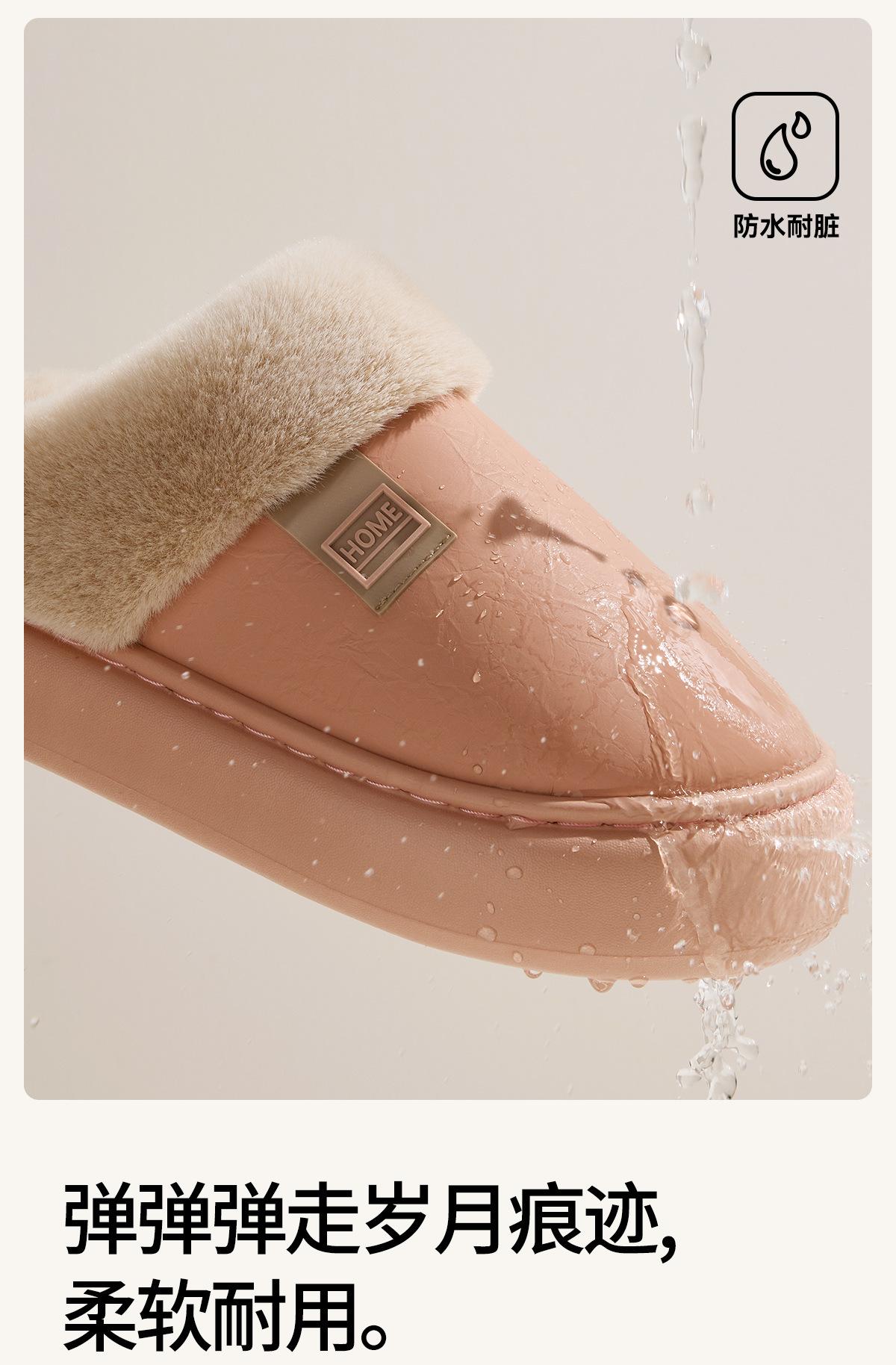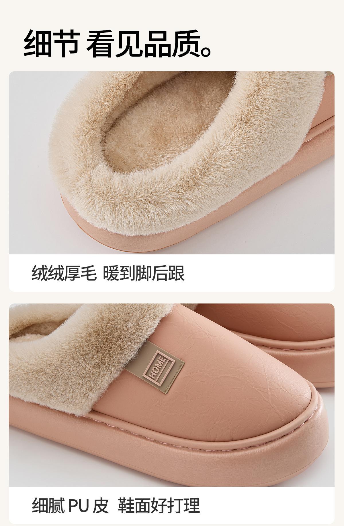 Pantuflas de algodón impermeables para mujer otoño e invierno 2025 nuevo estilo hogar cálido cómodo suela gruesa superficie de cuero zapatos de algodón antibacterianos para hombre para usar en exteriores
