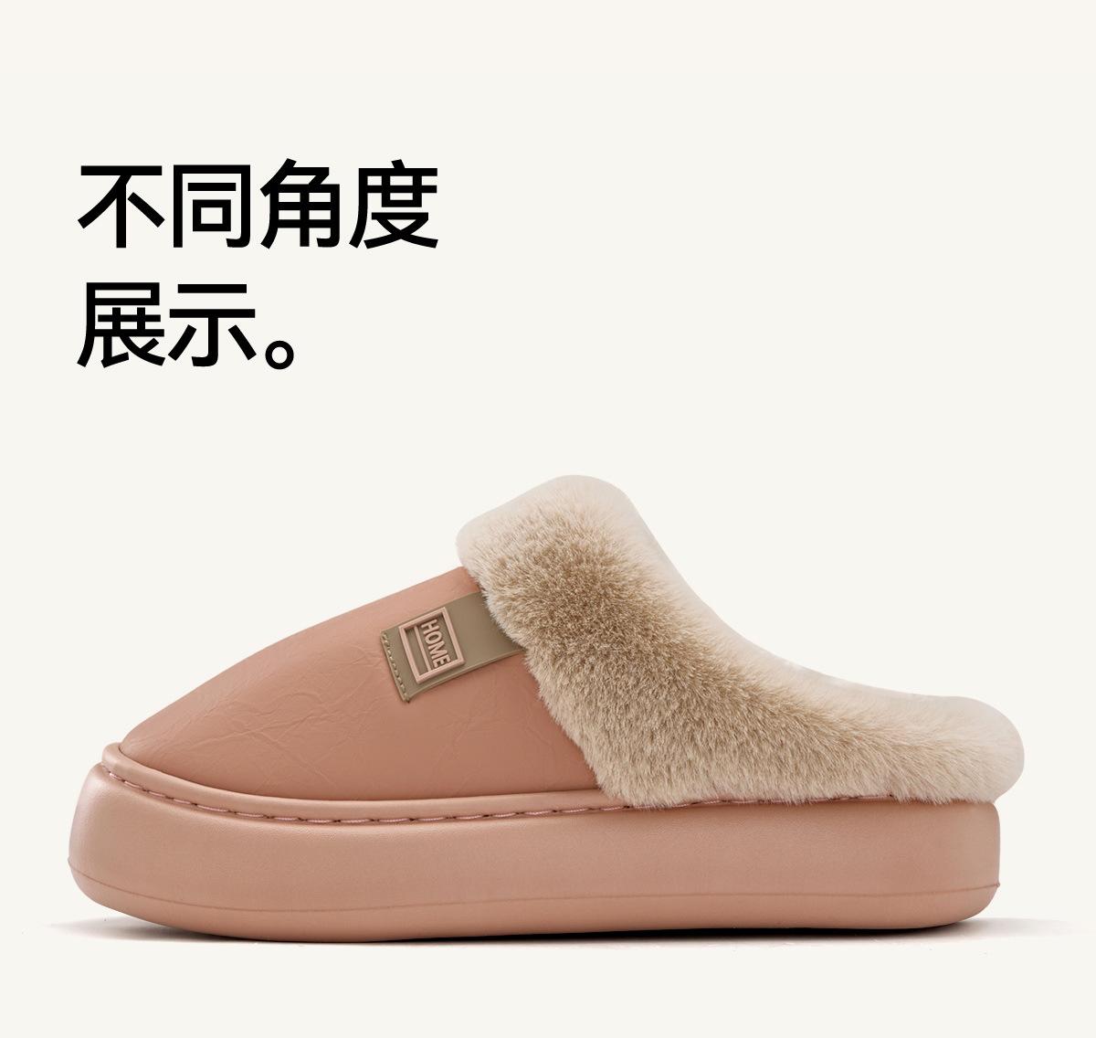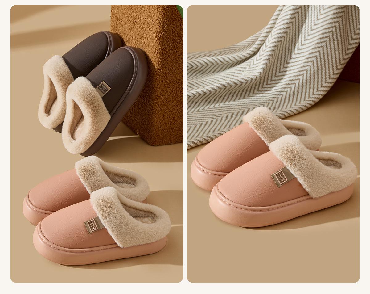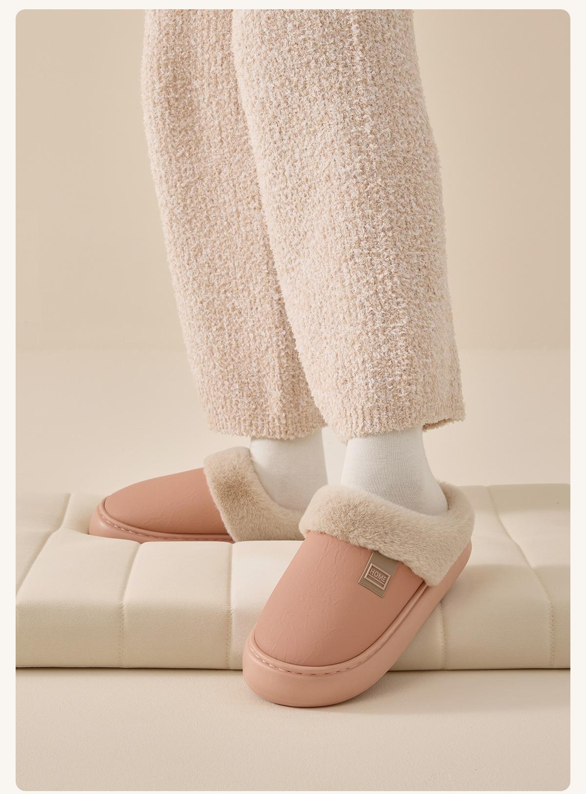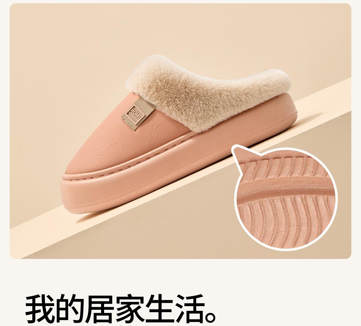 Pantuflas de algodón impermeables para mujer otoño e invierno 2025 nuevo estilo hogar cálido cómodo suela gruesa superficie de cuero zapatos de algodón antibacterianos para hombre para usar en exteriores