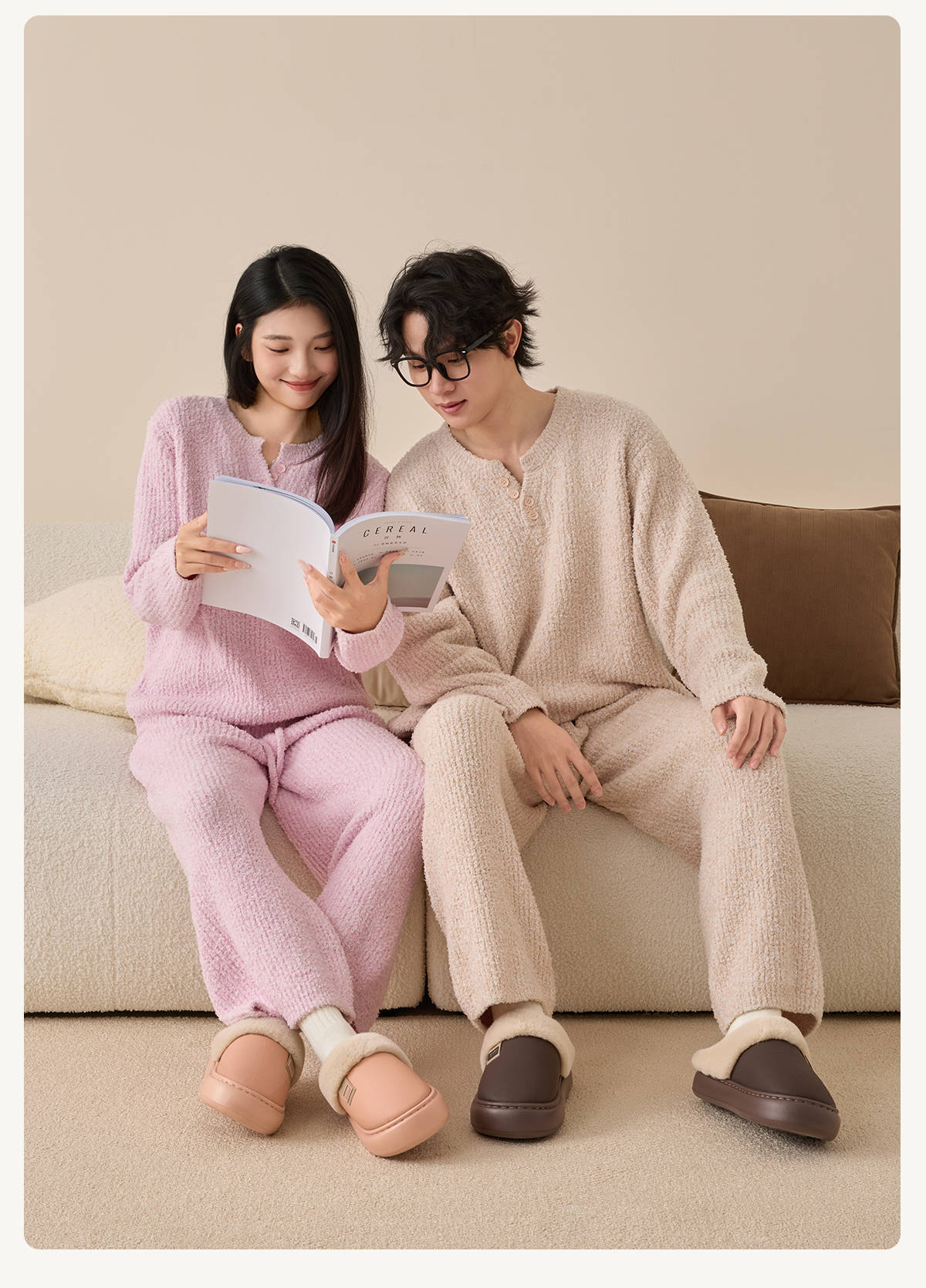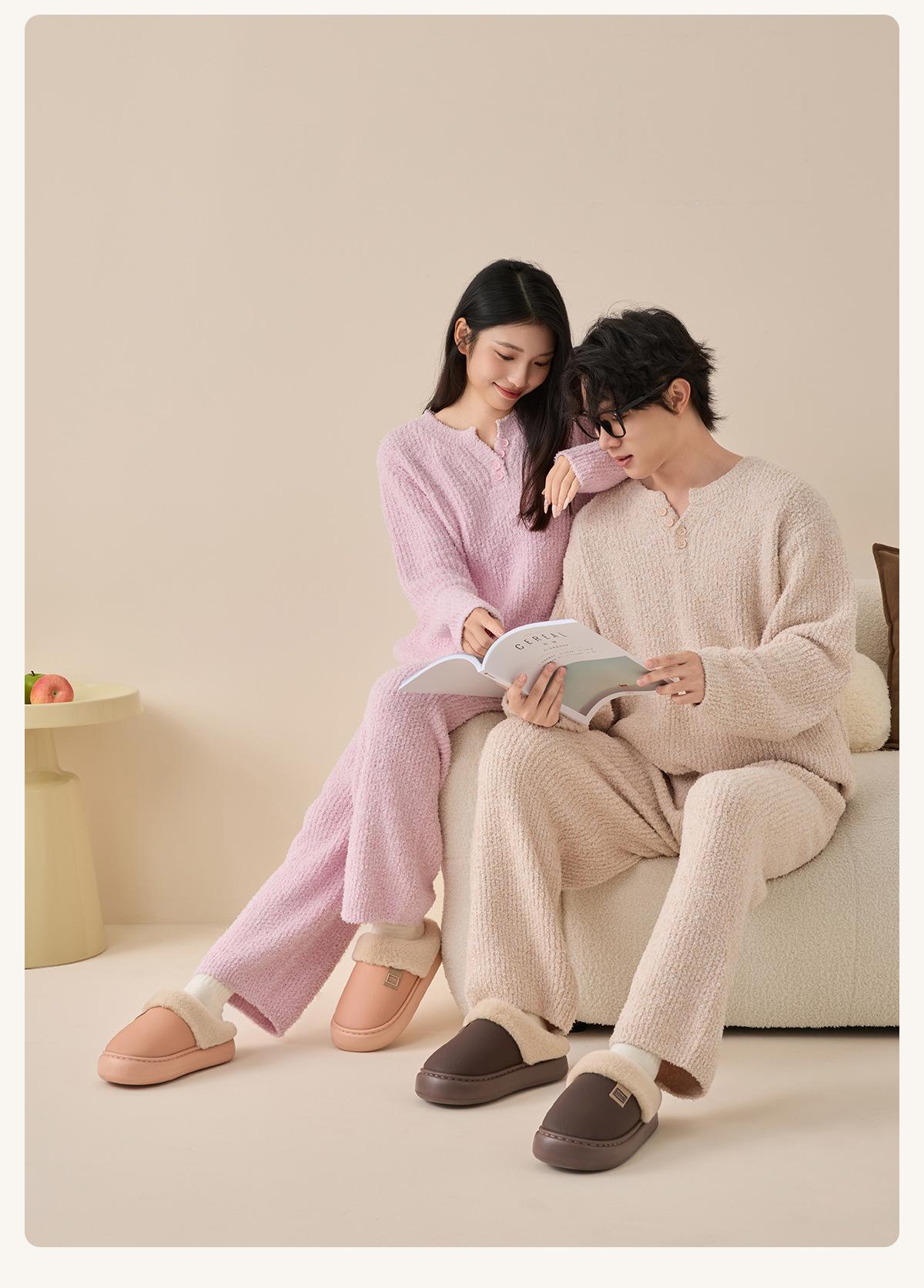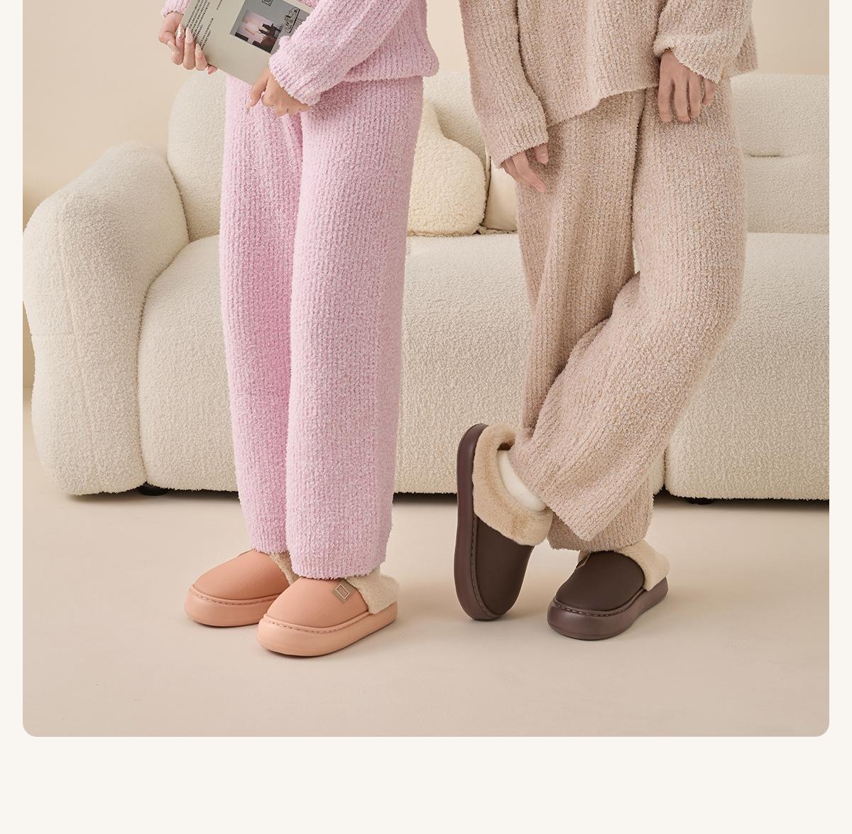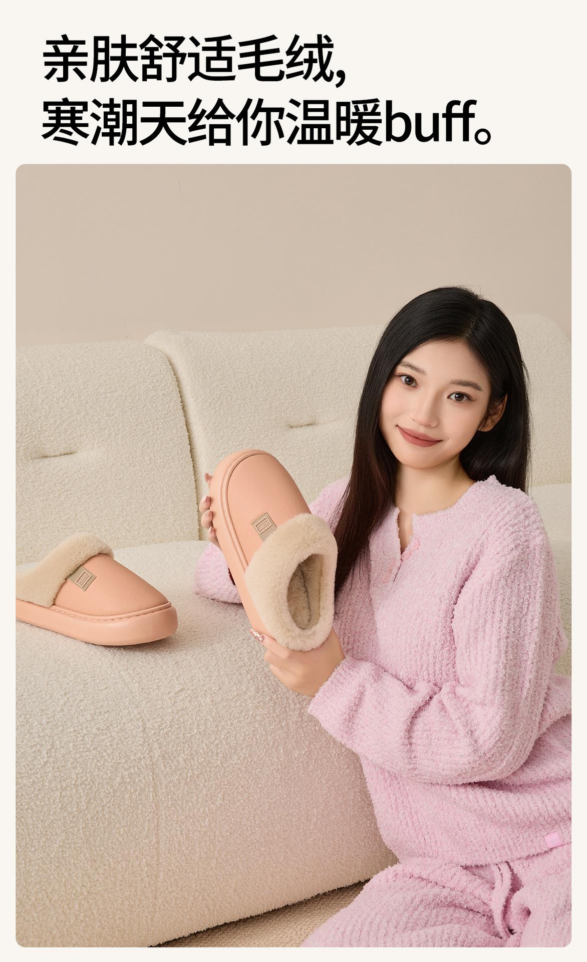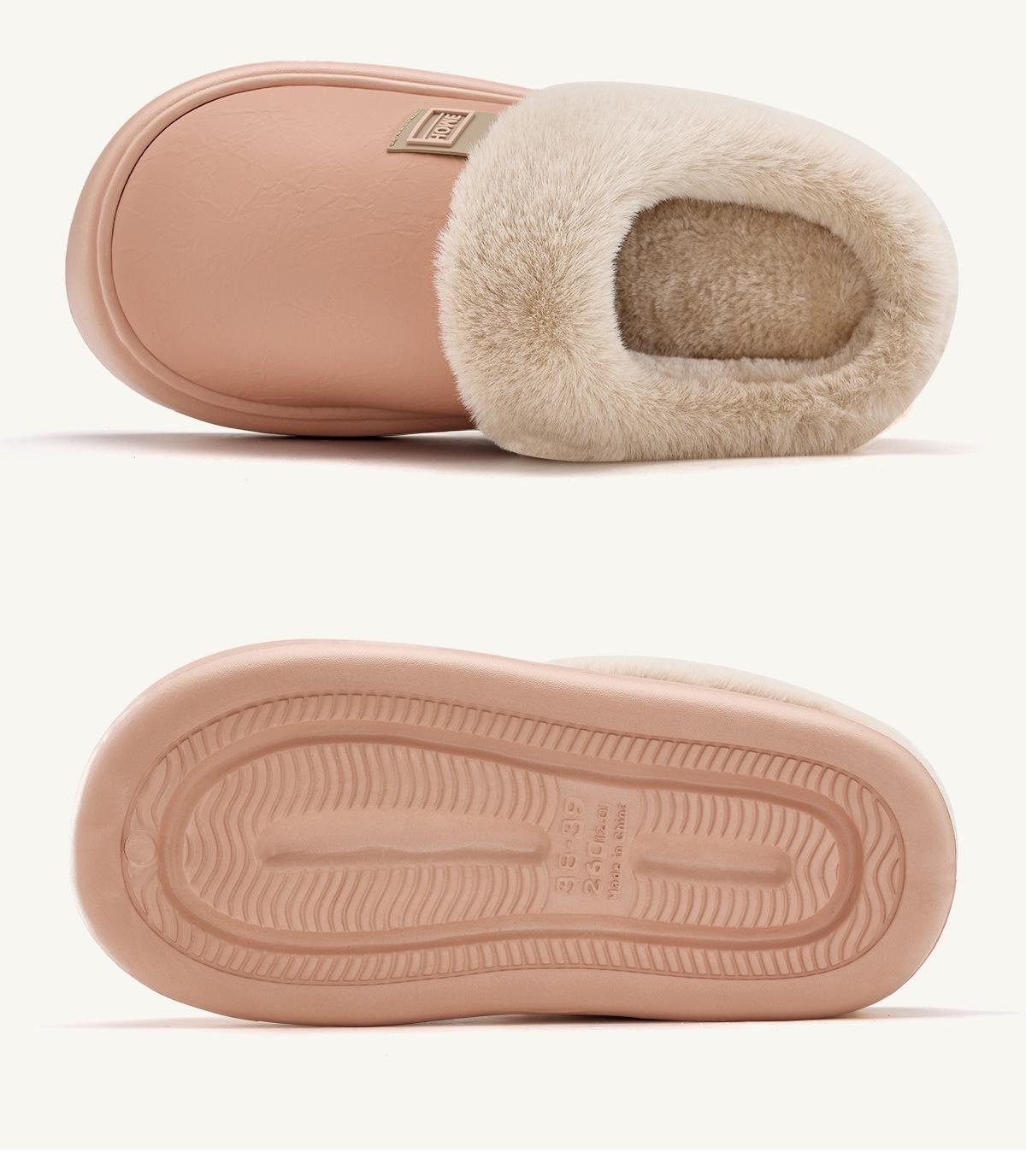 Pantuflas de algodón impermeables para mujer otoño e invierno 2025 nuevo estilo hogar cálido cómodo suela gruesa superficie de cuero zapatos de algodón antibacterianos para hombre para usar en exteriores